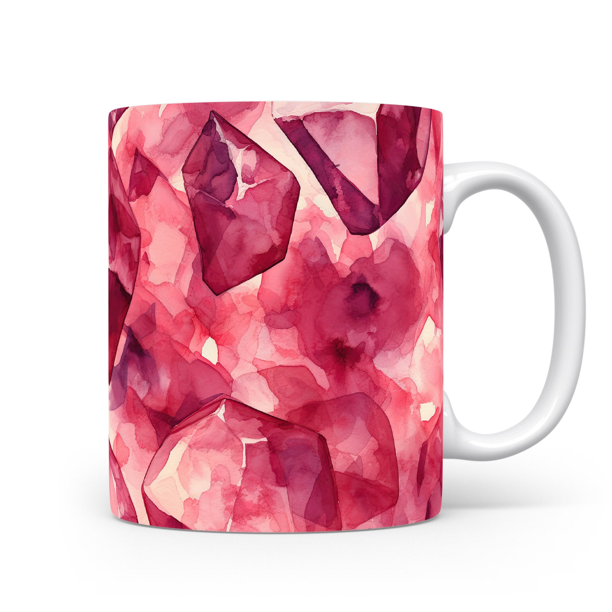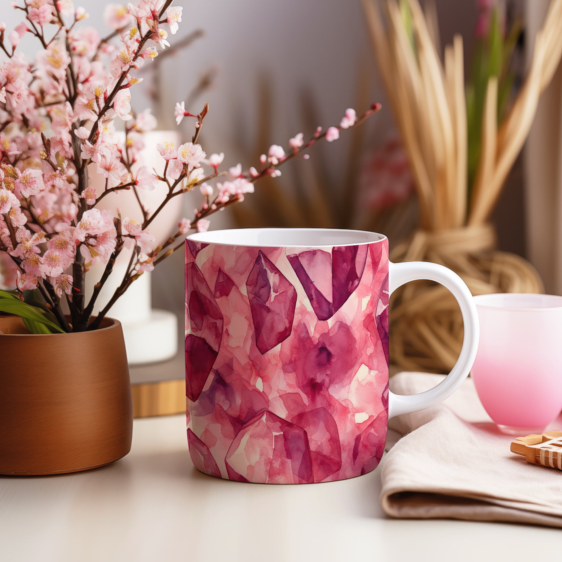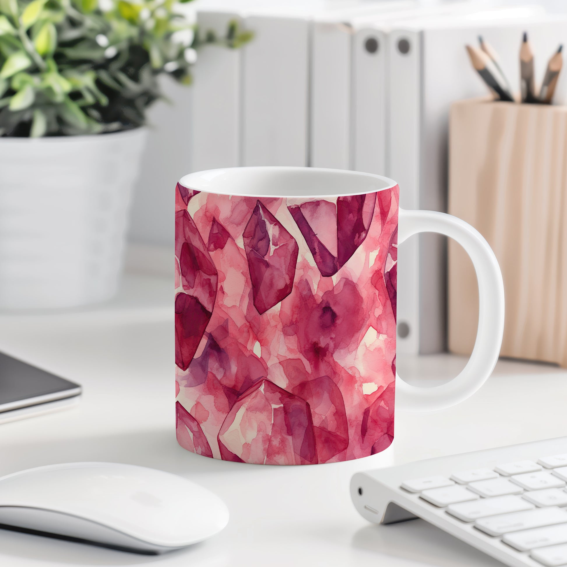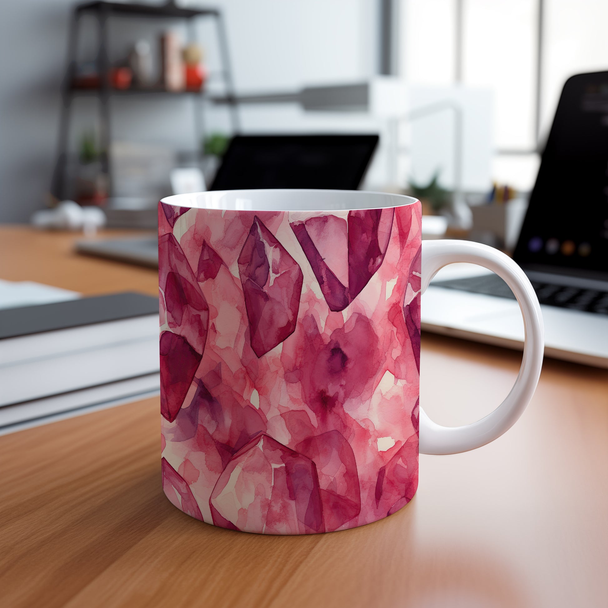 Hrnek s akvarelovými krystaly v růžových a červených tónech