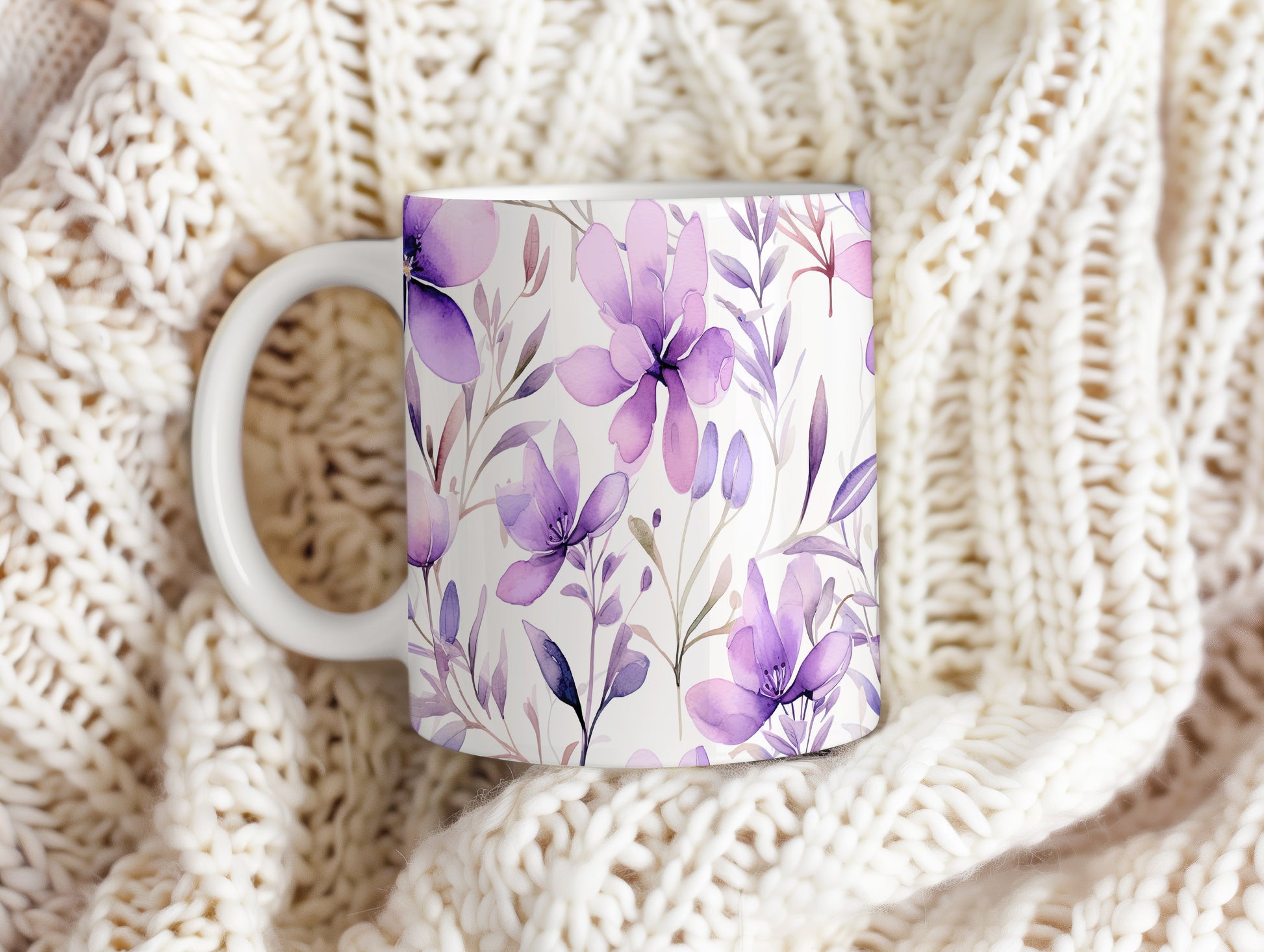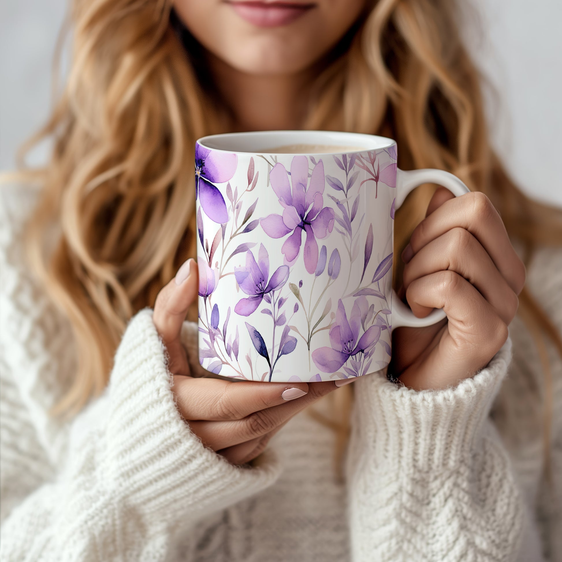 Tento hrnek s jemným květinovým vzorem v odstínech fialové přináší do vašeho dne nádech elegance. Ideální pro ranní kávu nebo čaj, potěší každého milovníka květin.