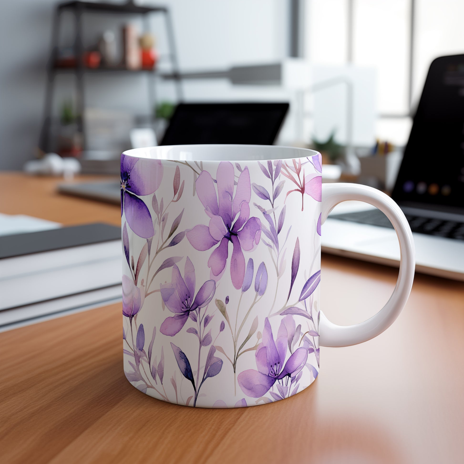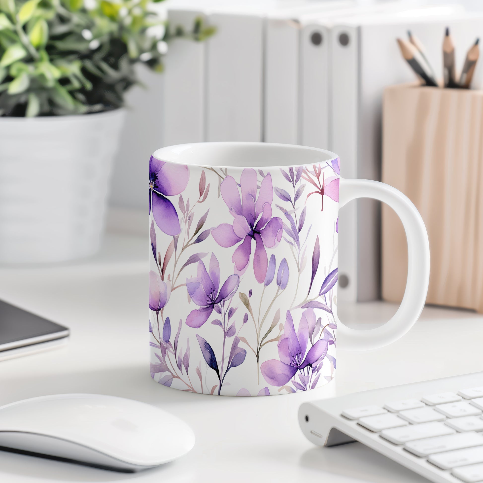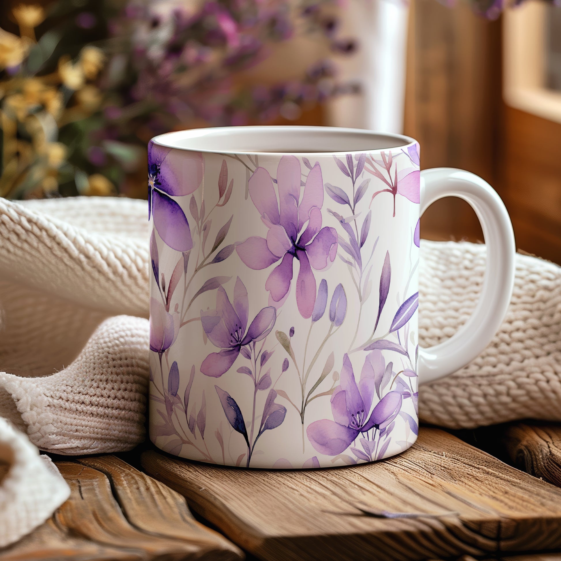 Elegantní hrnek s fialovými květinami pro každodenní radost