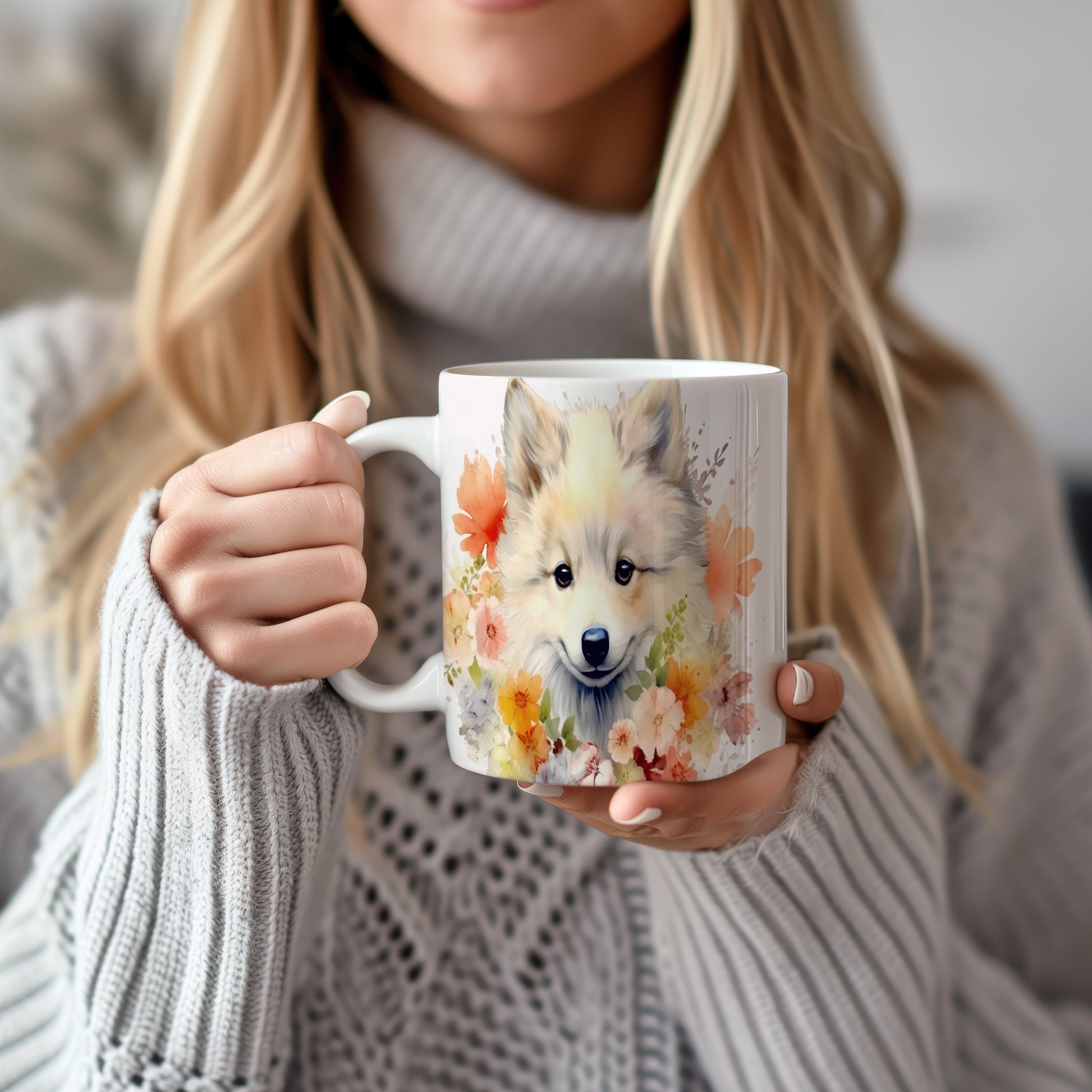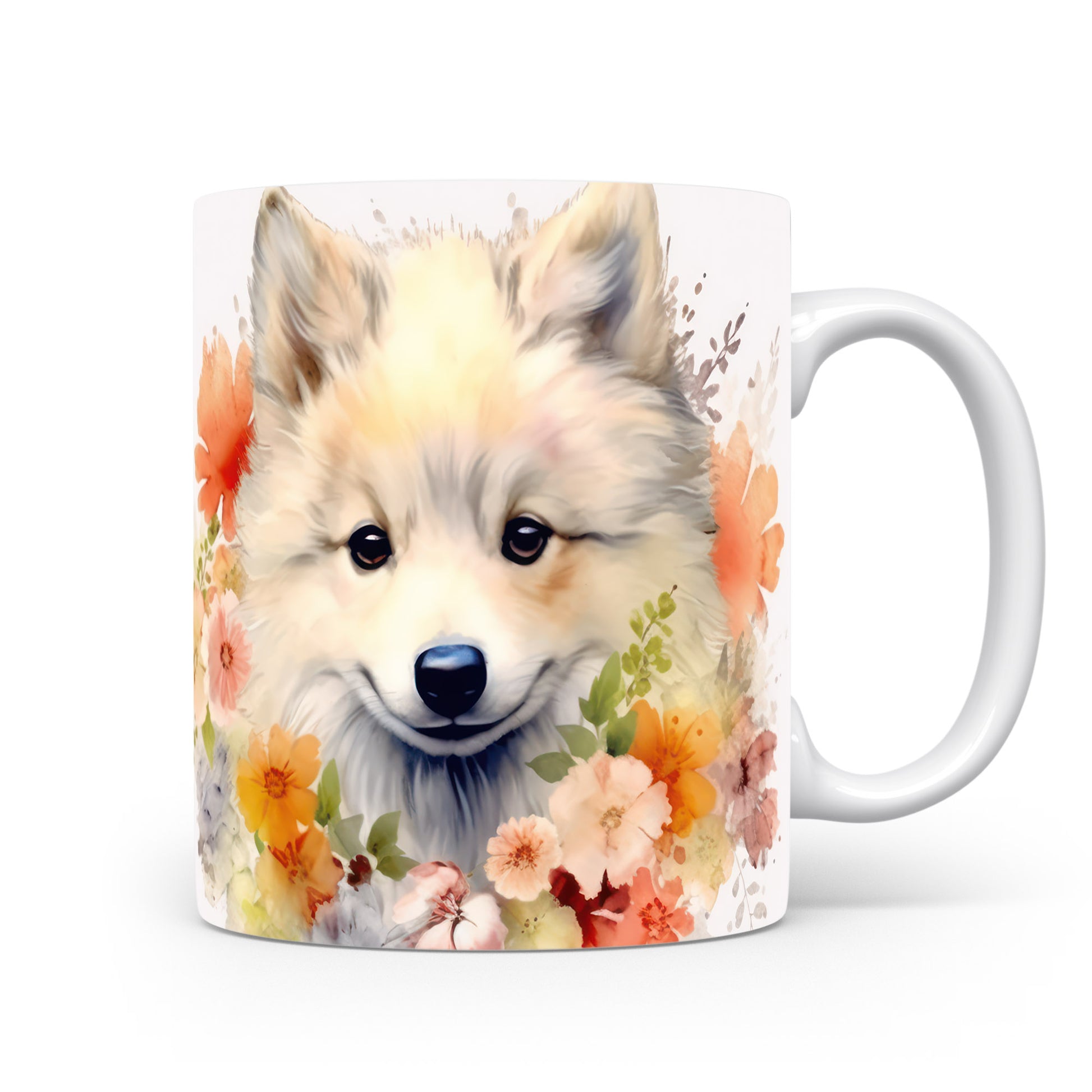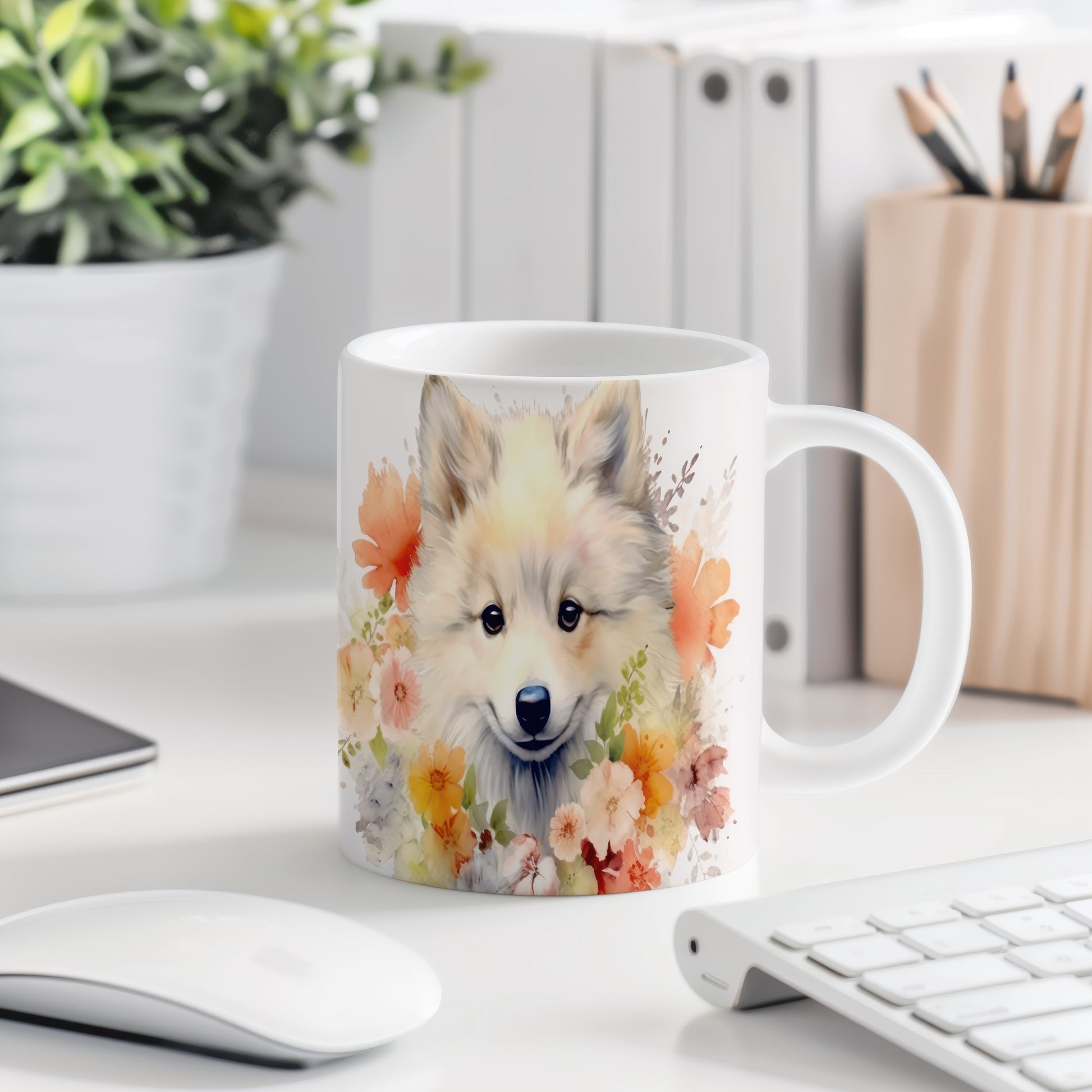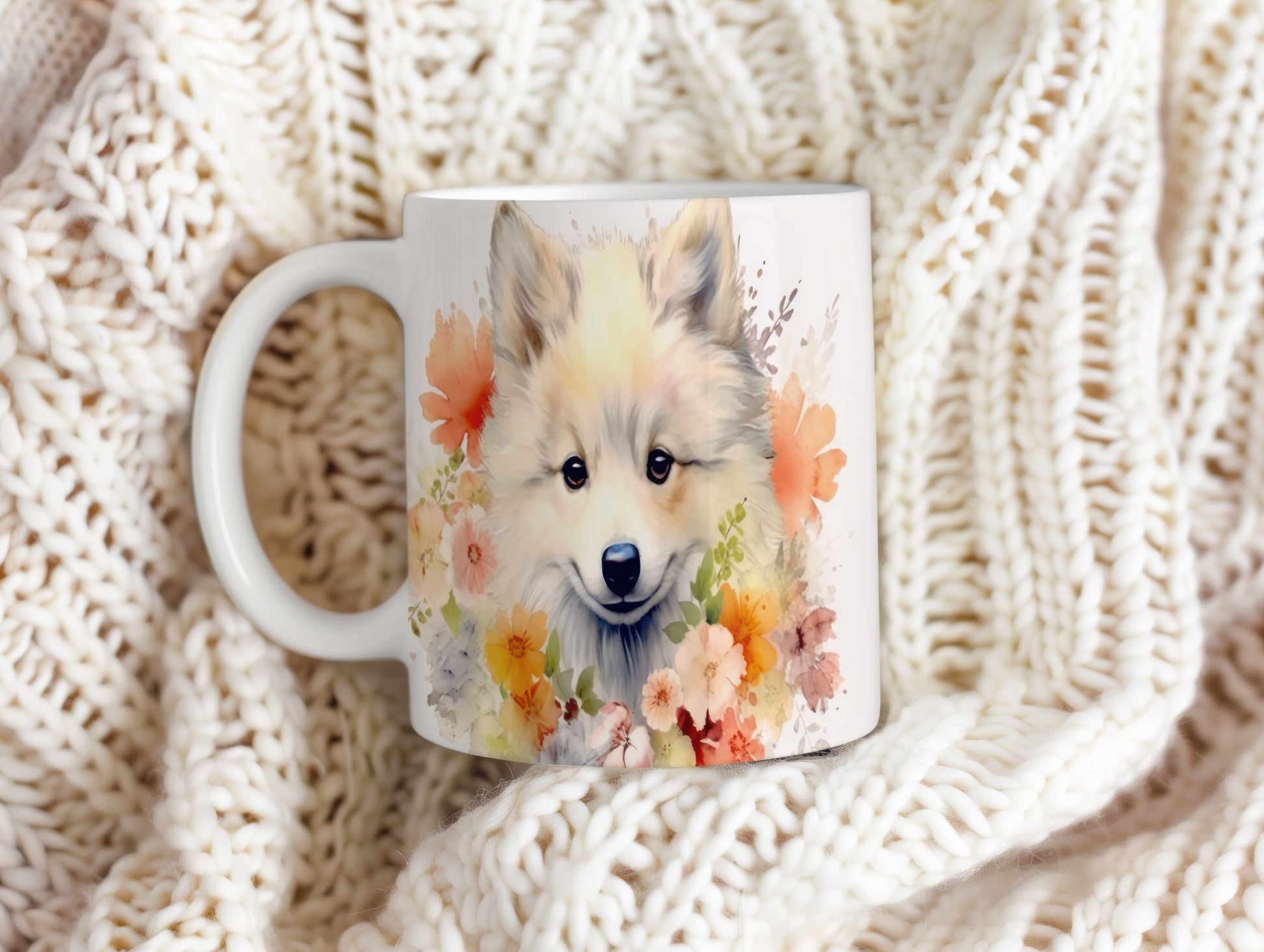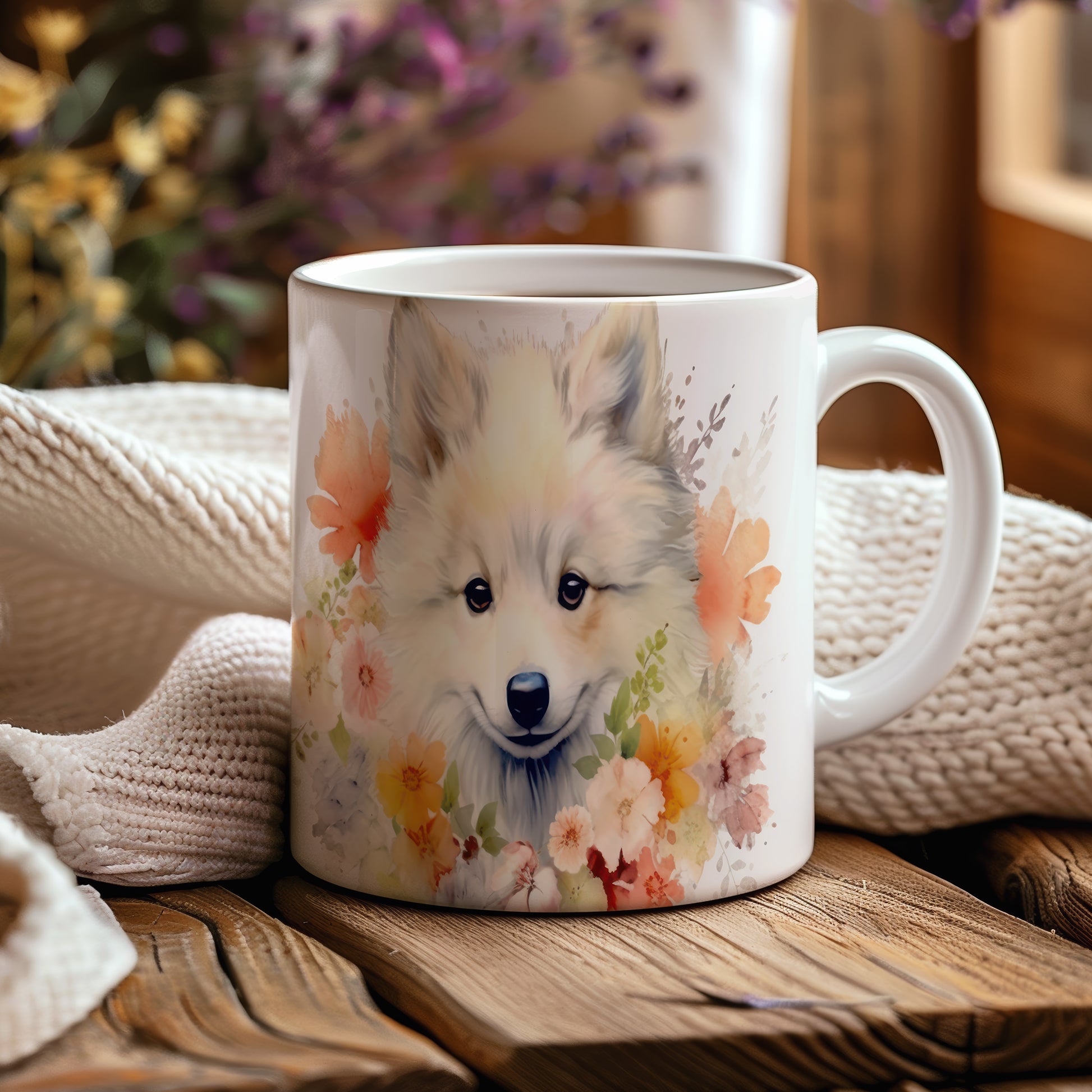 Hrnek s roztomilým pejskem a květinovým vzorem
