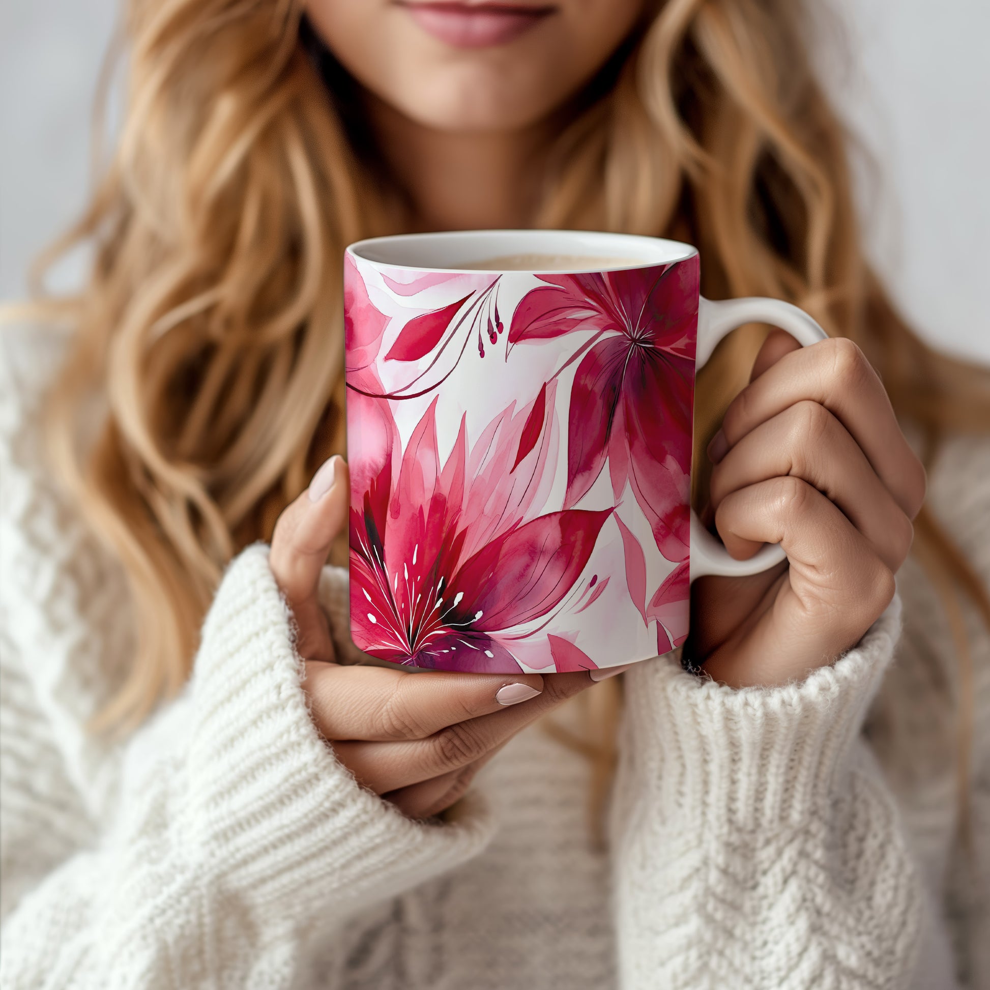 Tento elegantní hrnek s jemným květinovým vzorem v růžových a červených tónech je ideální pro každodenní používání. Skvěle se hodí na čaj nebo kávu a dodá vašemu stolu stylový vzhled.