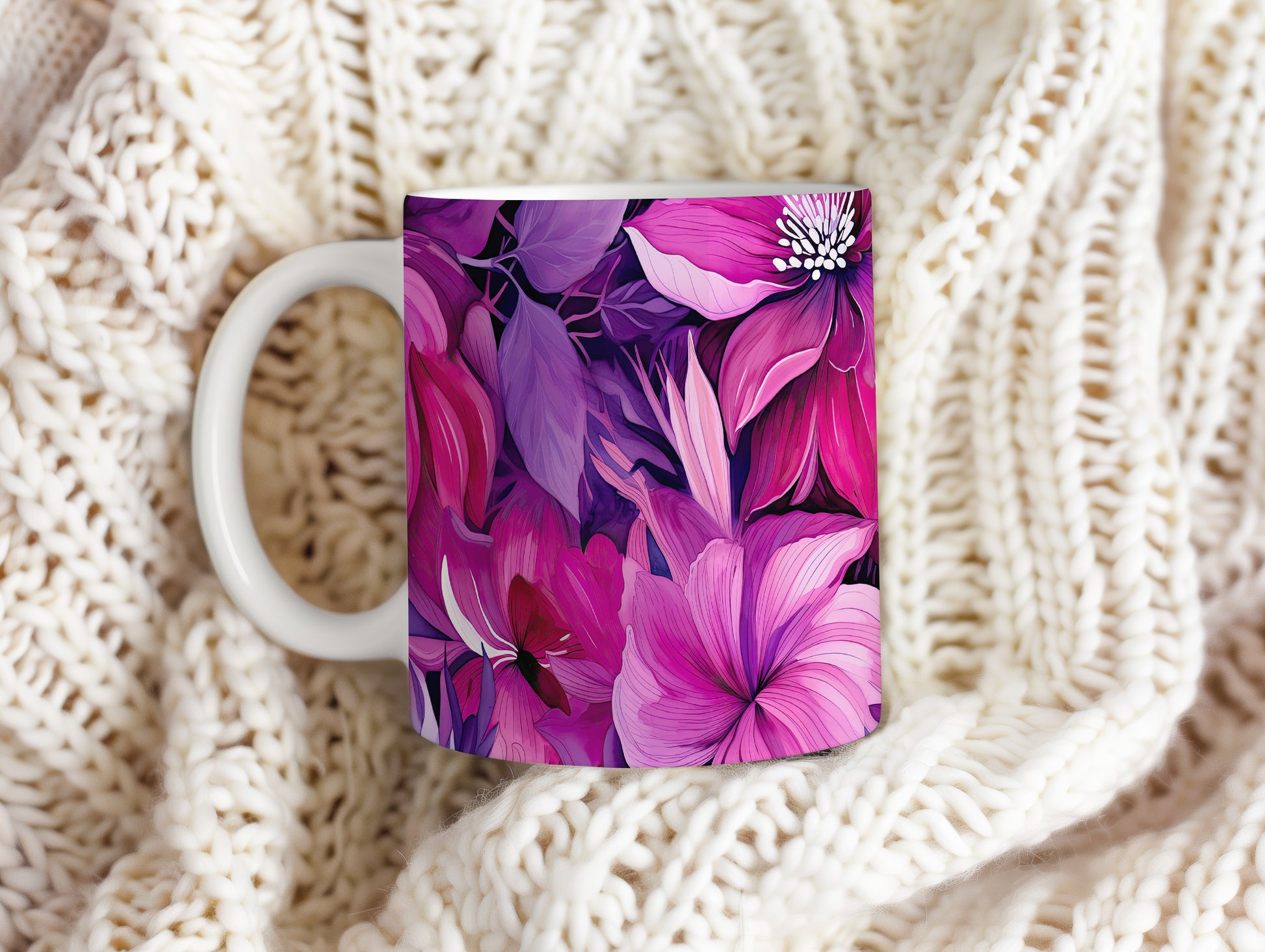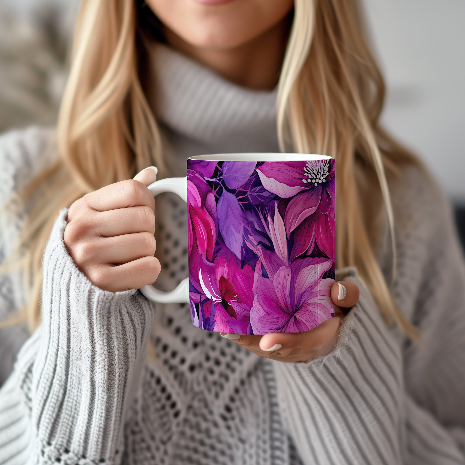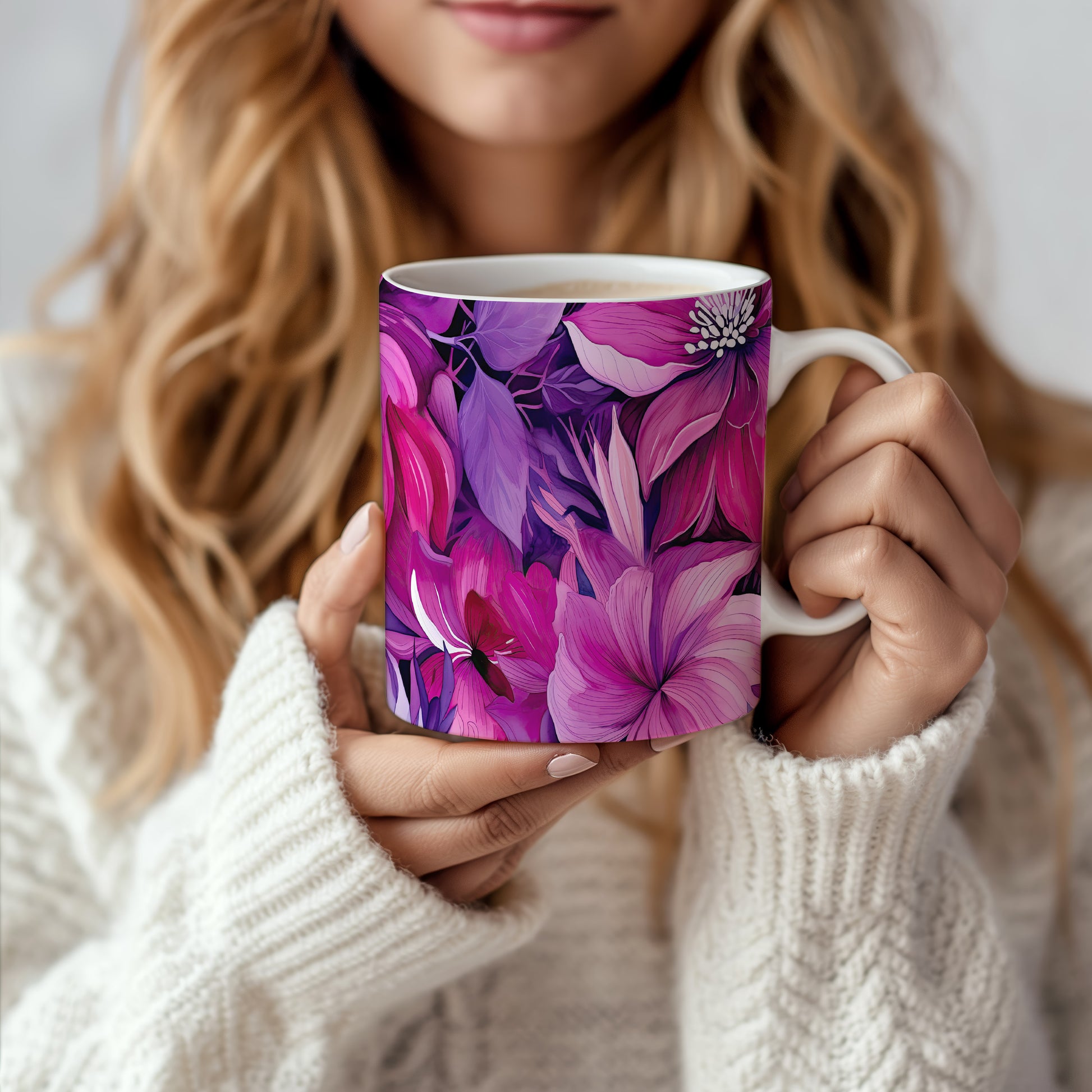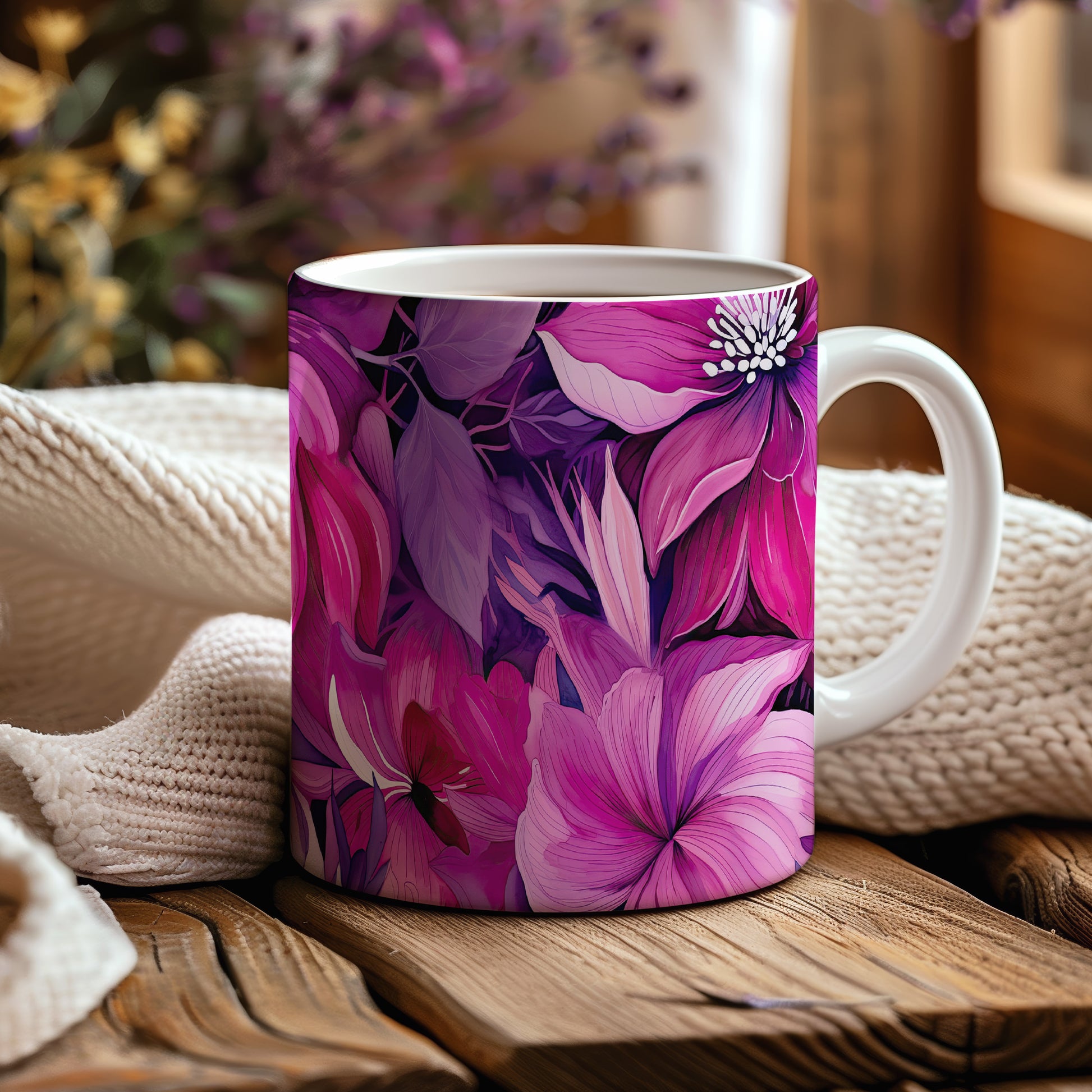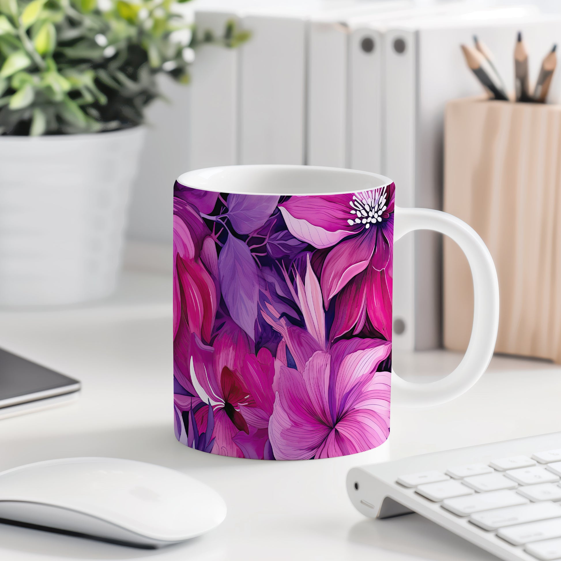 Elegantní hrnek s živými květinovými motivy v růžových tónech