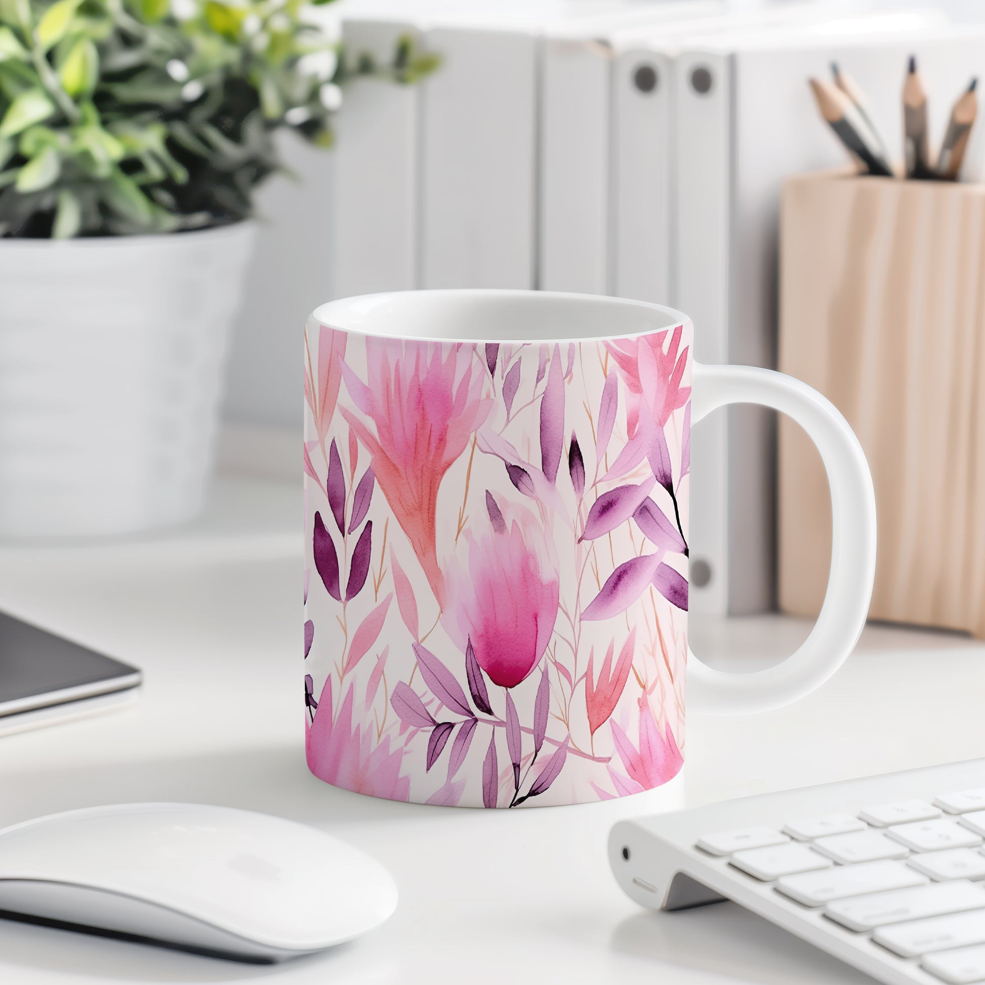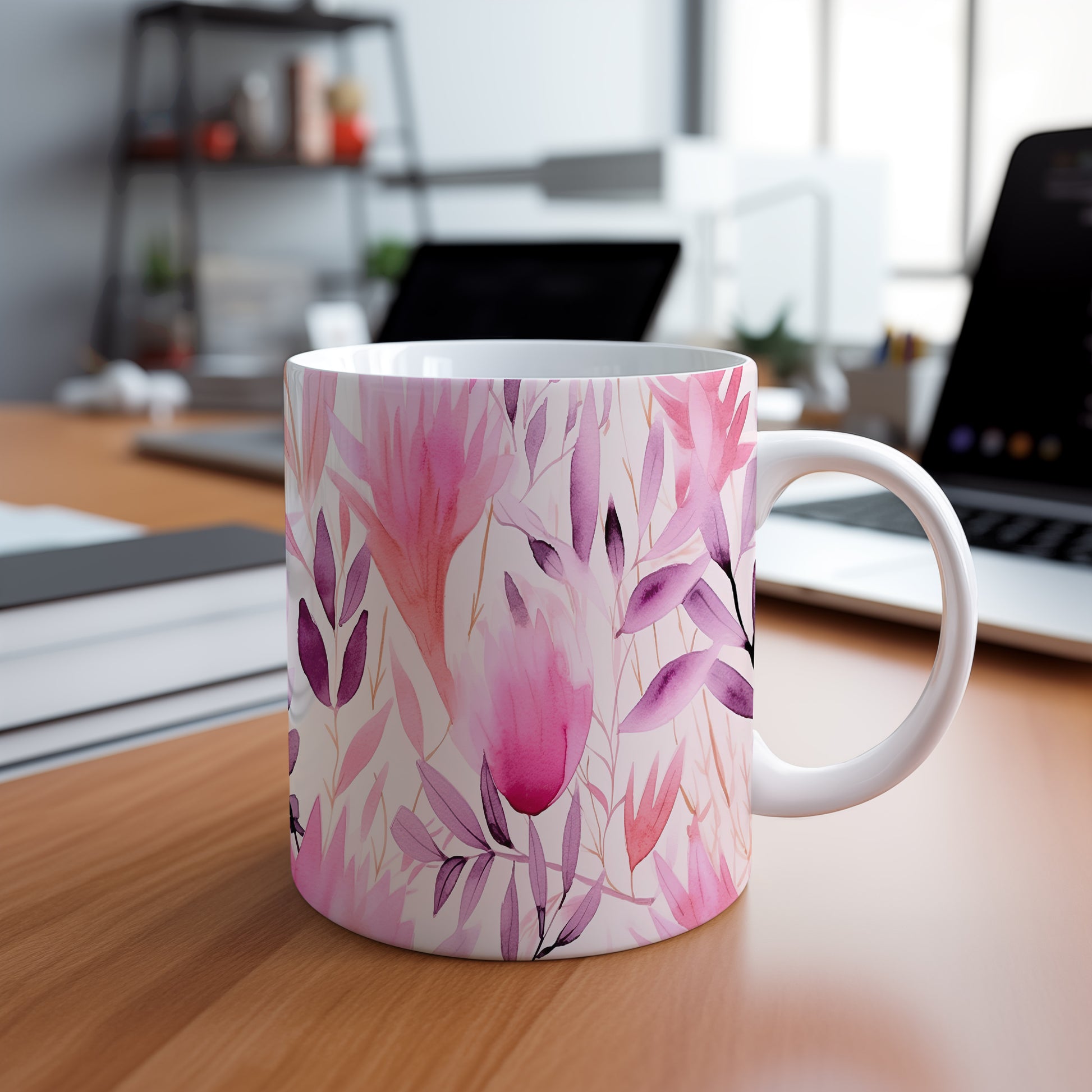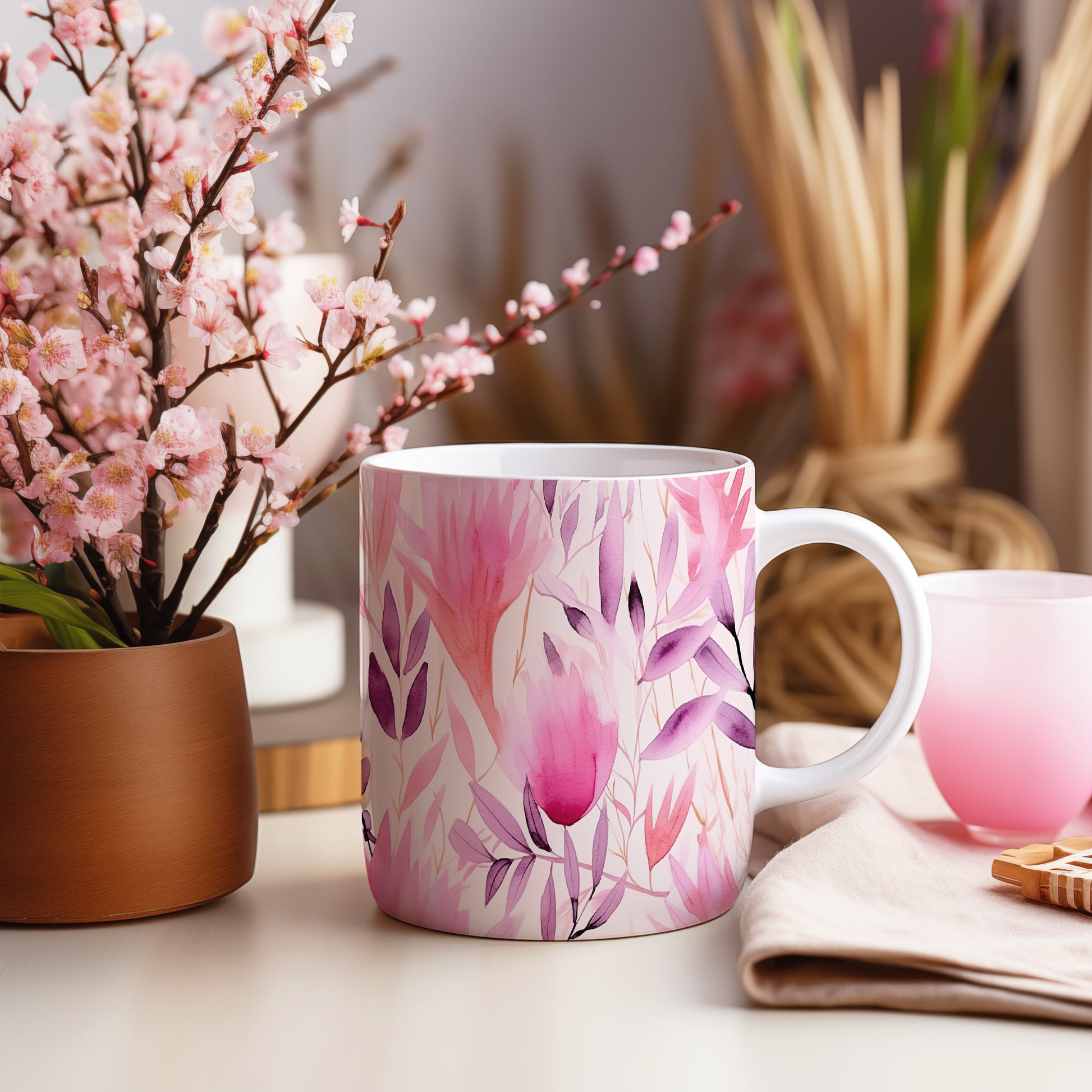 Elegantní hrnek s květinovým motivem v růžových odstínech (květiny #2)