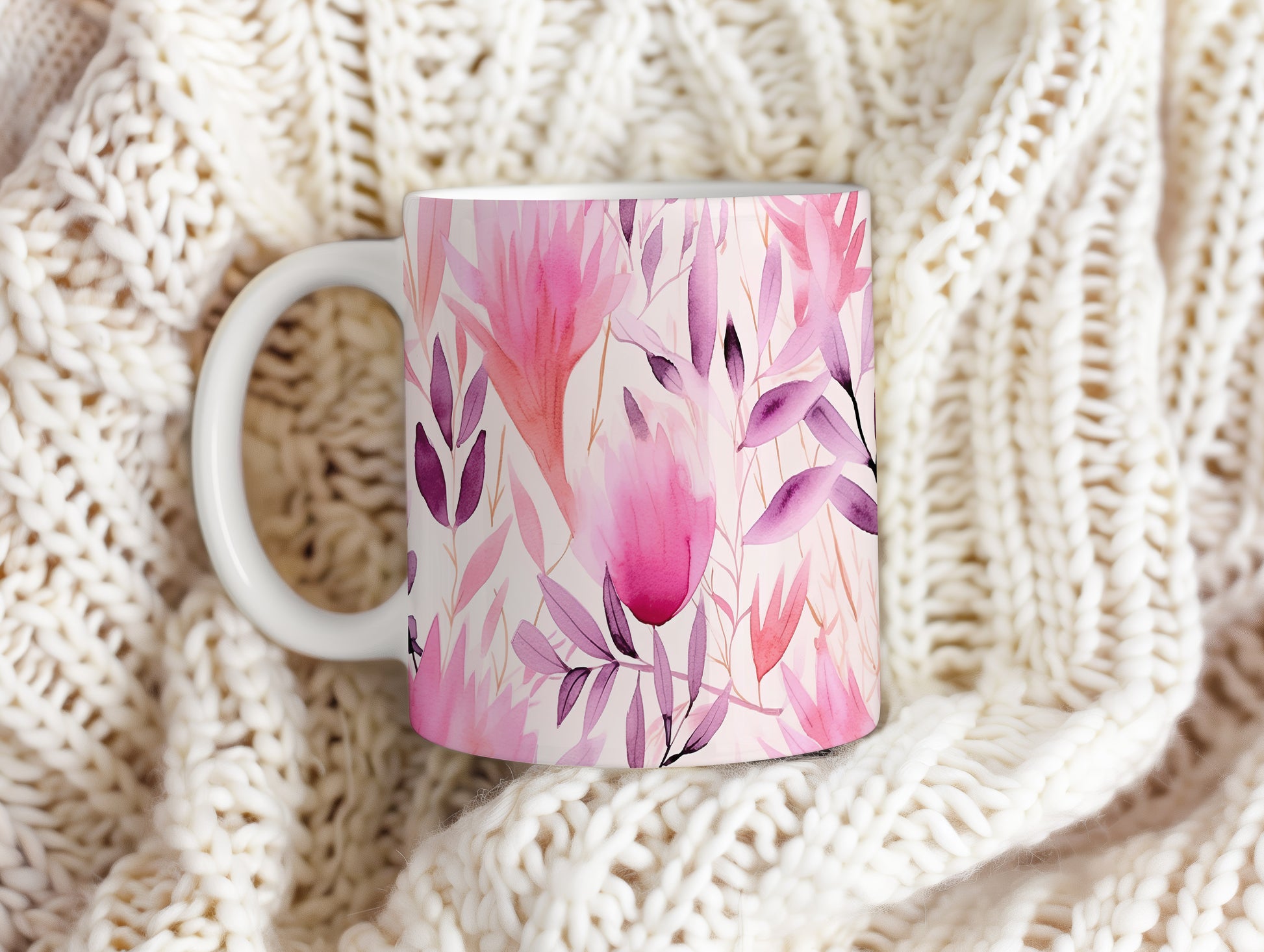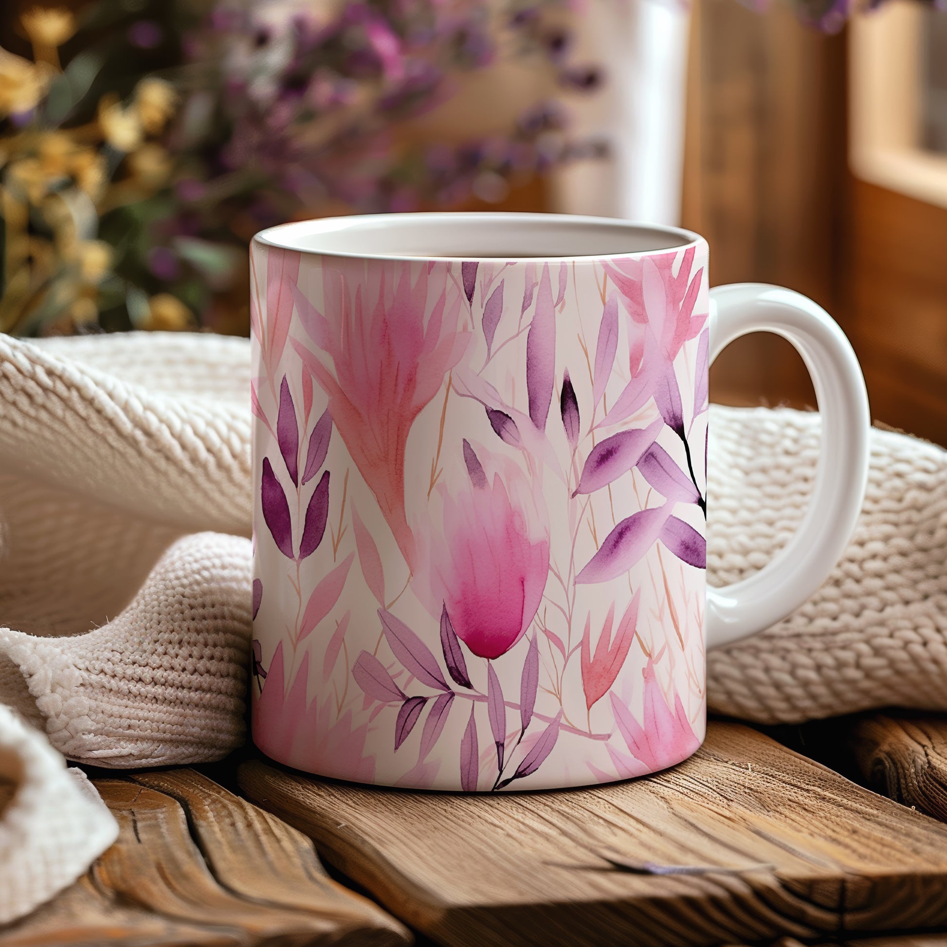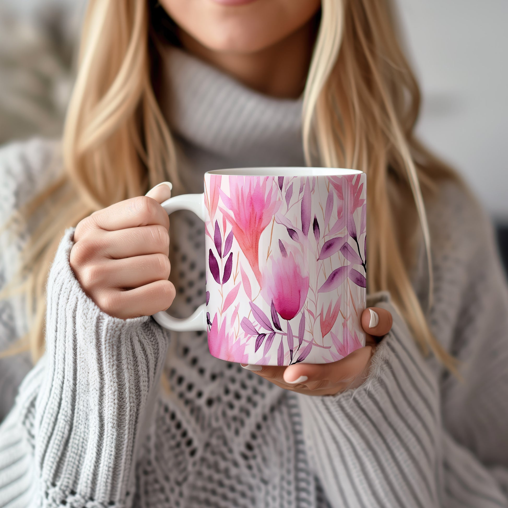 Elegantní hrnek s květinovým motivem v růžových odstínech (květiny #2)