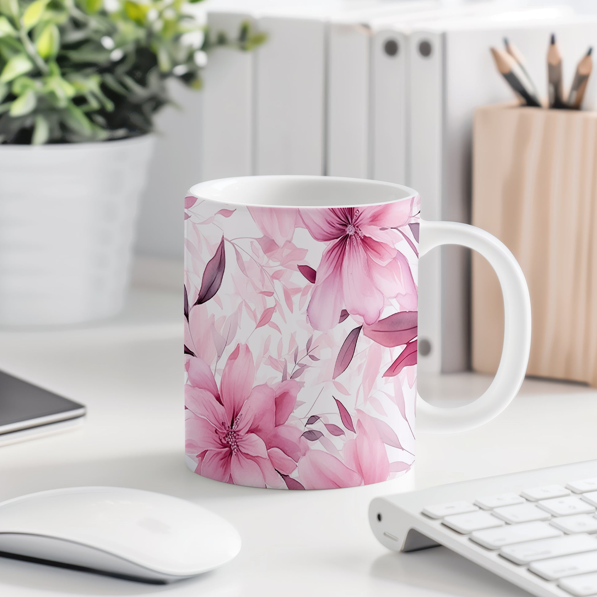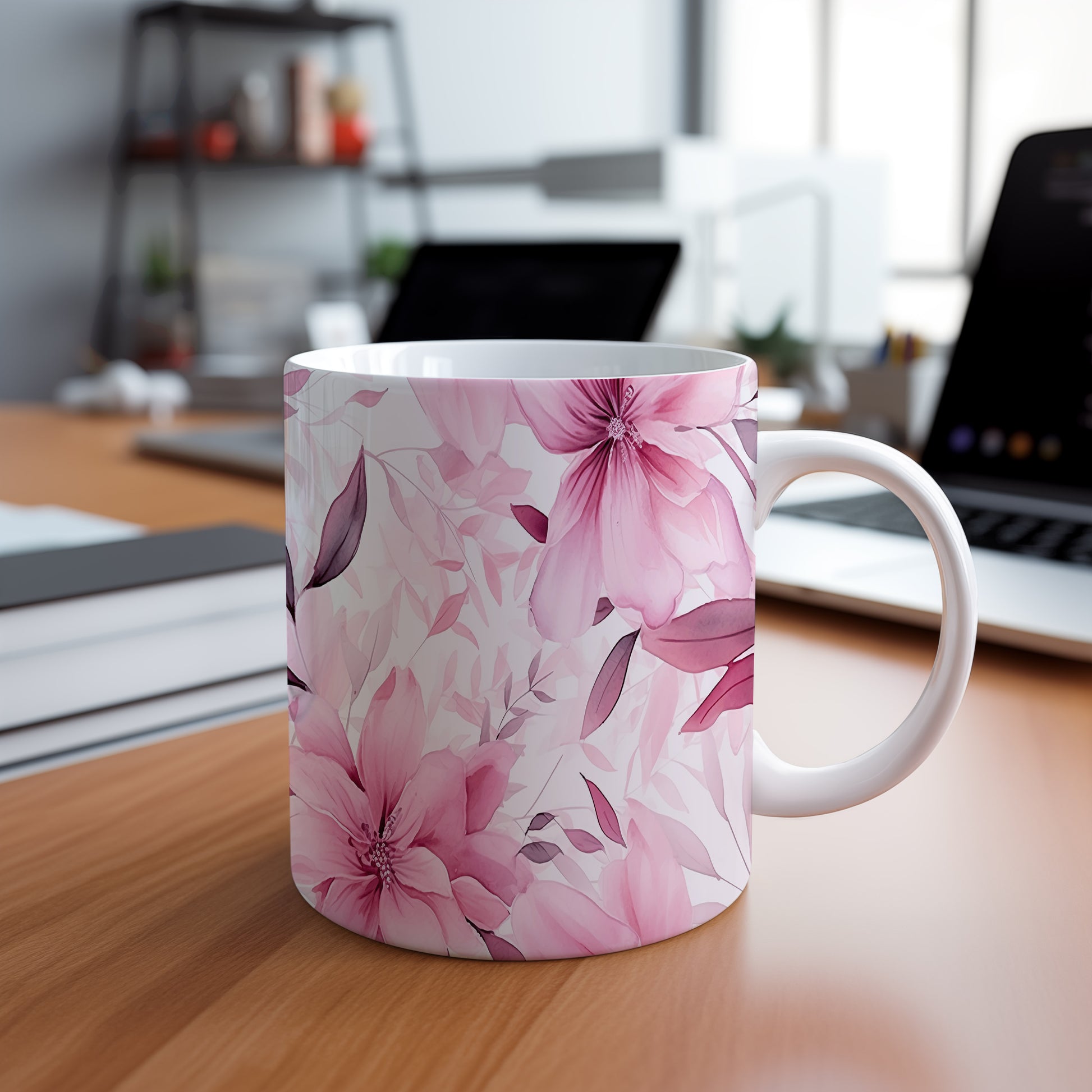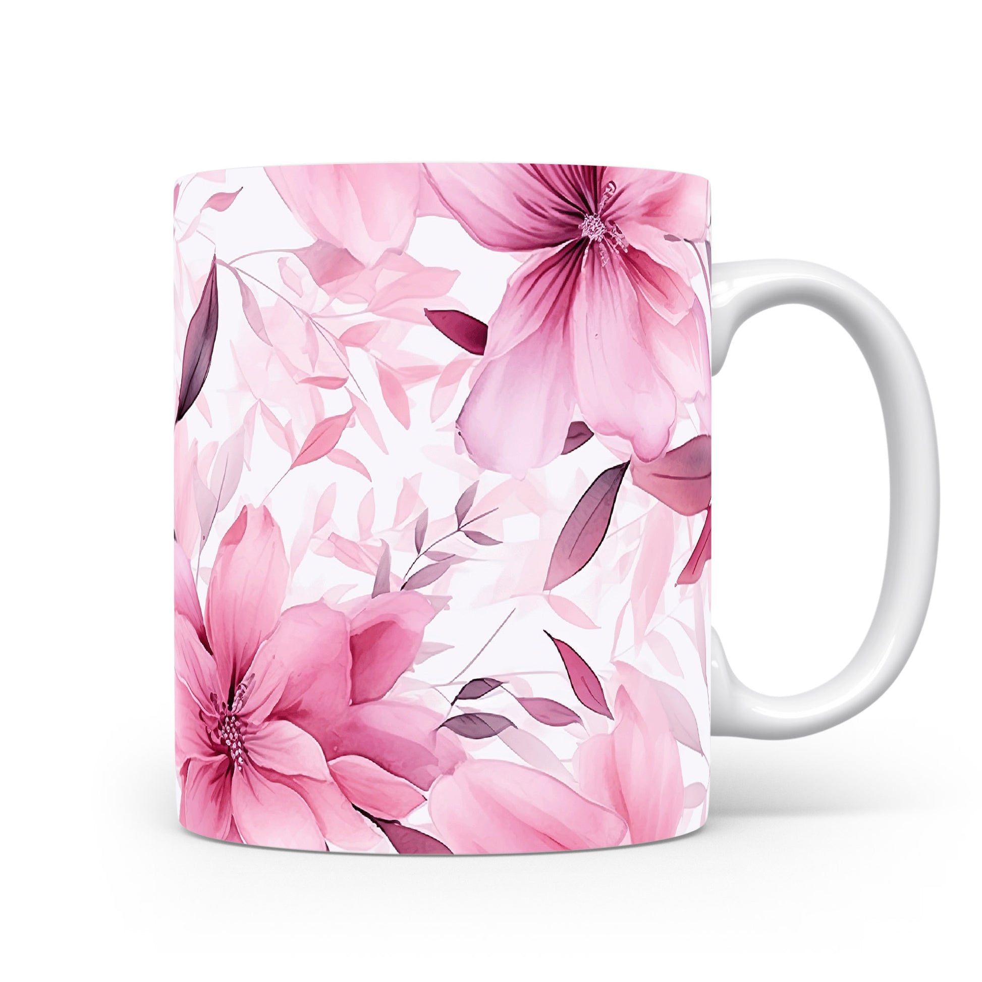 Elegantní hrnek s květinovým vzorem v růžových odstínech