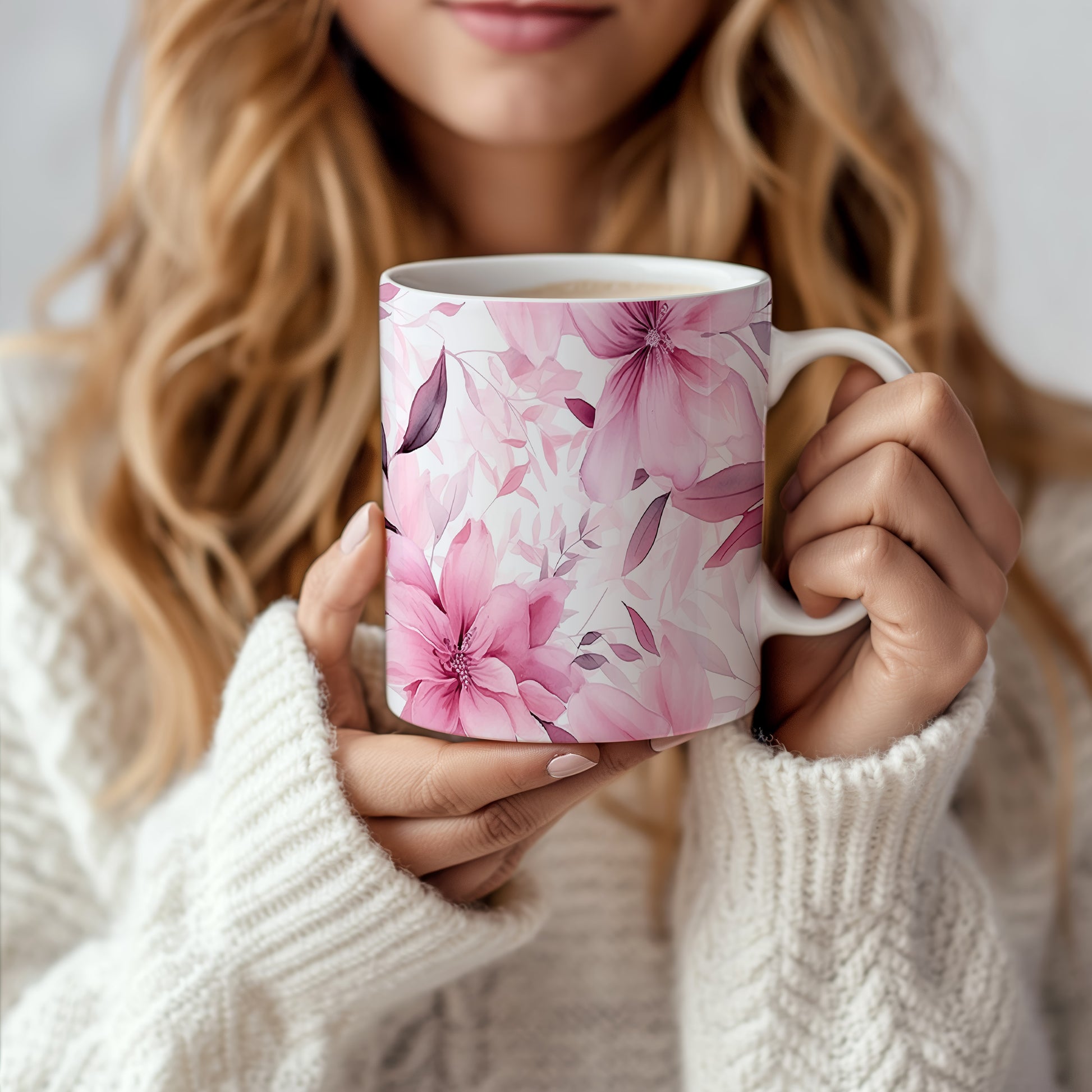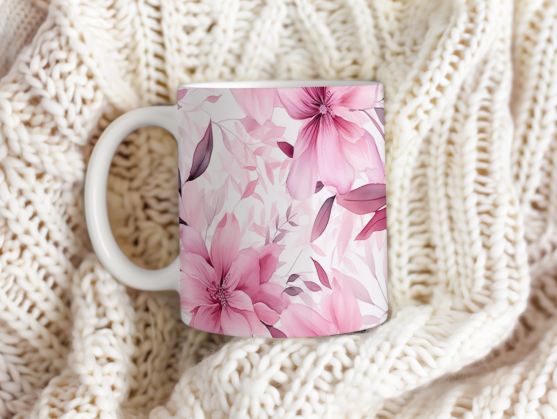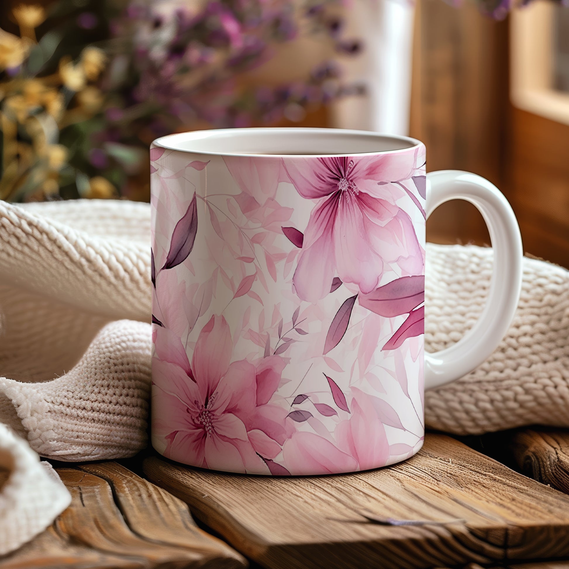 Elegantní hrnek s květinovým vzorem v růžových odstínech