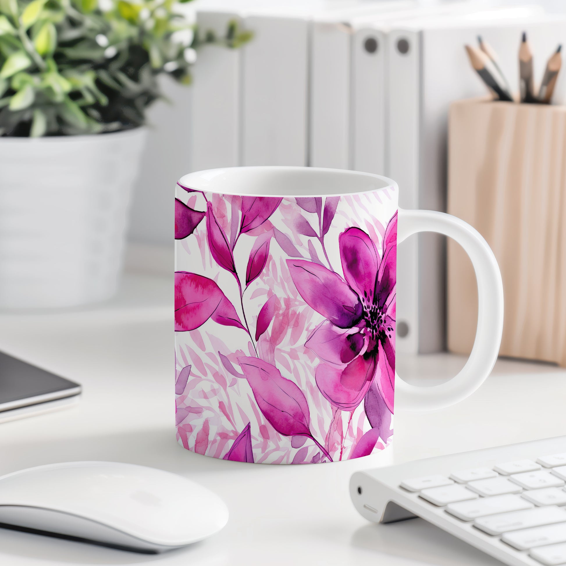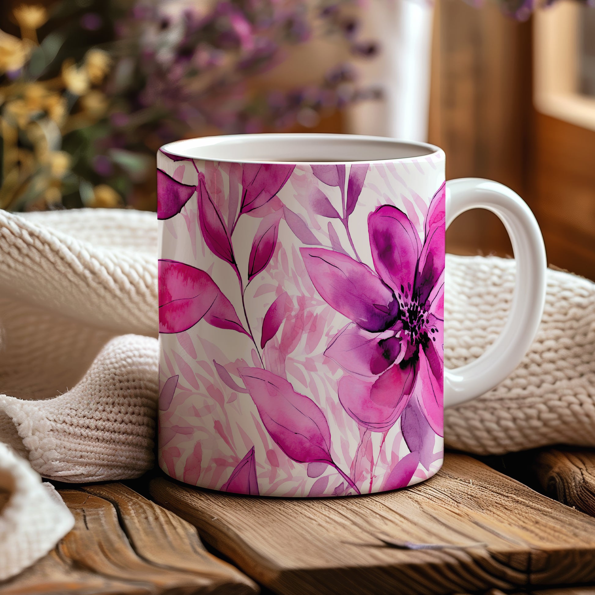 Tento hrnek s jemným květinovým designem přináší do každého dne svěží atmosféru. Ideální pro milovníky přírody a elegantního stylu.