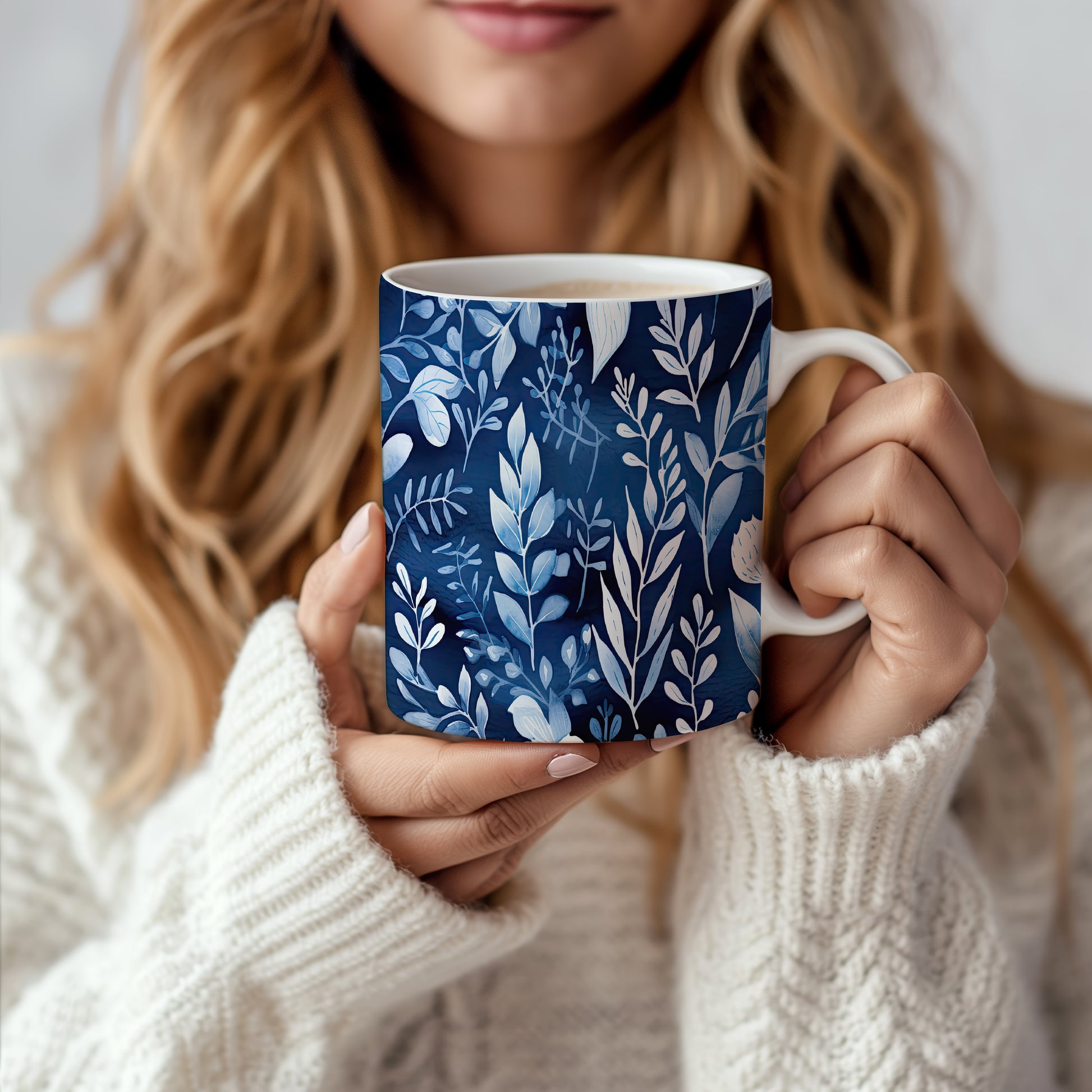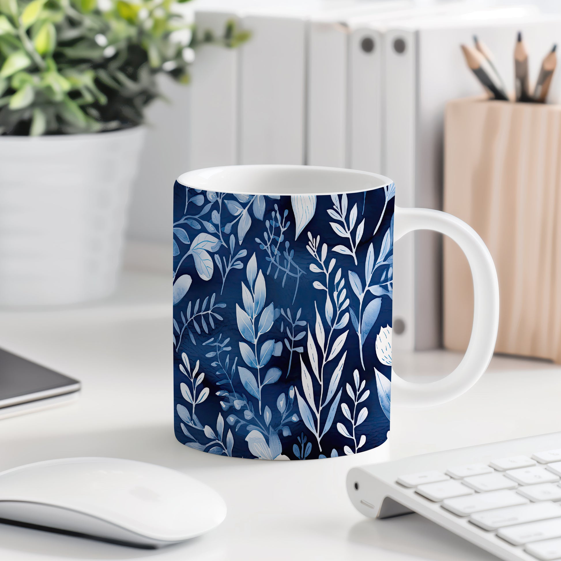 Tento hrnek s akvarelovými listy na tmavě modrém pozadí přináší elegantní a moderní design. Je ideální pro milovníky přírody a stylových doplňků, skvěle se hodí jako dárek pro přátele či rodinu. Materiál: keramika. Objem: 330 ml. Vhodné do myčky i mikrovlnky. Používání tohoto hrnku dodá každému nápoji jedinečný šarm.