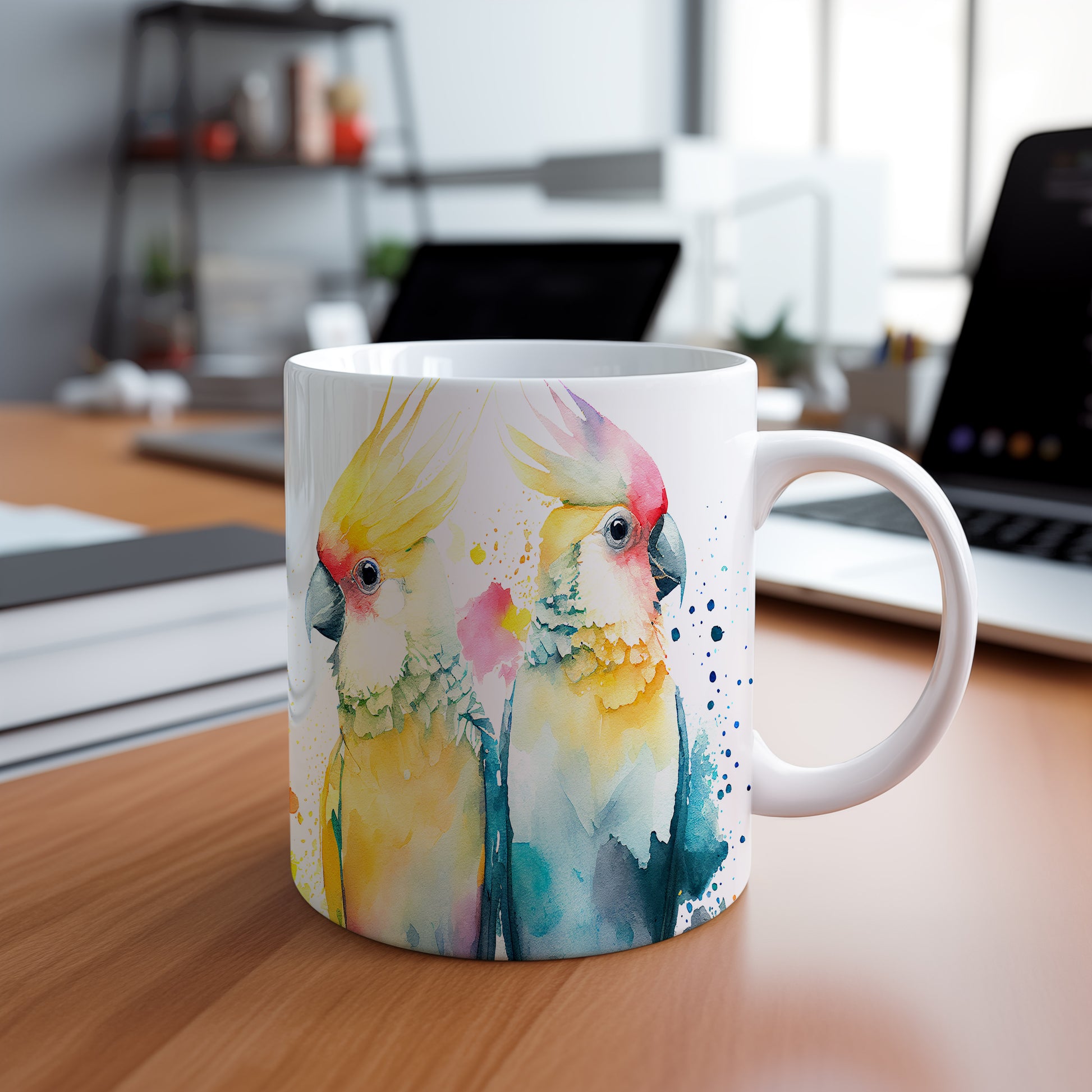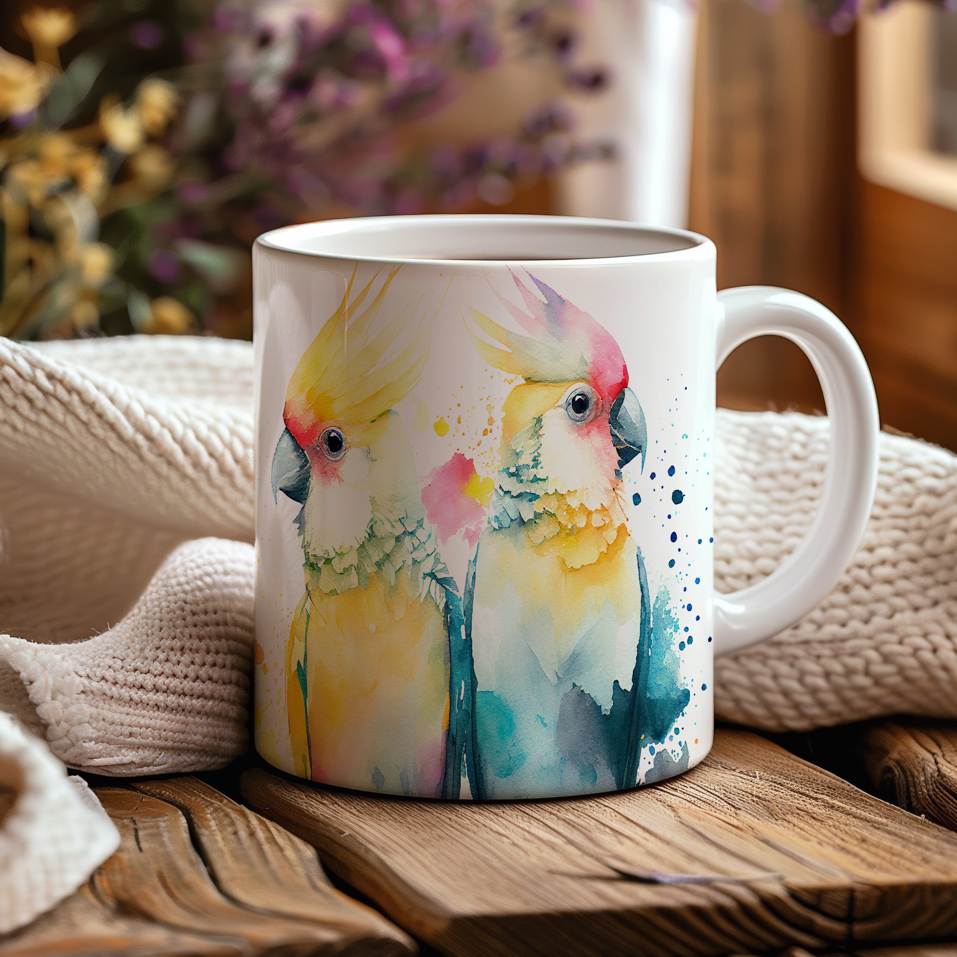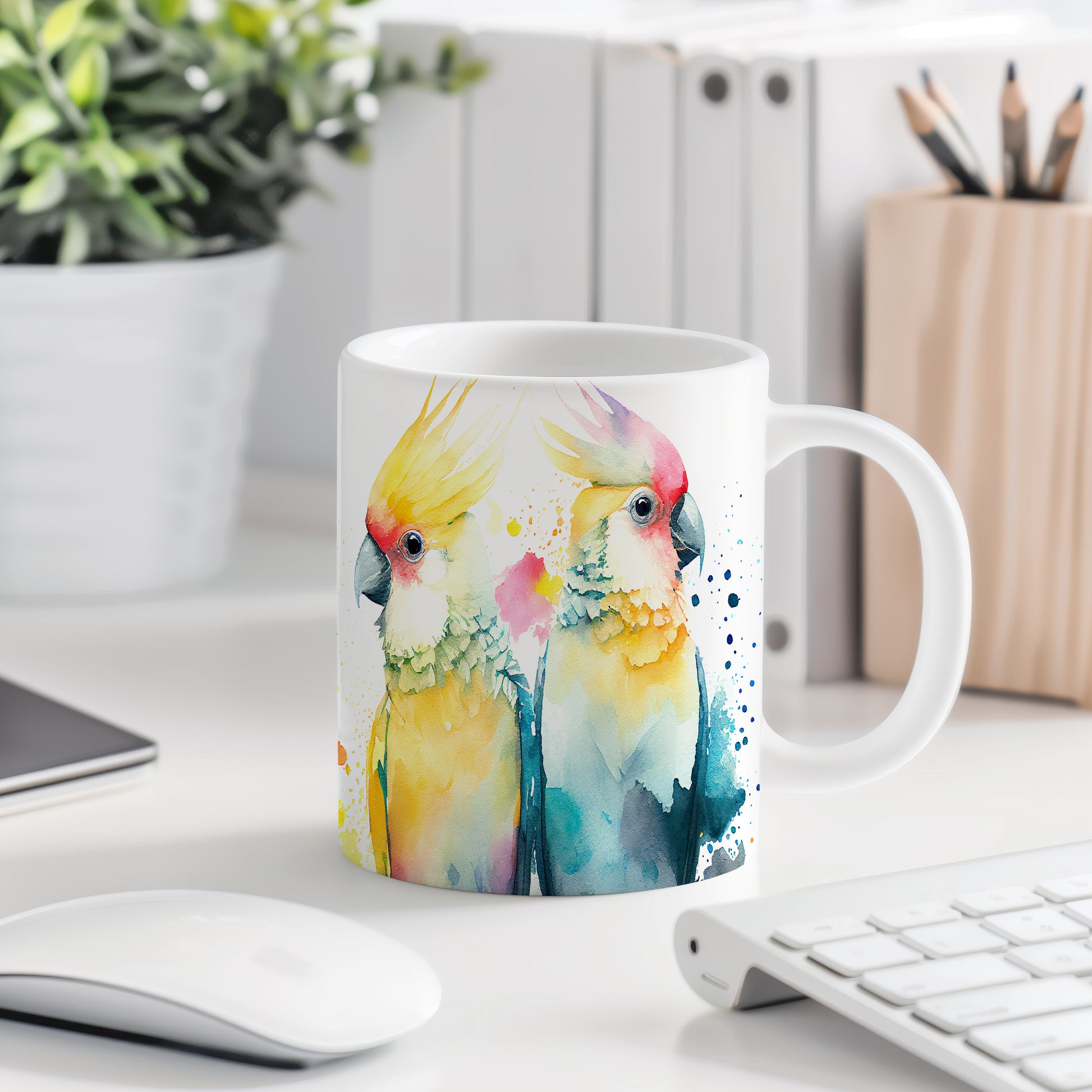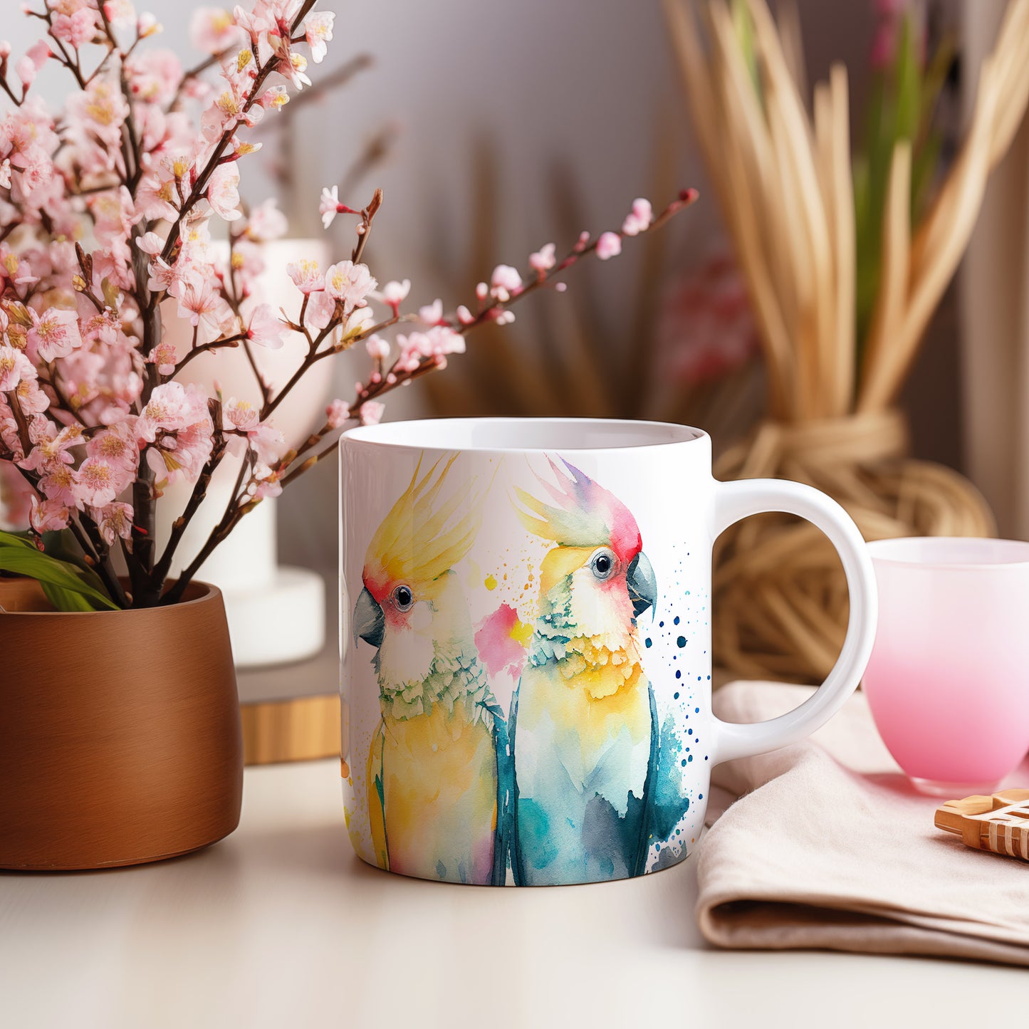 Tento hrnek zobrazuje dva nádherné akvarelové papoušky v živých barvách. Je ideální pro milovníky ptáků a přírody, skvělý tip na dárek pro přátele nebo rodinu. Materiál: keramika. Objem: 330 ml. Vhodné do myčky i mikrovlnky. Používání tohoto hrnku přináší radost z každého doušku.