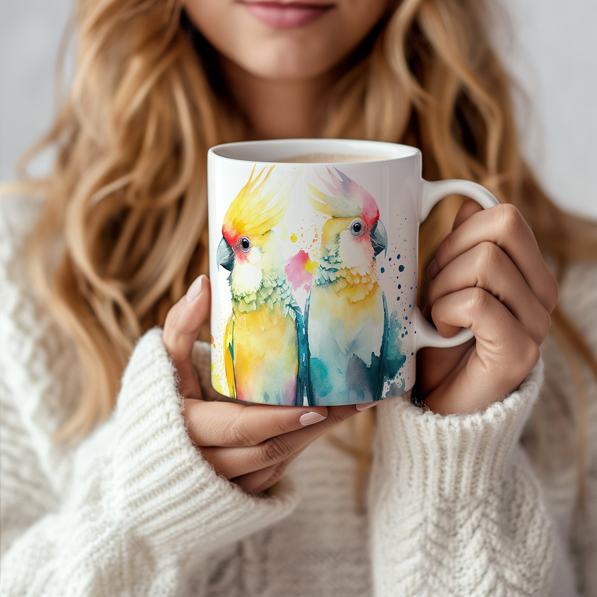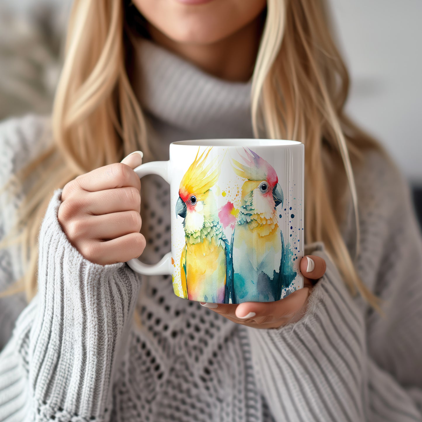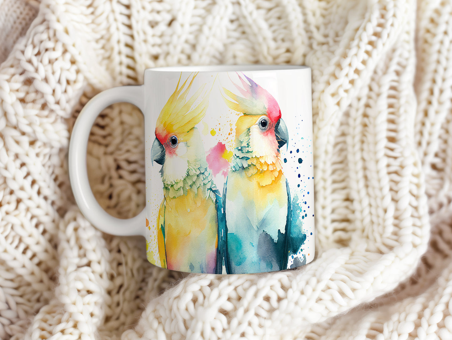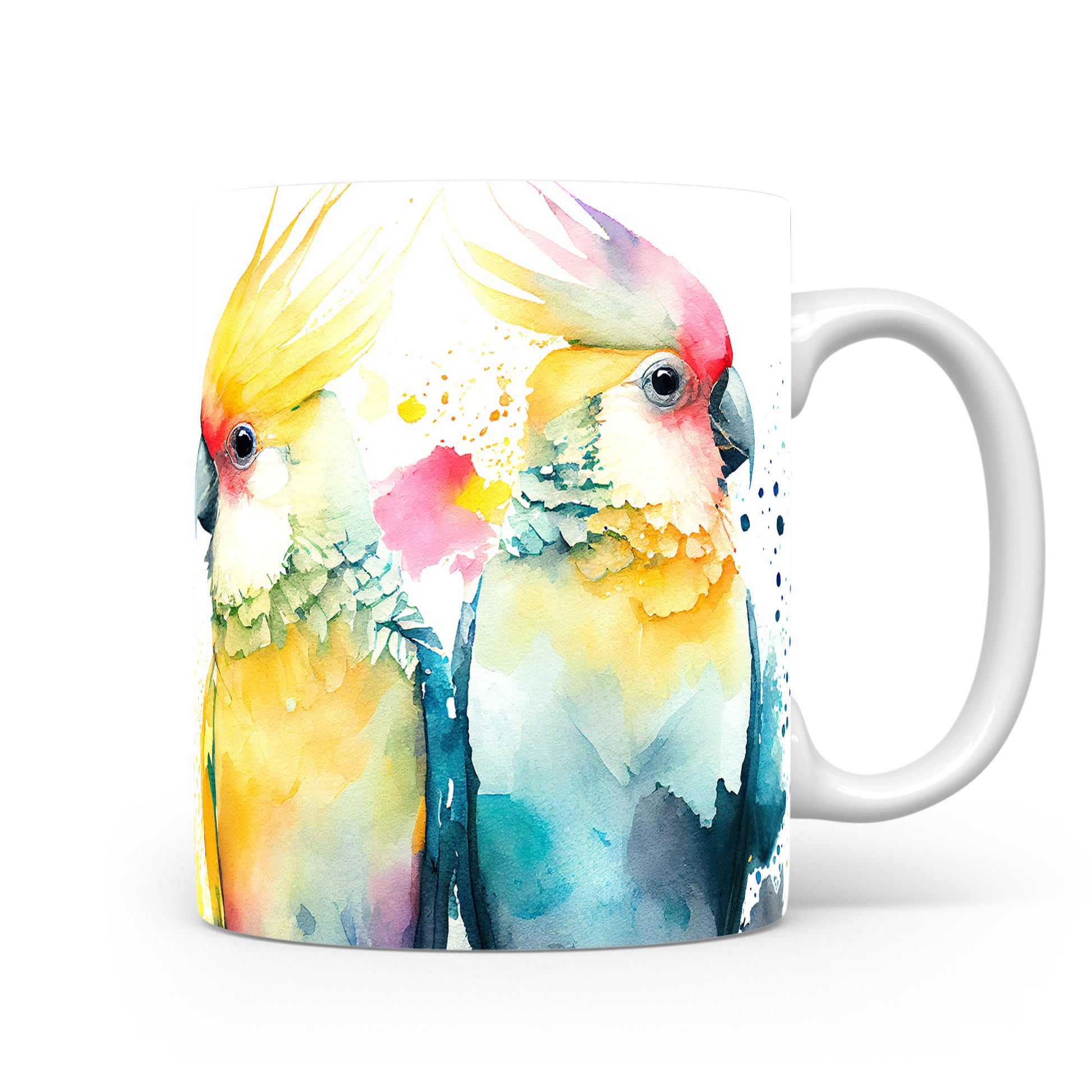 Tento hrnek zobrazuje dva nádherné akvarelové papoušky v živých barvách. Je ideální pro milovníky ptáků a přírody, skvělý tip na dárek pro přátele nebo rodinu. Materiál: keramika. Objem: 330 ml. Vhodné do myčky i mikrovlnky. Používání tohoto hrnku přináší radost z každého doušku.