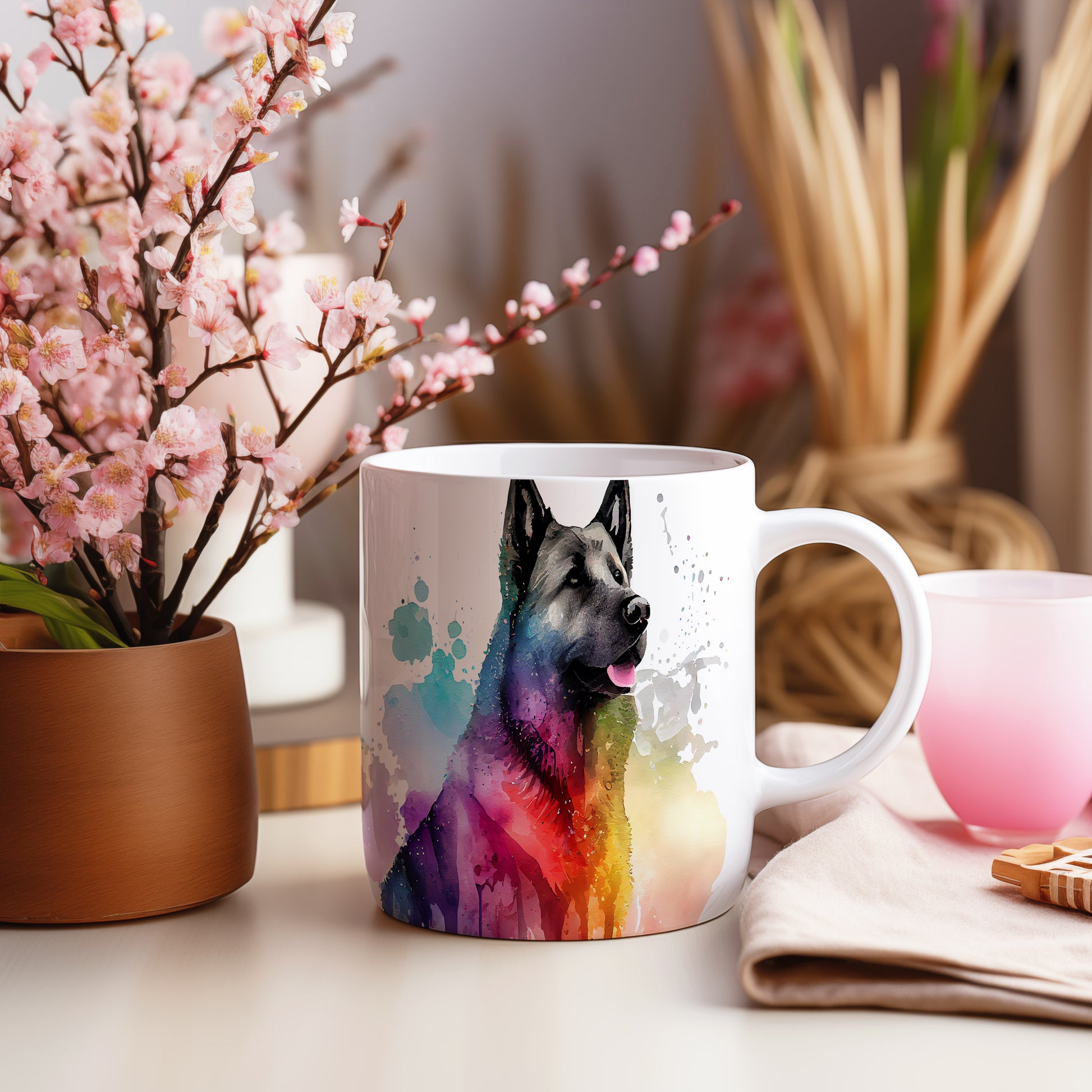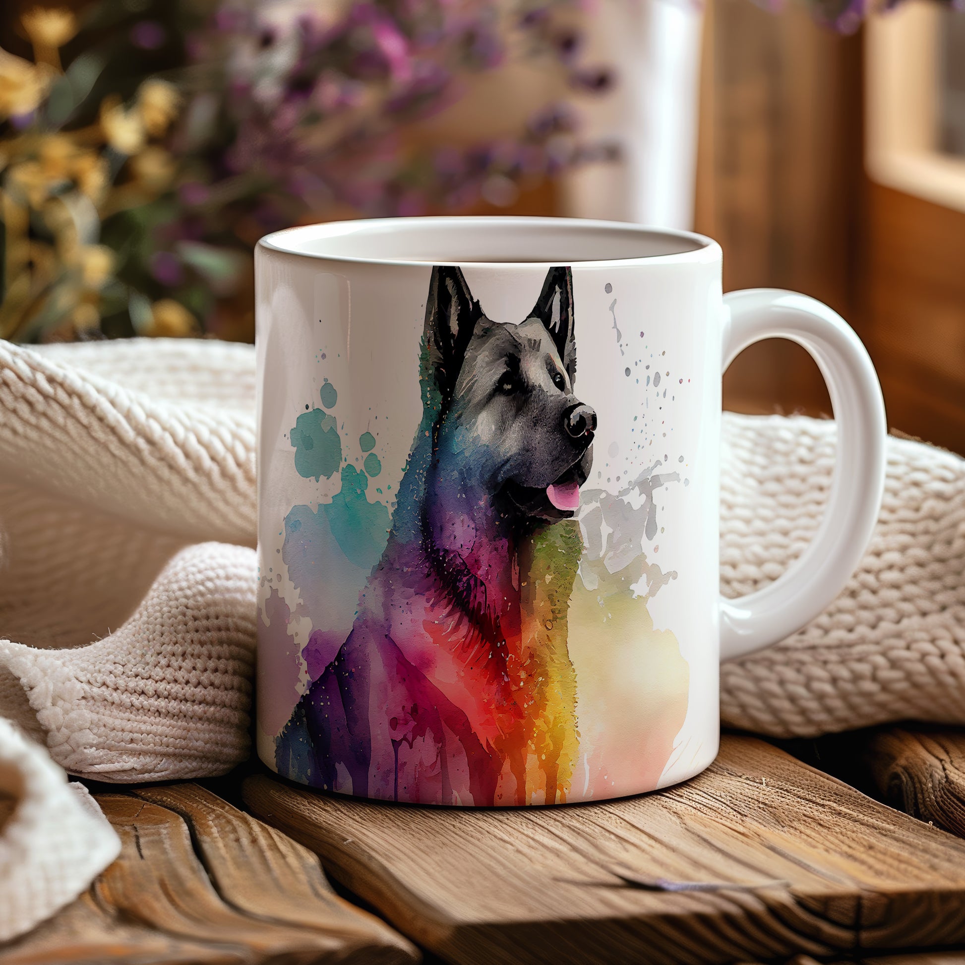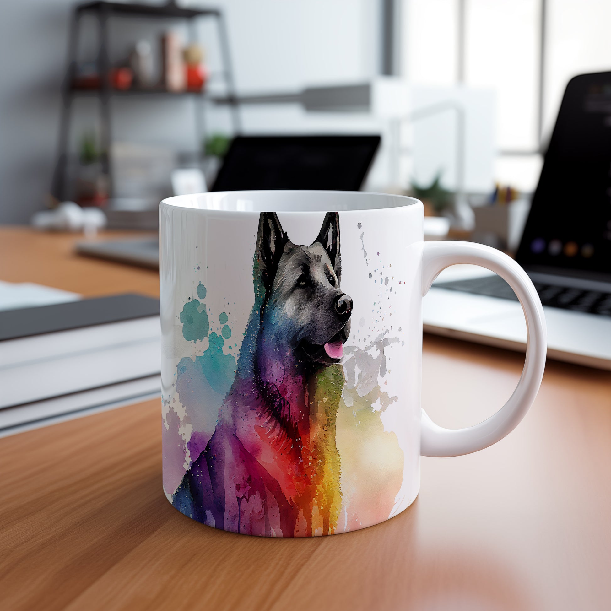 Stylový hrnek s uměleckým ztvárněním psa v akvarelovém stylu. Ideální pro milovníky zvířat a umění.