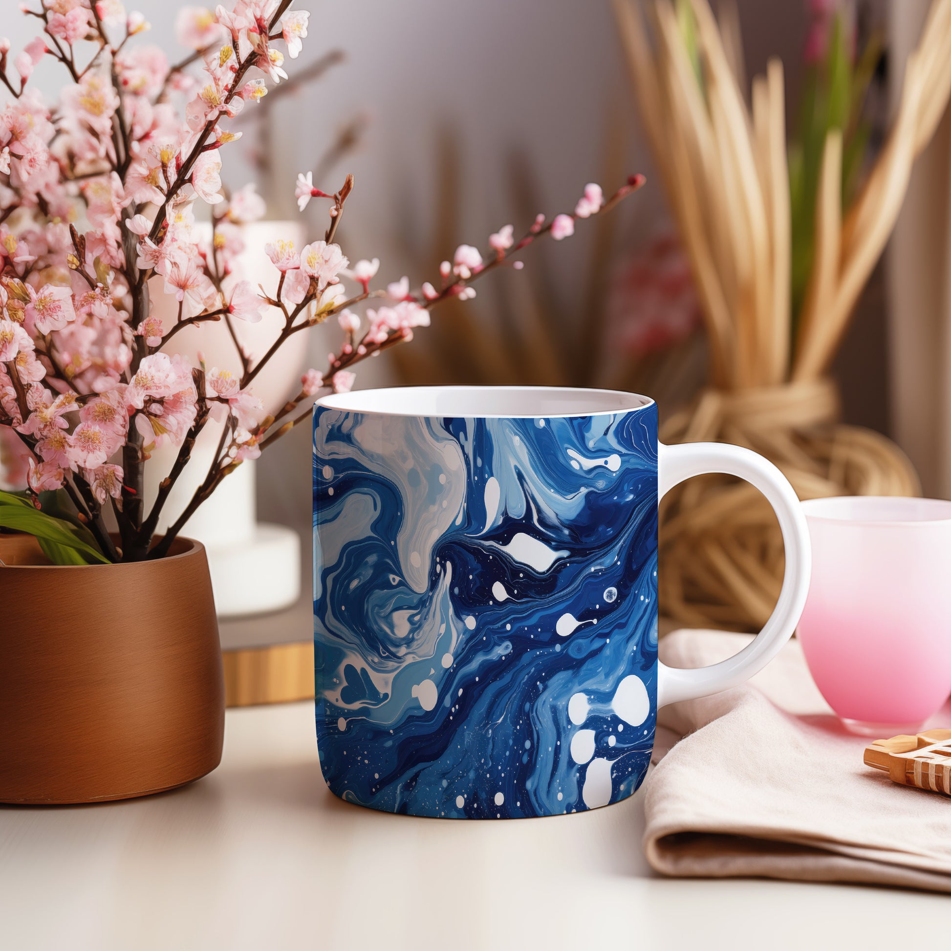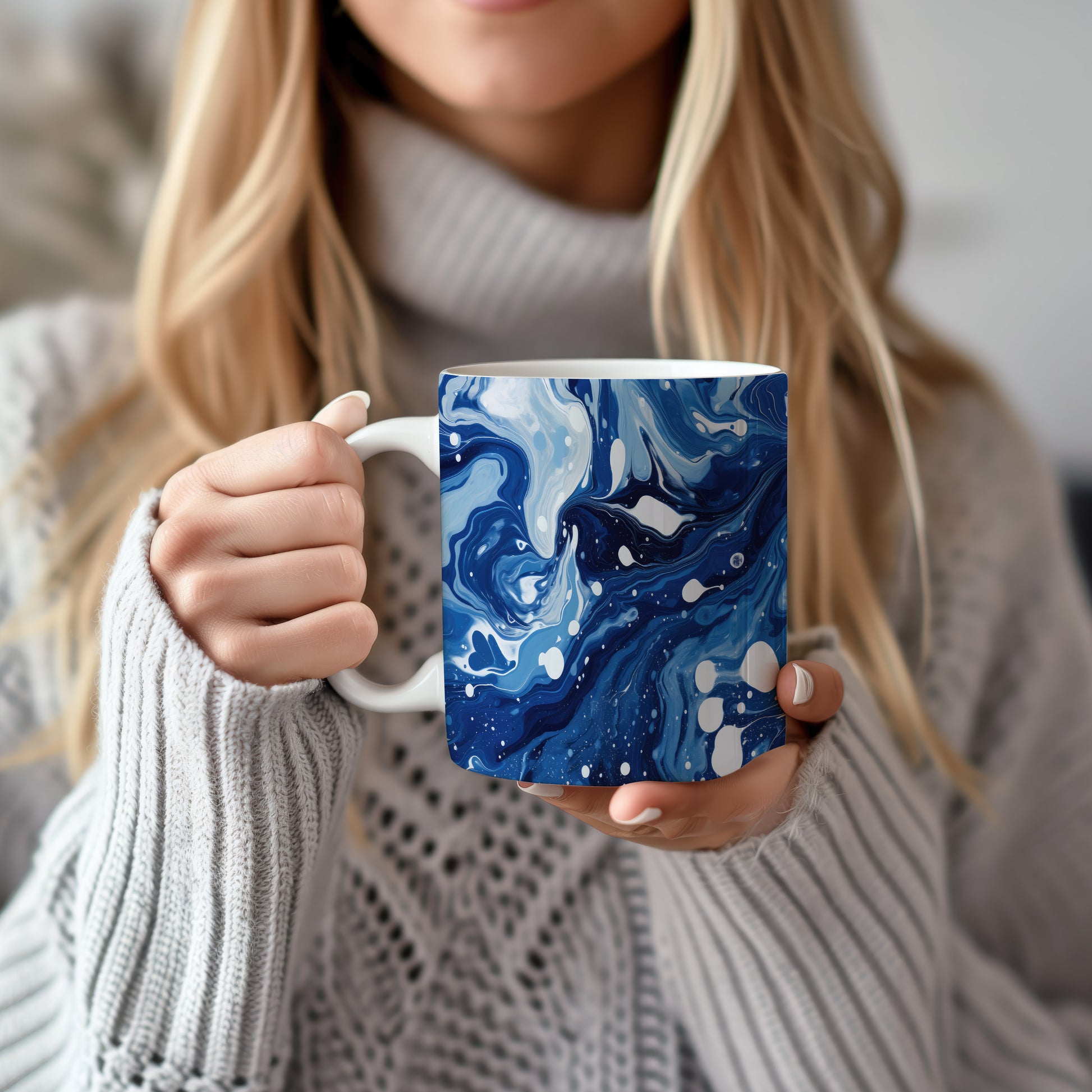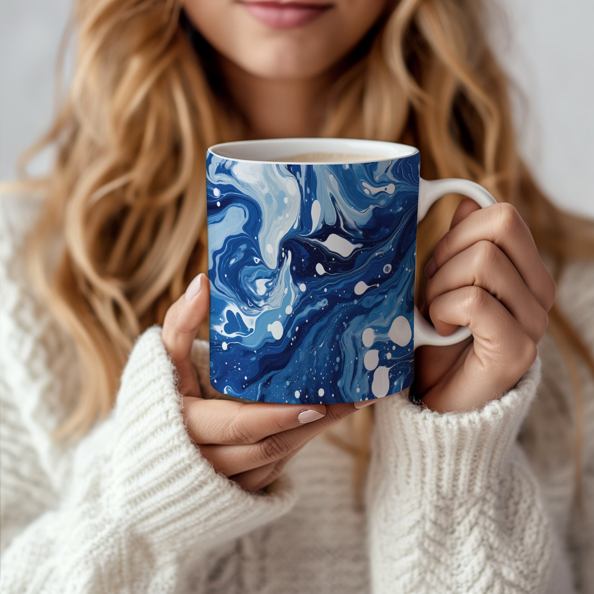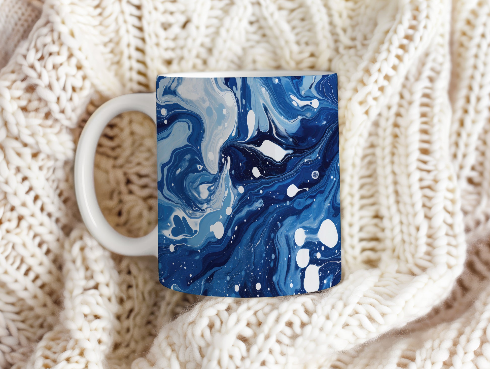 Stylový hrnek s modro-bílým mramorovým vzorem