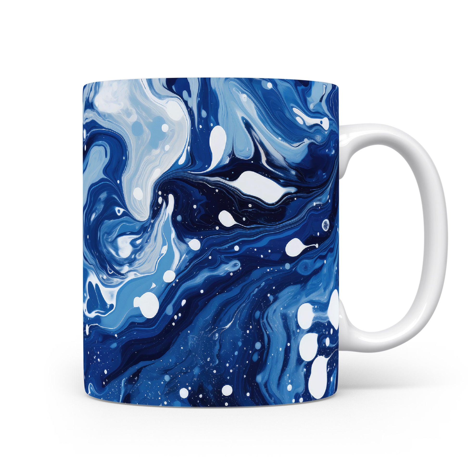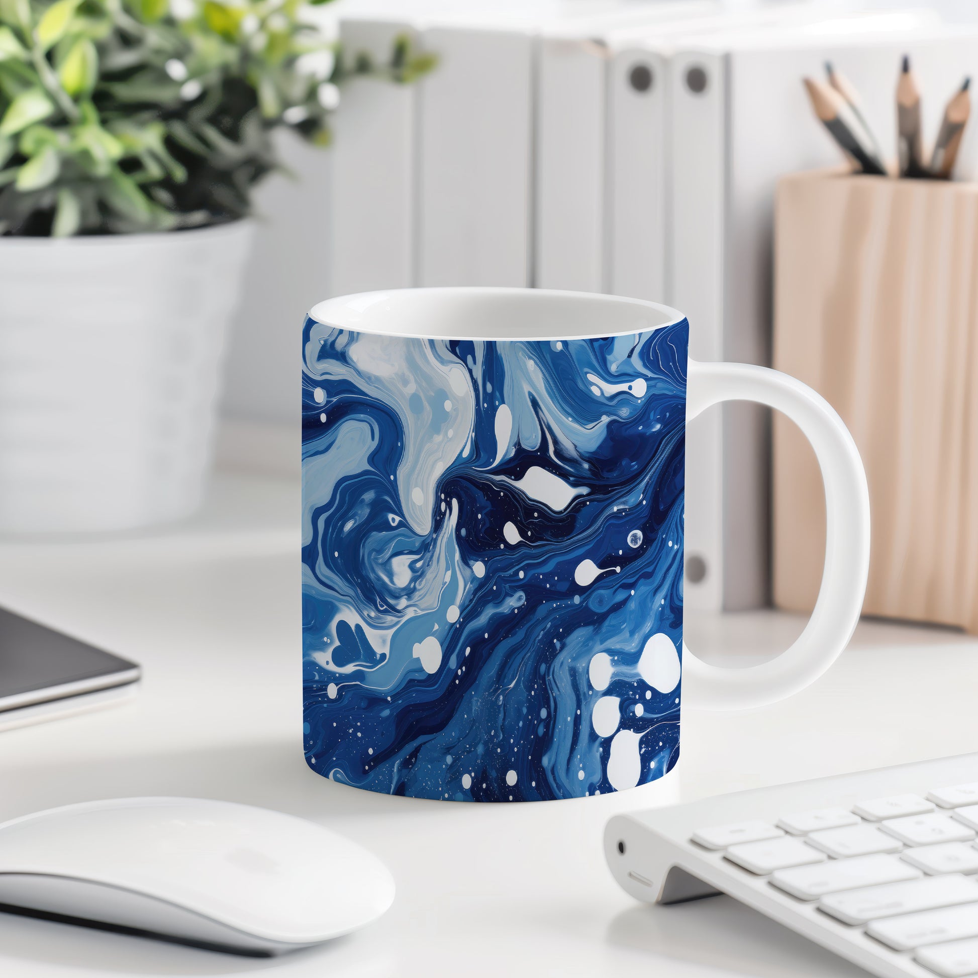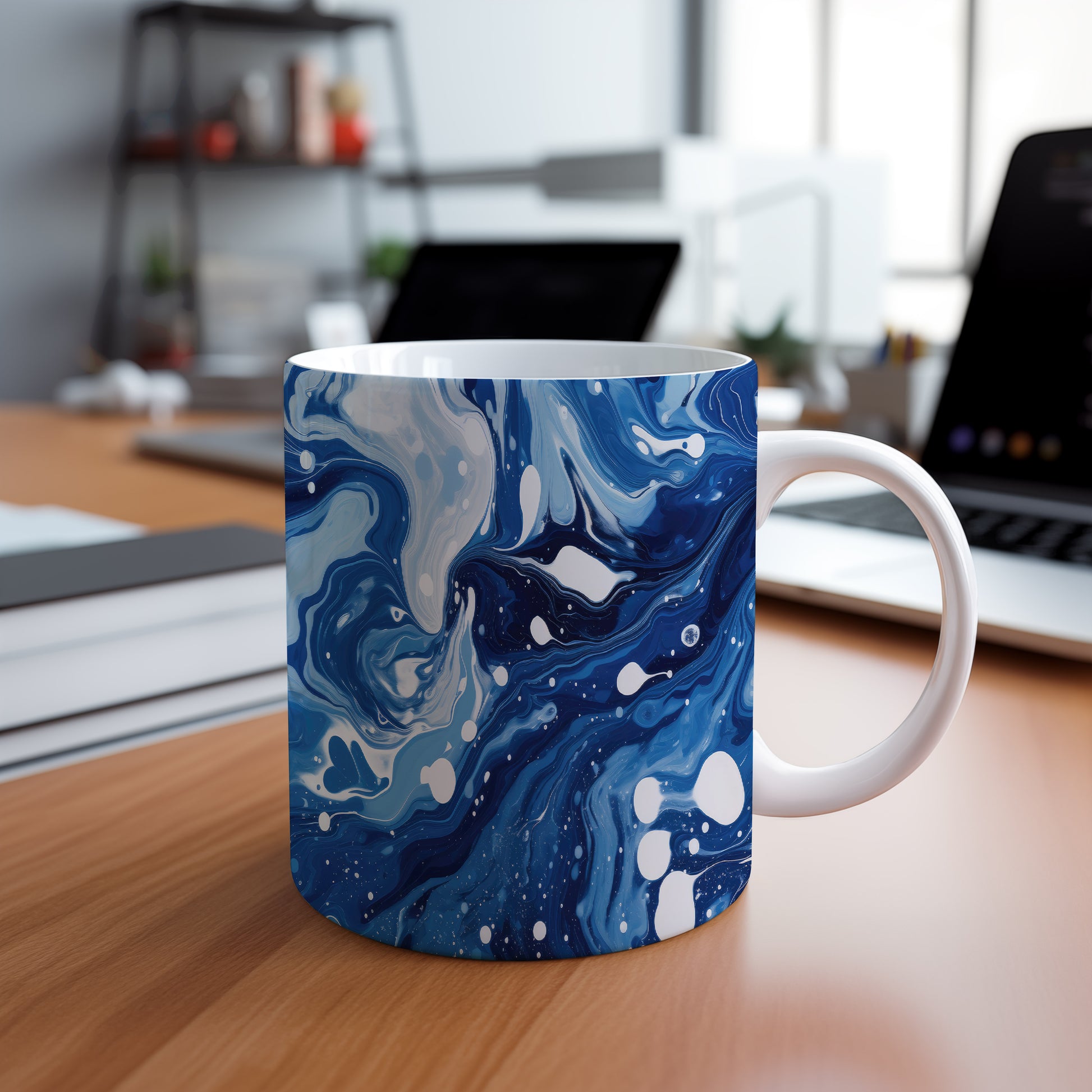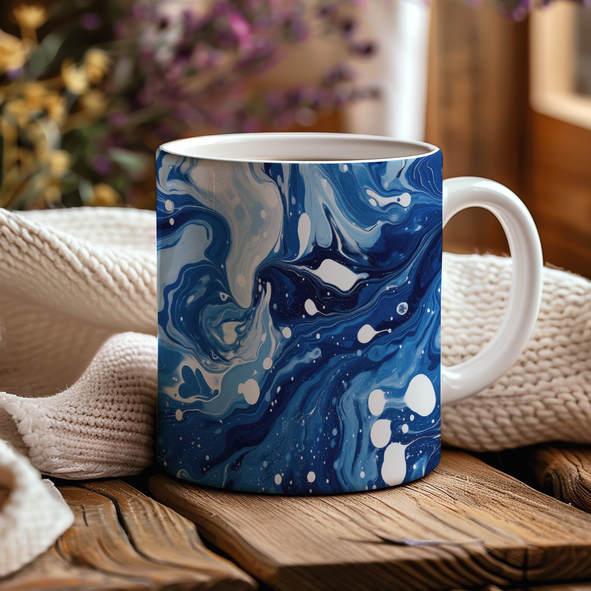 Stylový hrnek s modro-bílým mramorovým vzorem