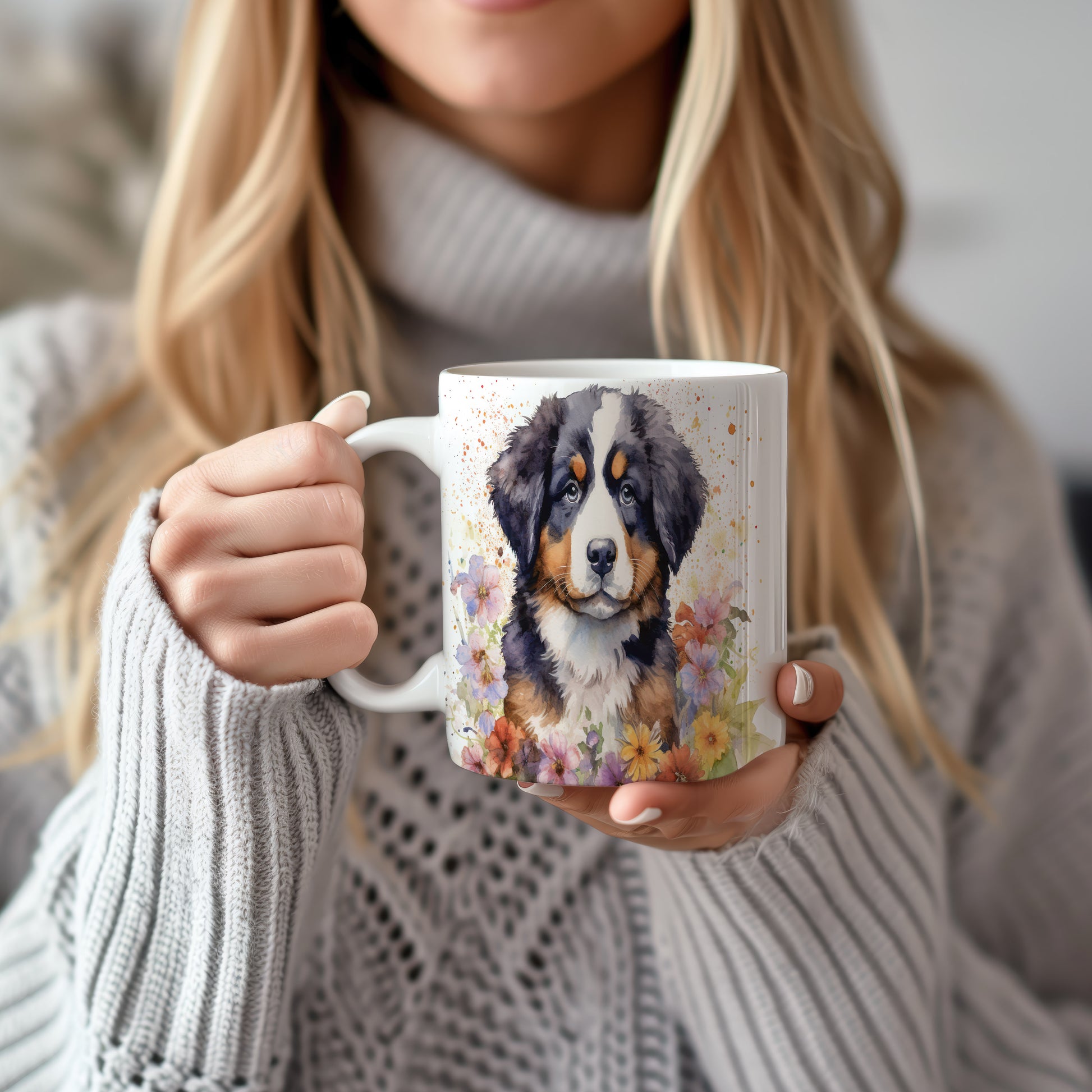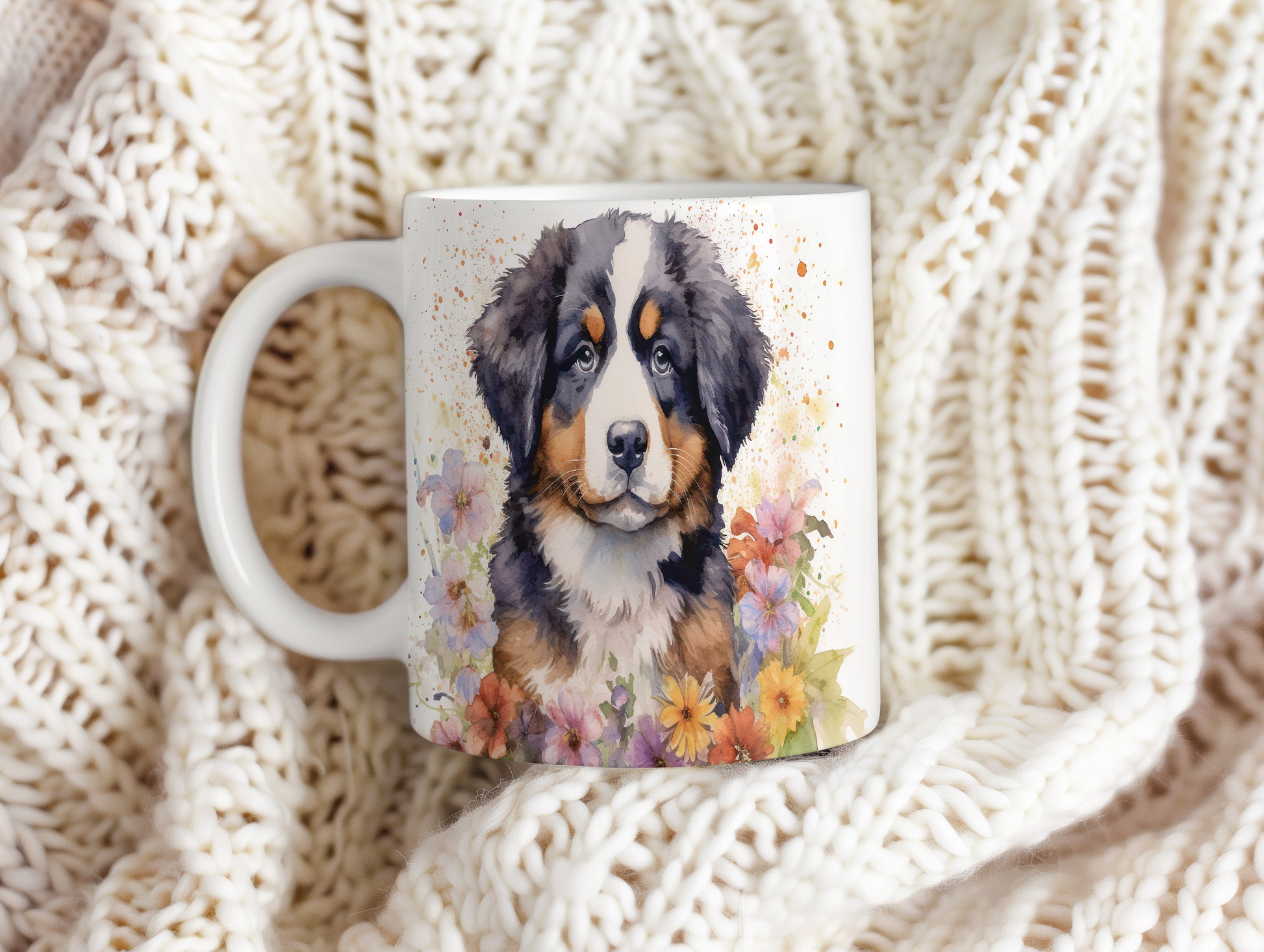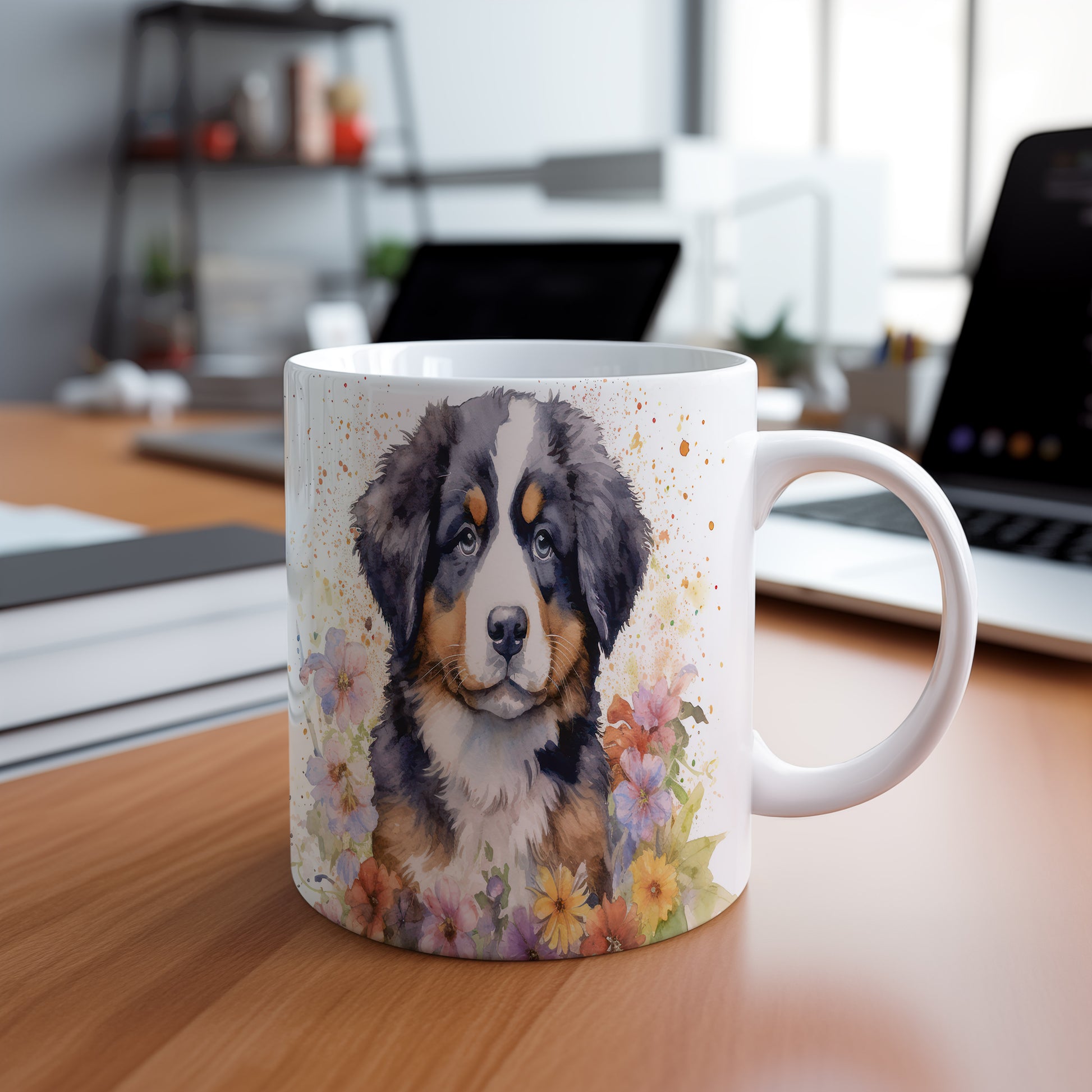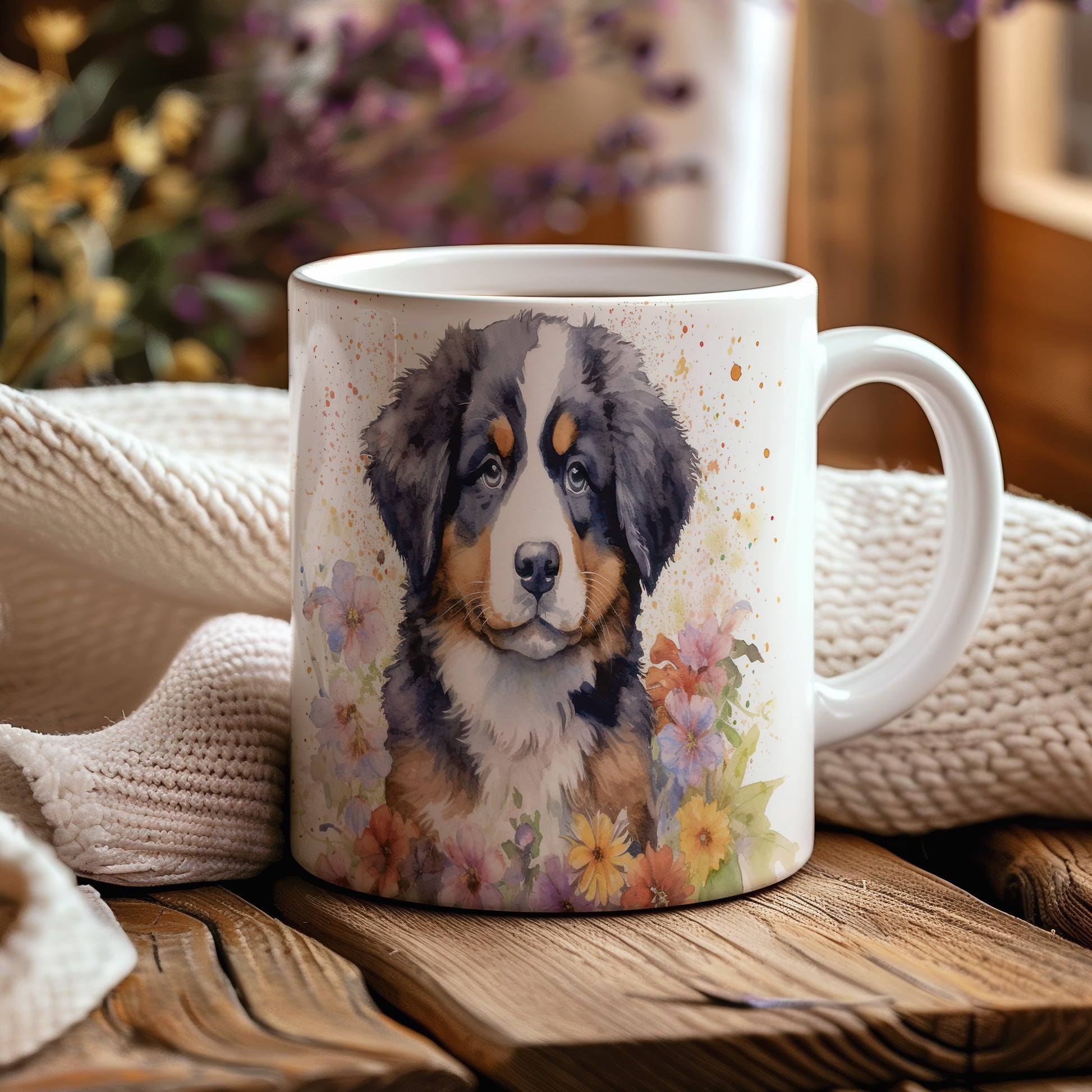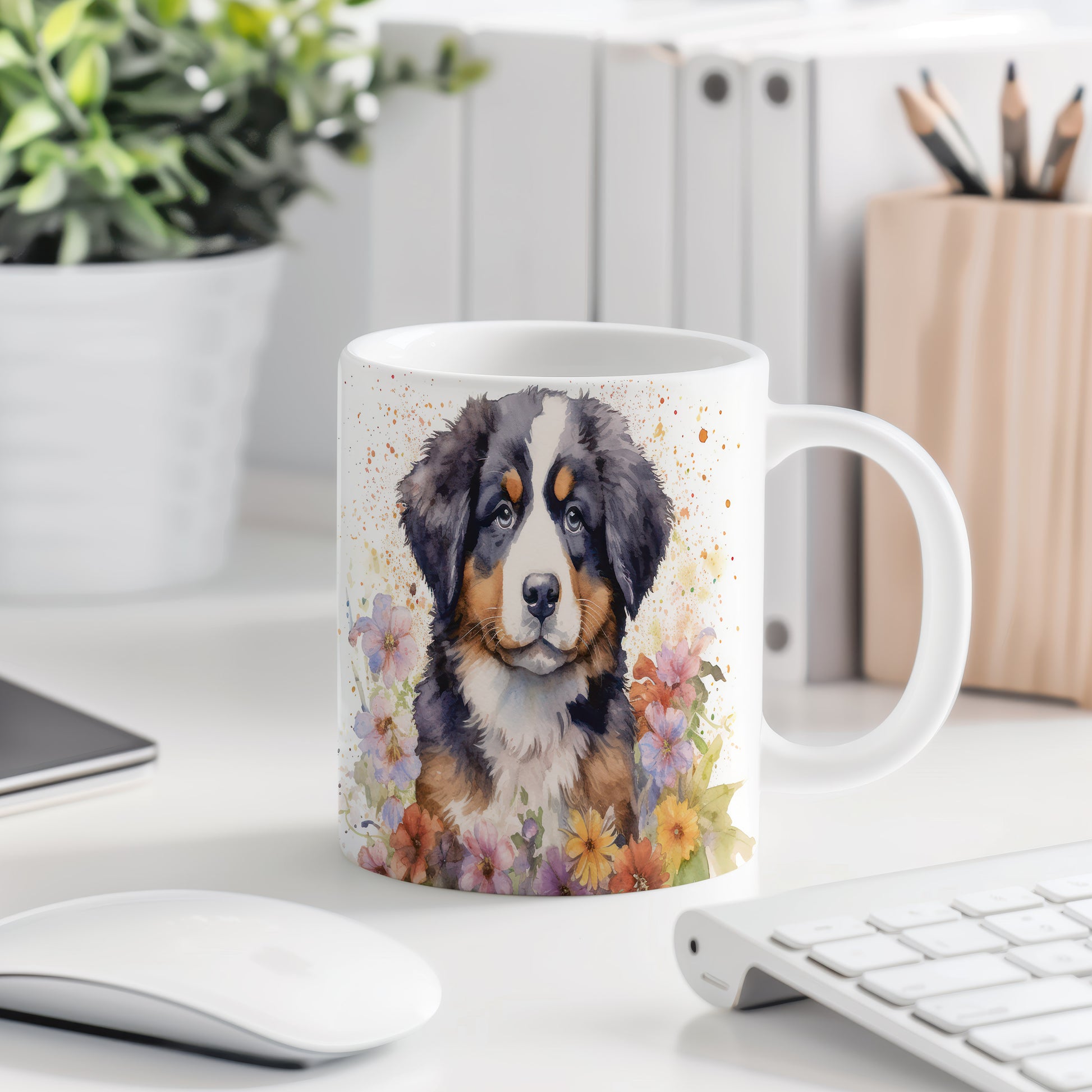 Tento hrnek s motivem bernardýna a barevných květin je skvělým doplňkem pro milovníky psů. Vhodný pro každodenní použití i jako dárek pro přátele.