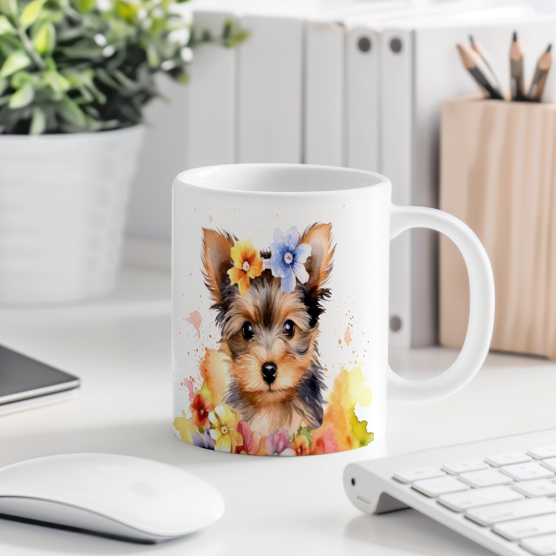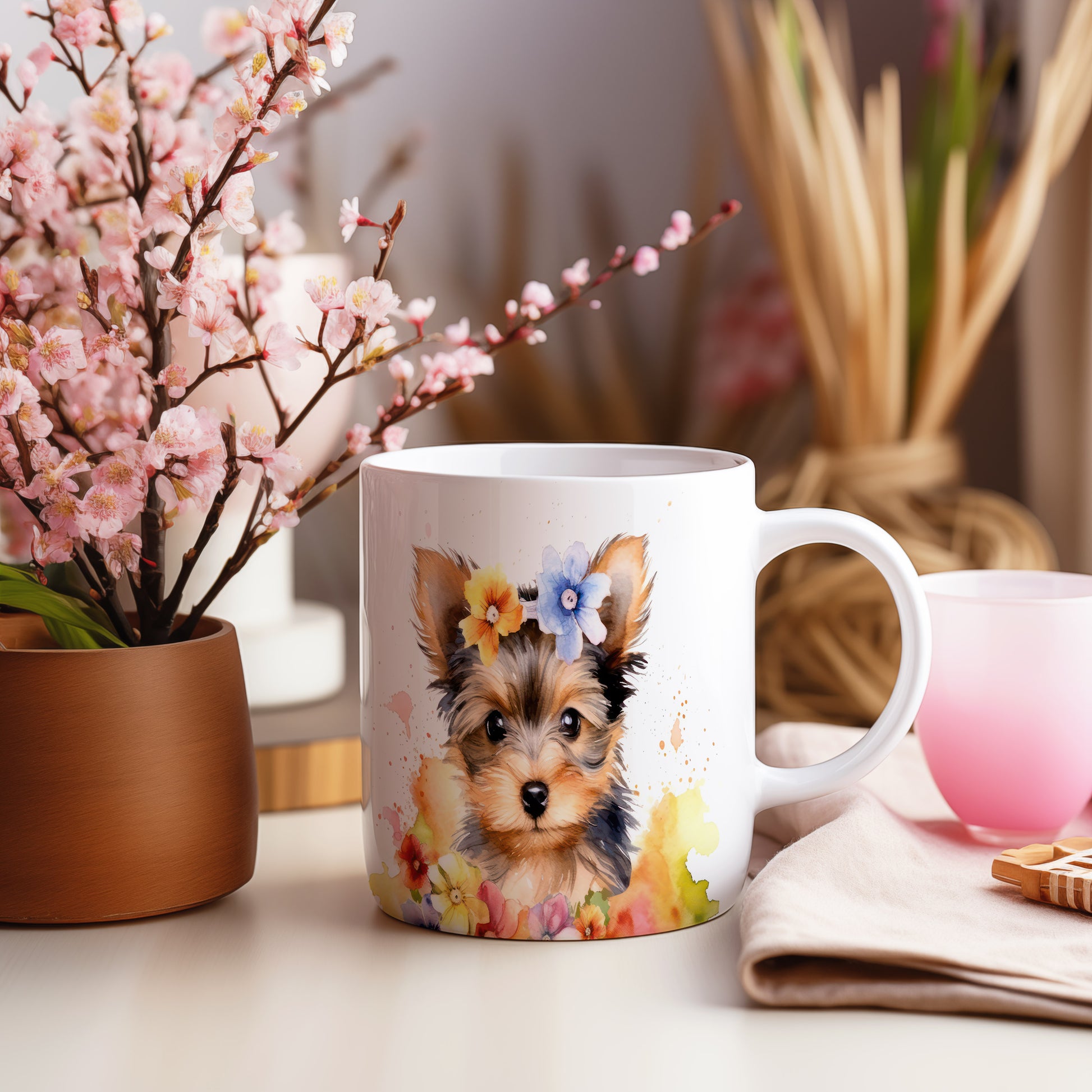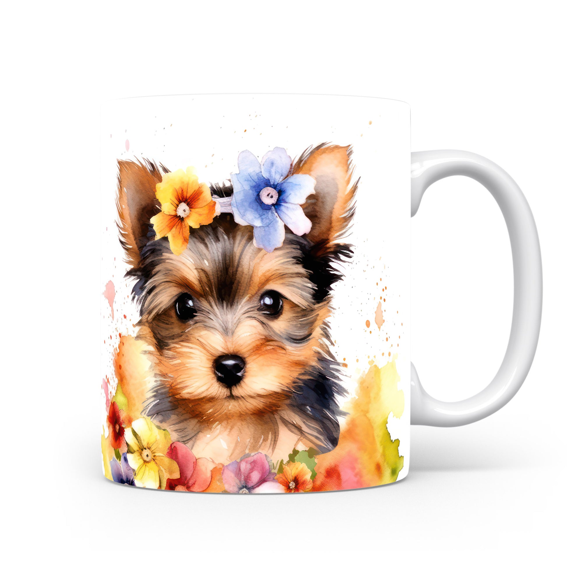 Tento hrnek s motivem roztomilého yorkshirského teriéra je ideální pro milovníky psů. Vyniká krásným květinovým designem a dodá každému okamžiku šarm.