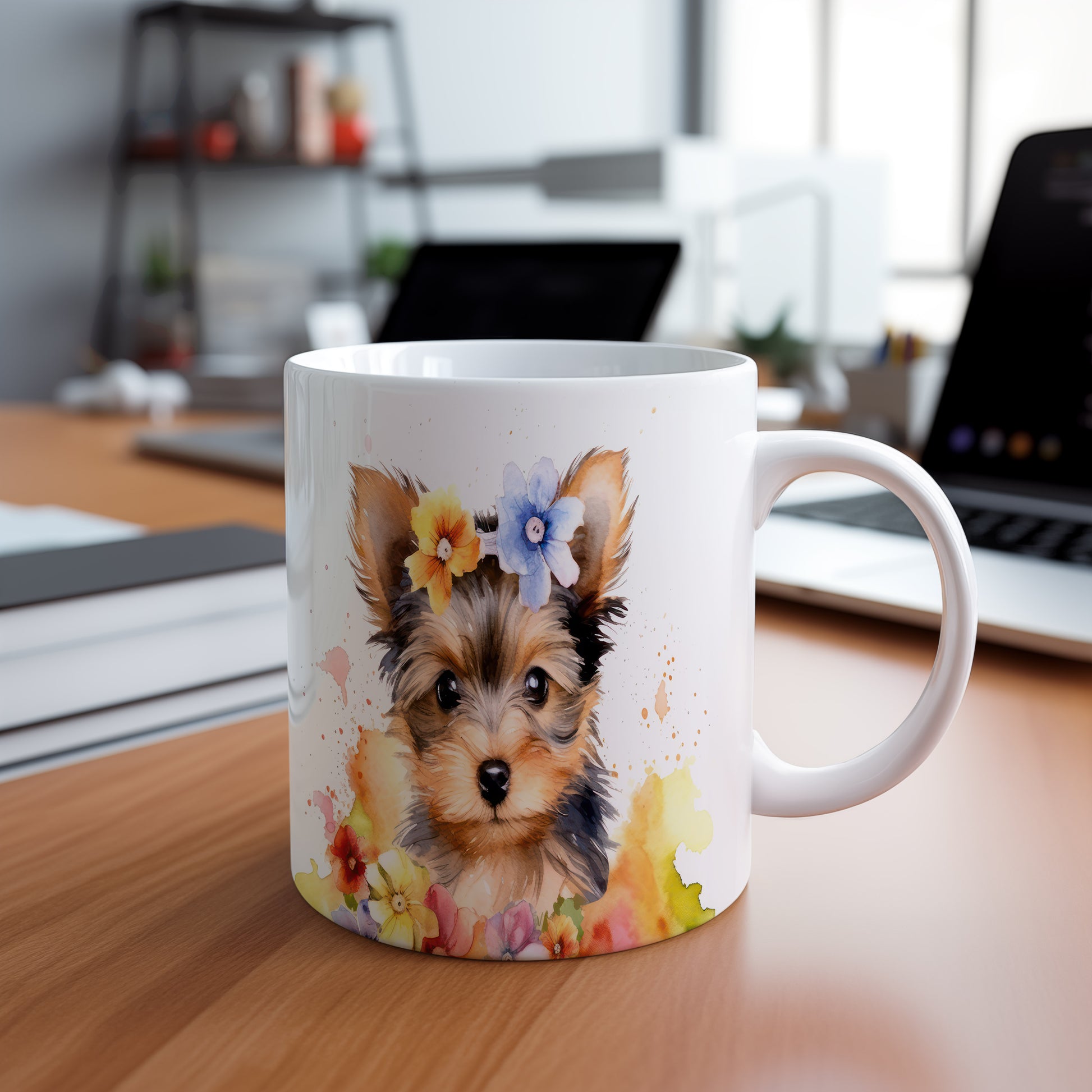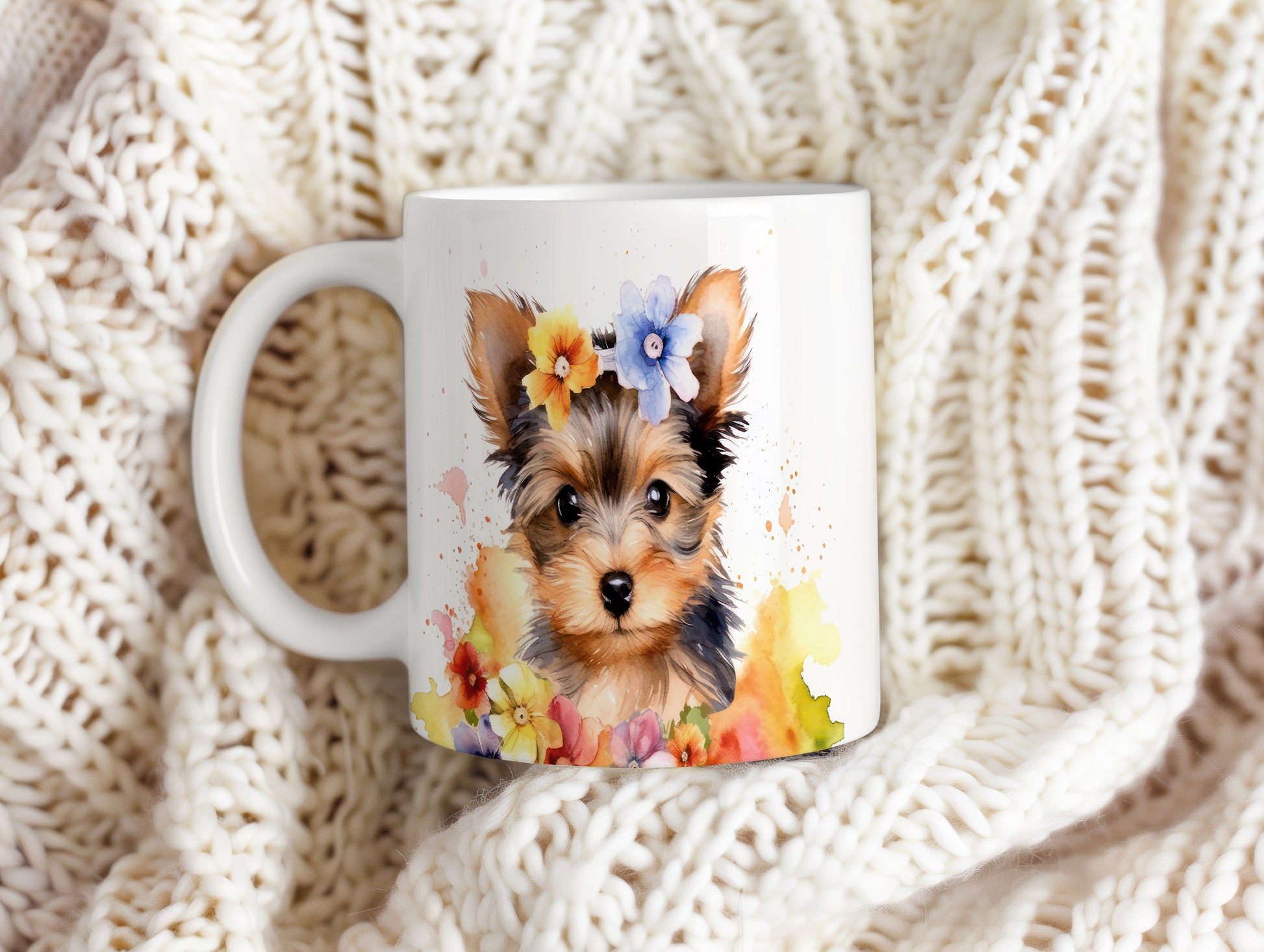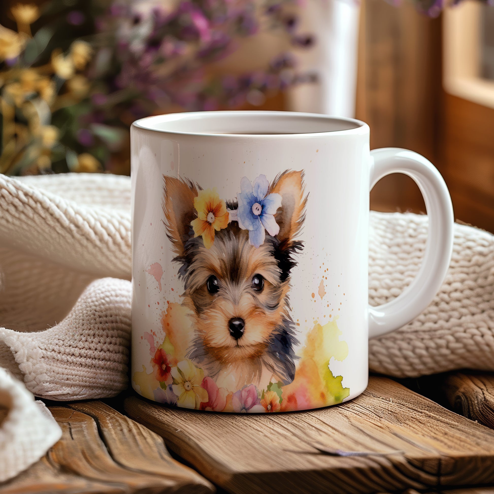 Tento hrnek s motivem roztomilého yorkshirského teriéra je ideální pro milovníky psů. Vyniká krásným květinovým designem a dodá každému okamžiku šarm.