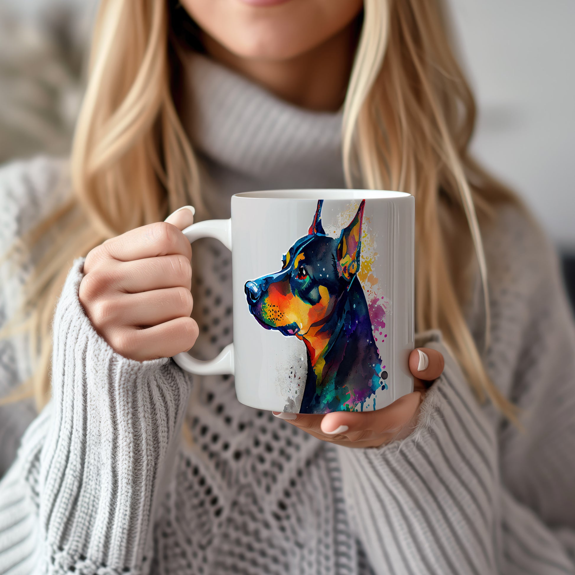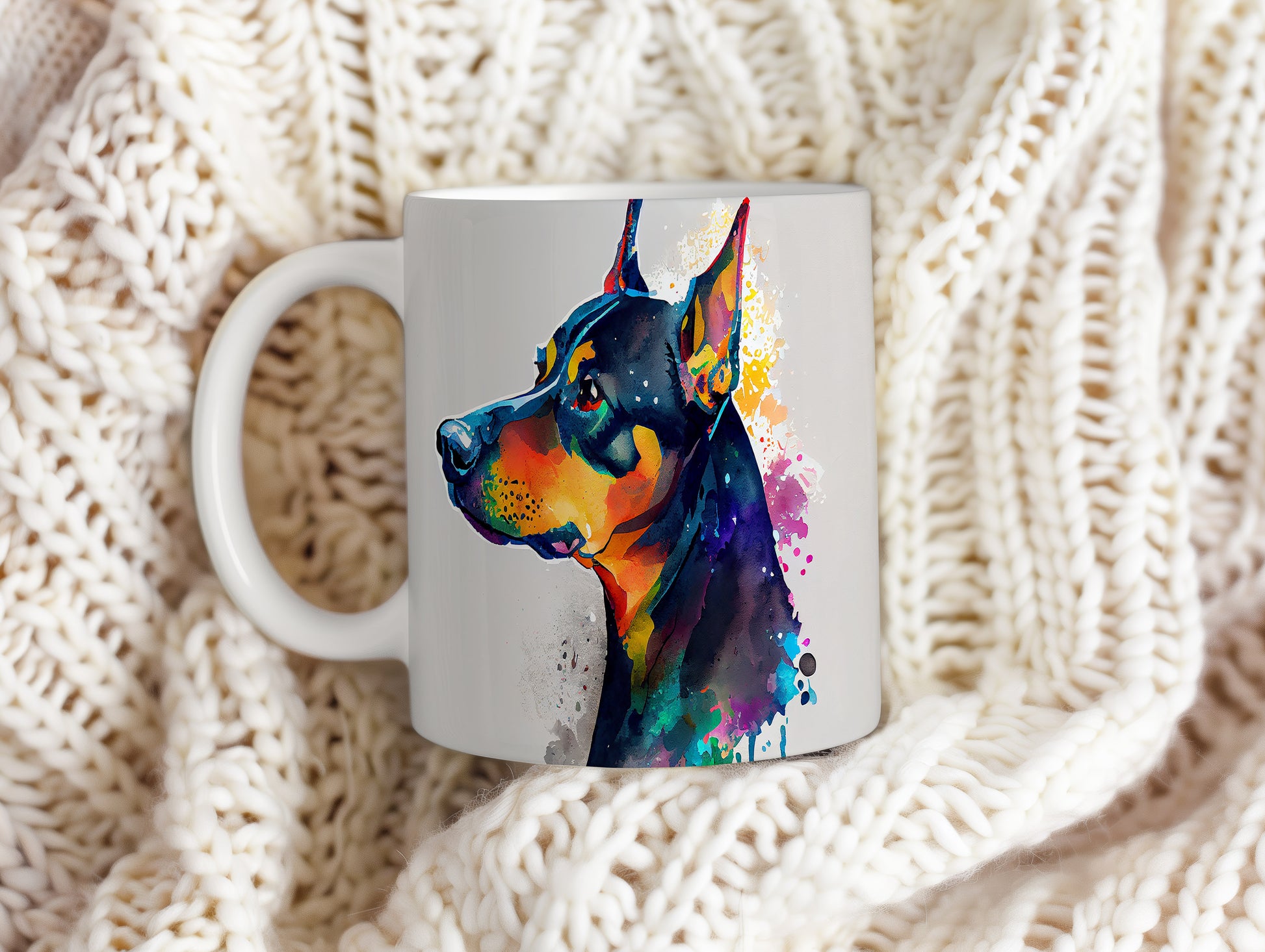 Tento hrnek s barevným motivem dobermana je ideální pro milovníky psů. Vynikající volba pro každodenní používání nebo jako dárek pro přátele.