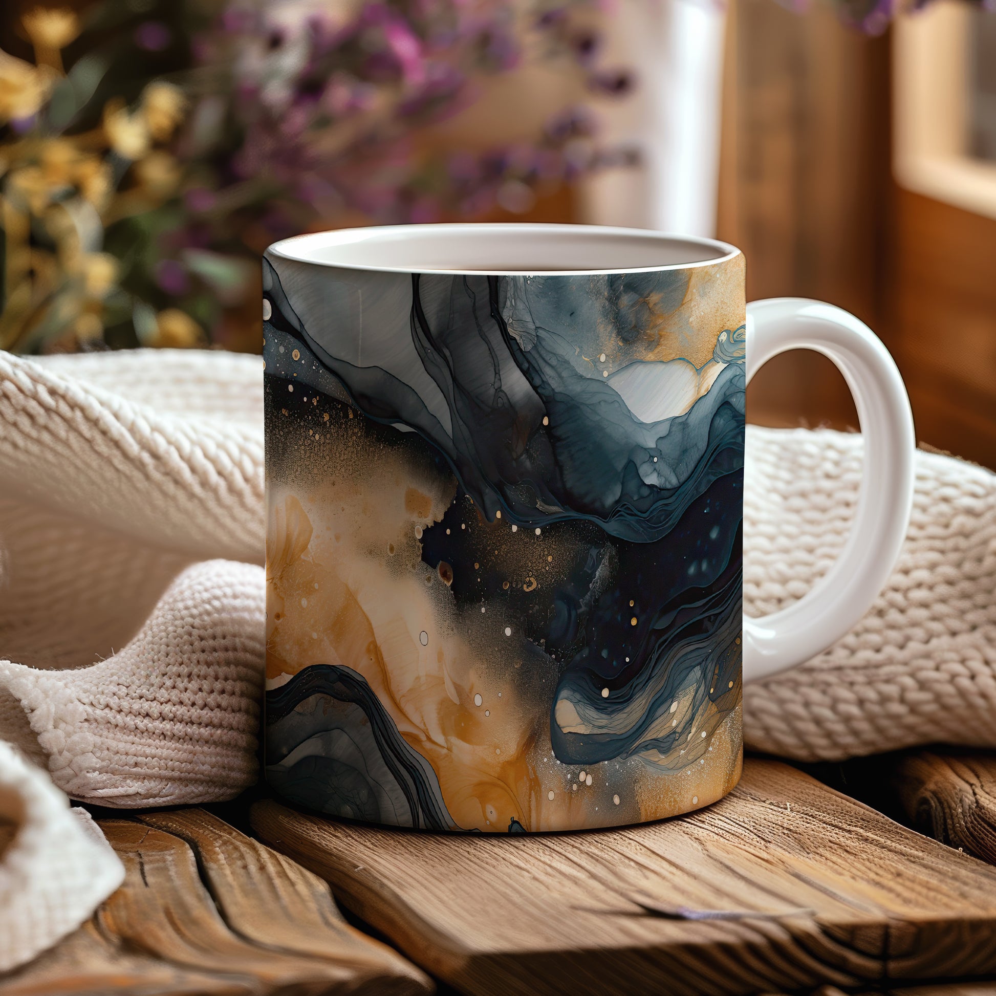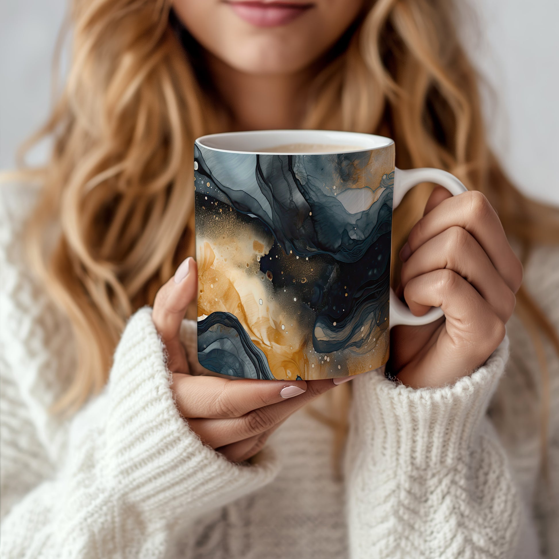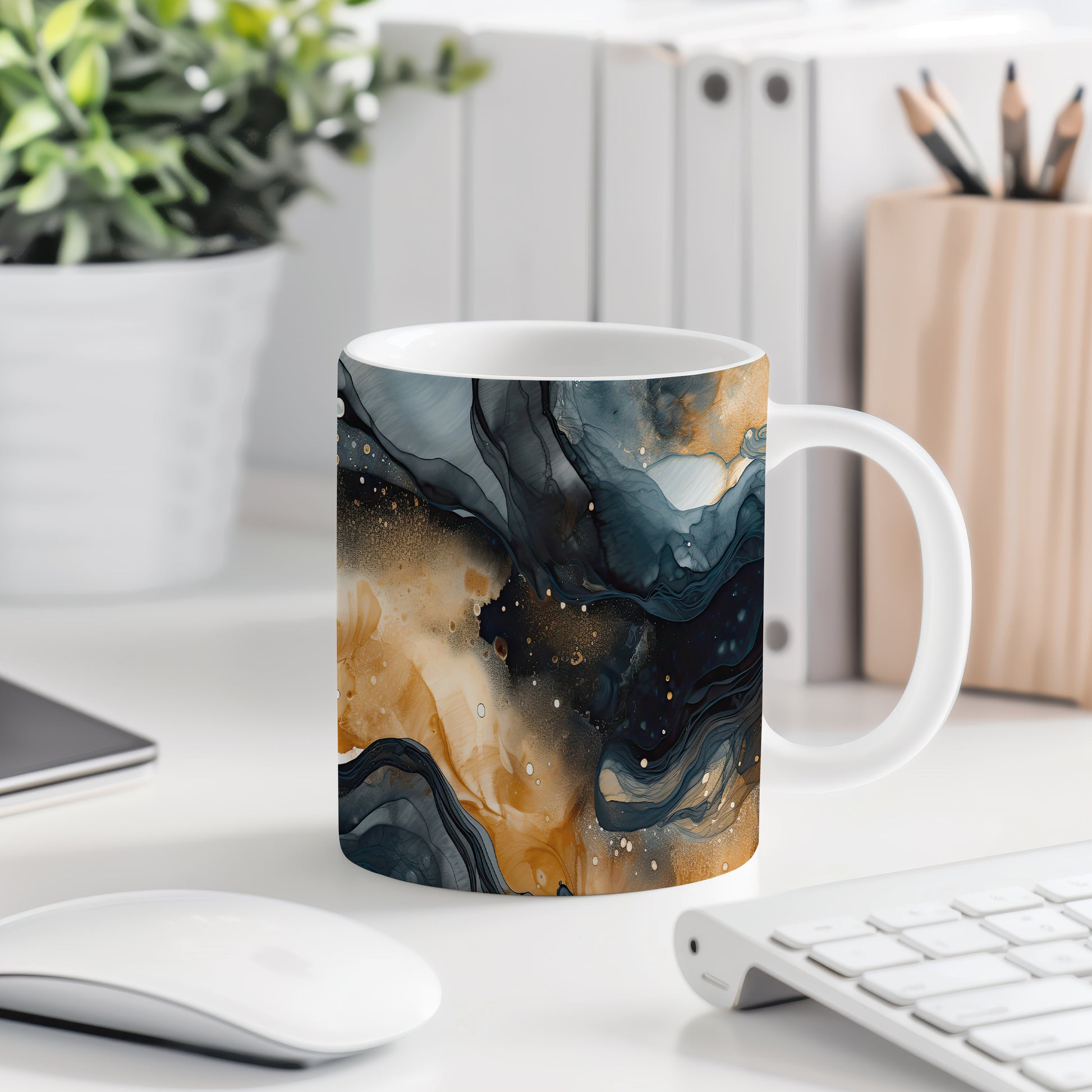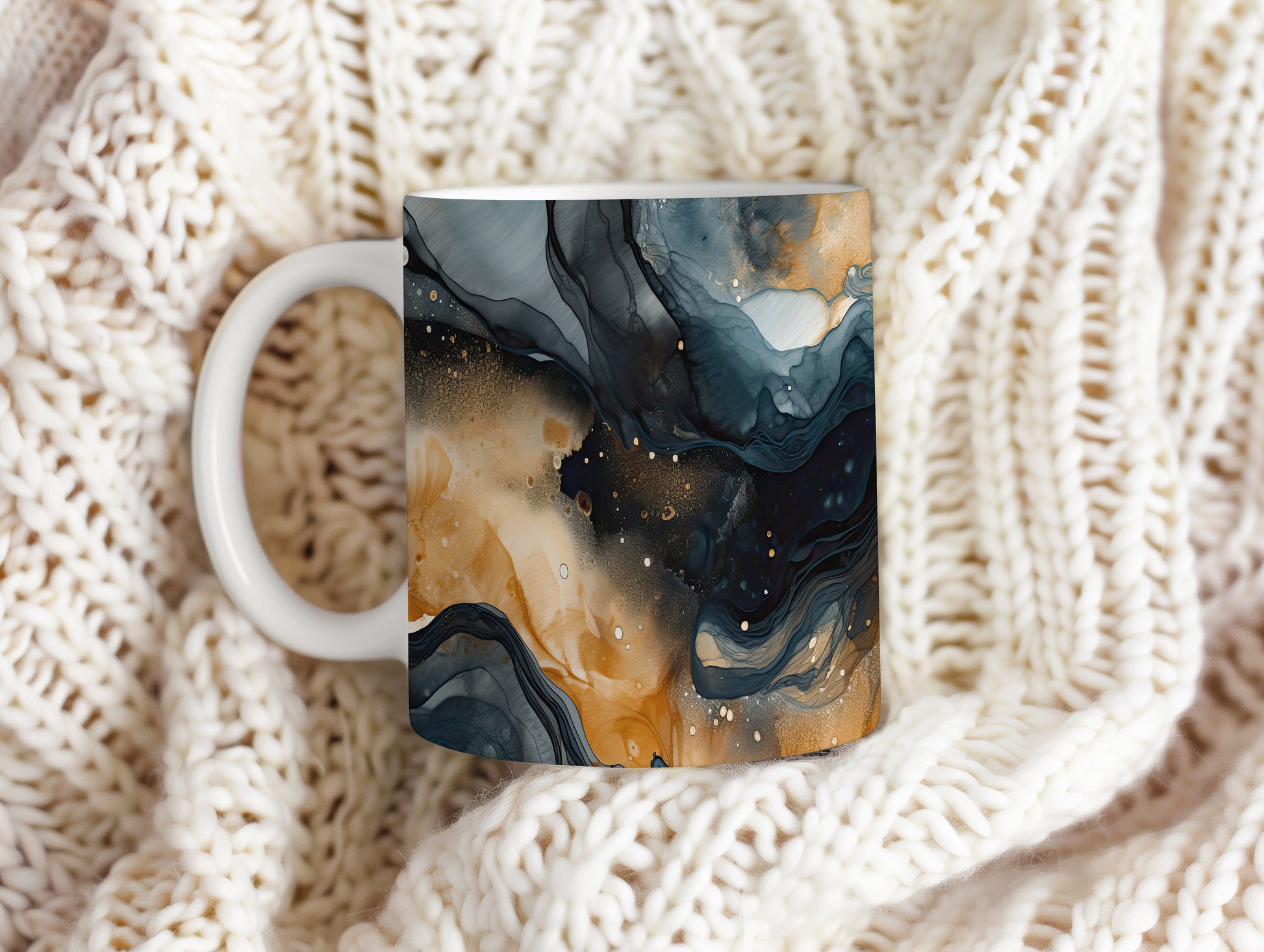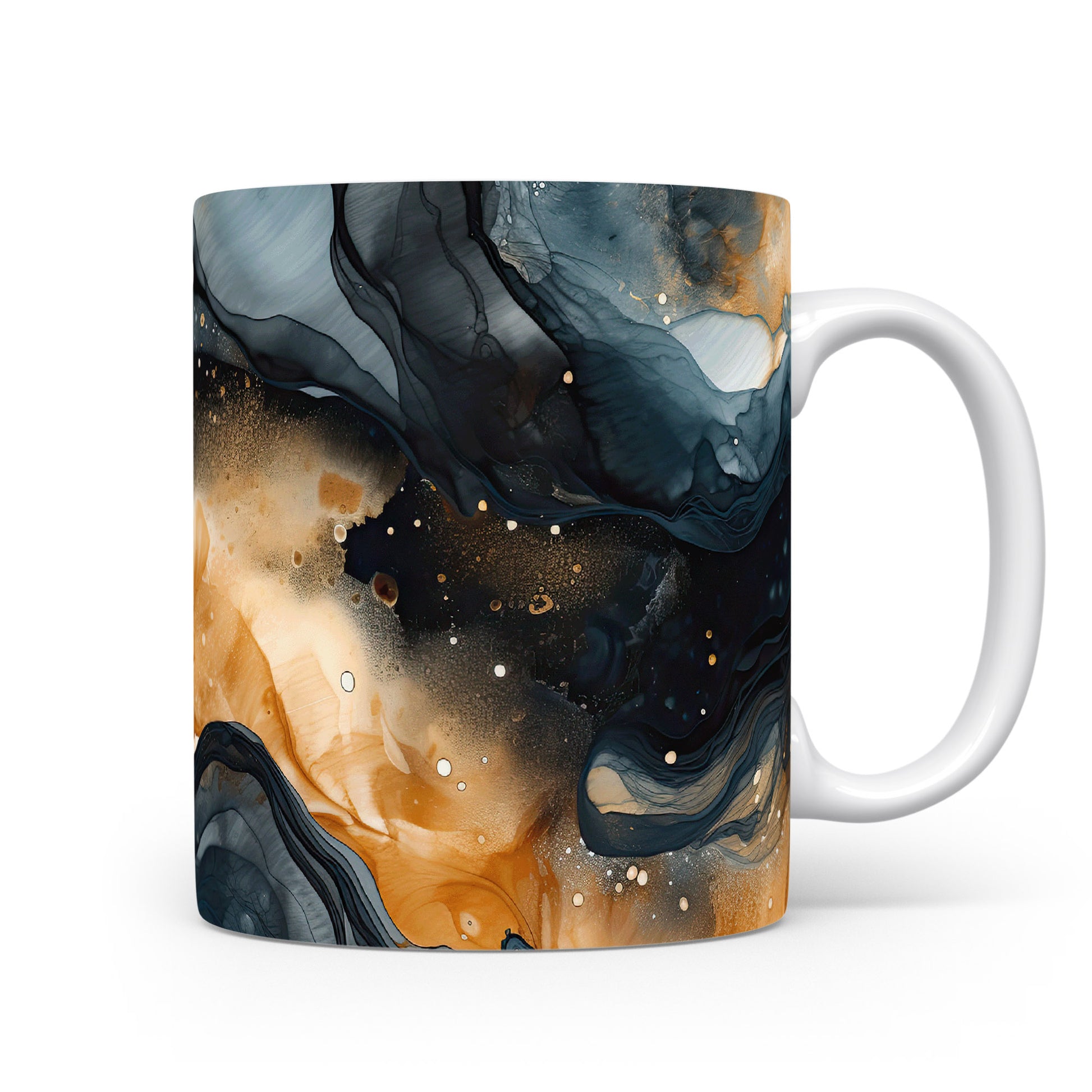 Stylový hrnek s abstraktním vzorem v modro-oranžových tónech