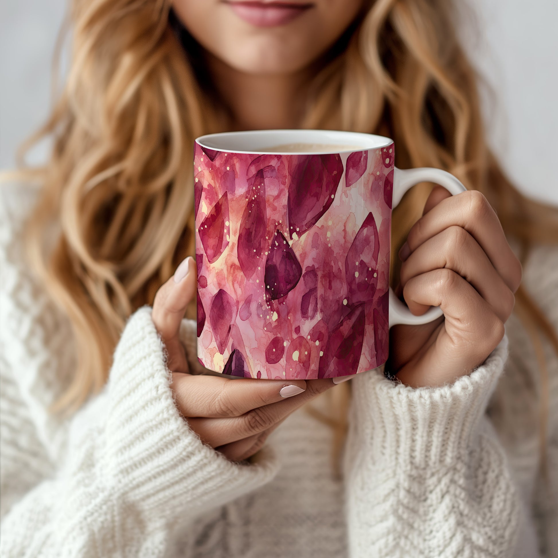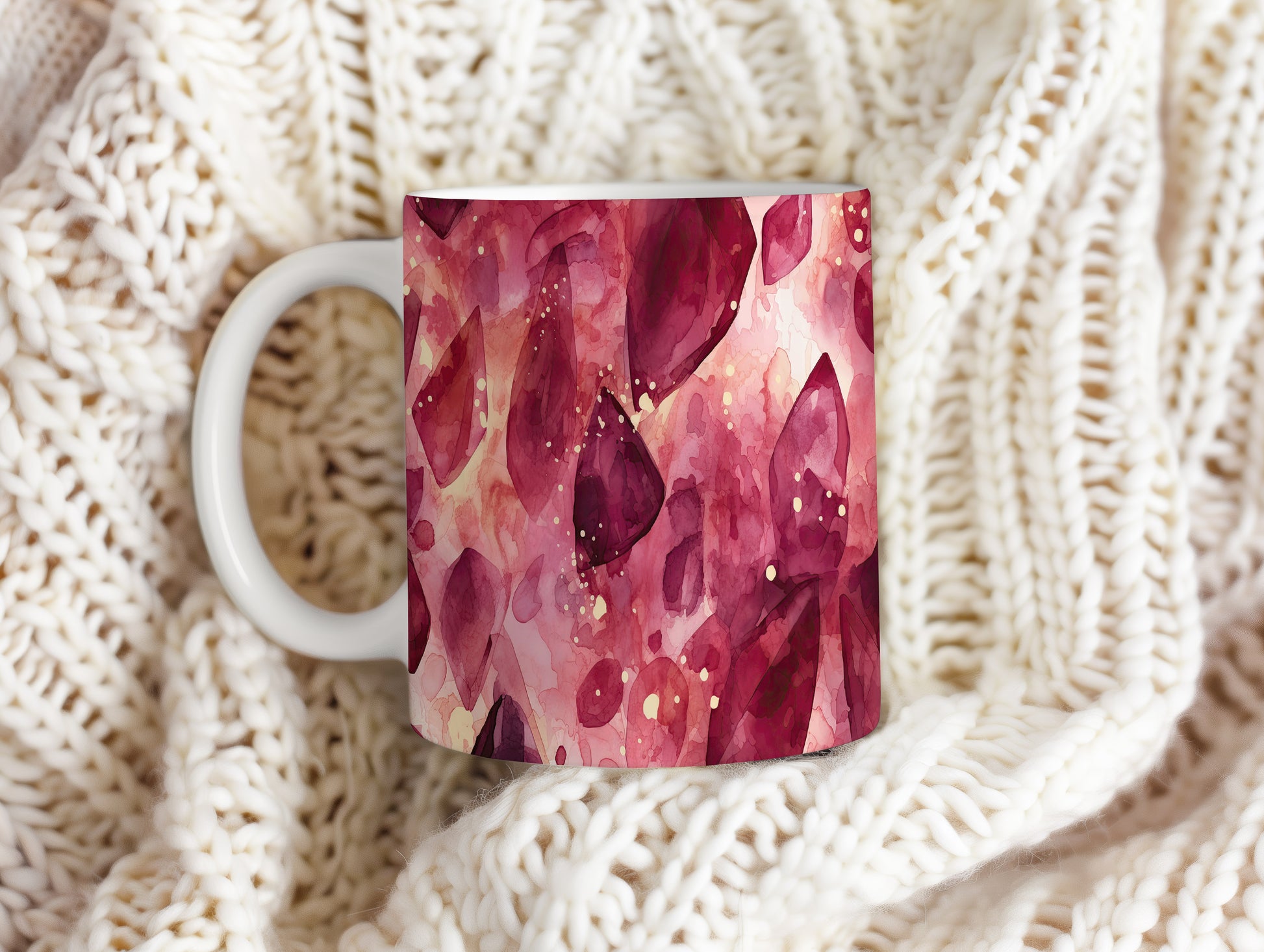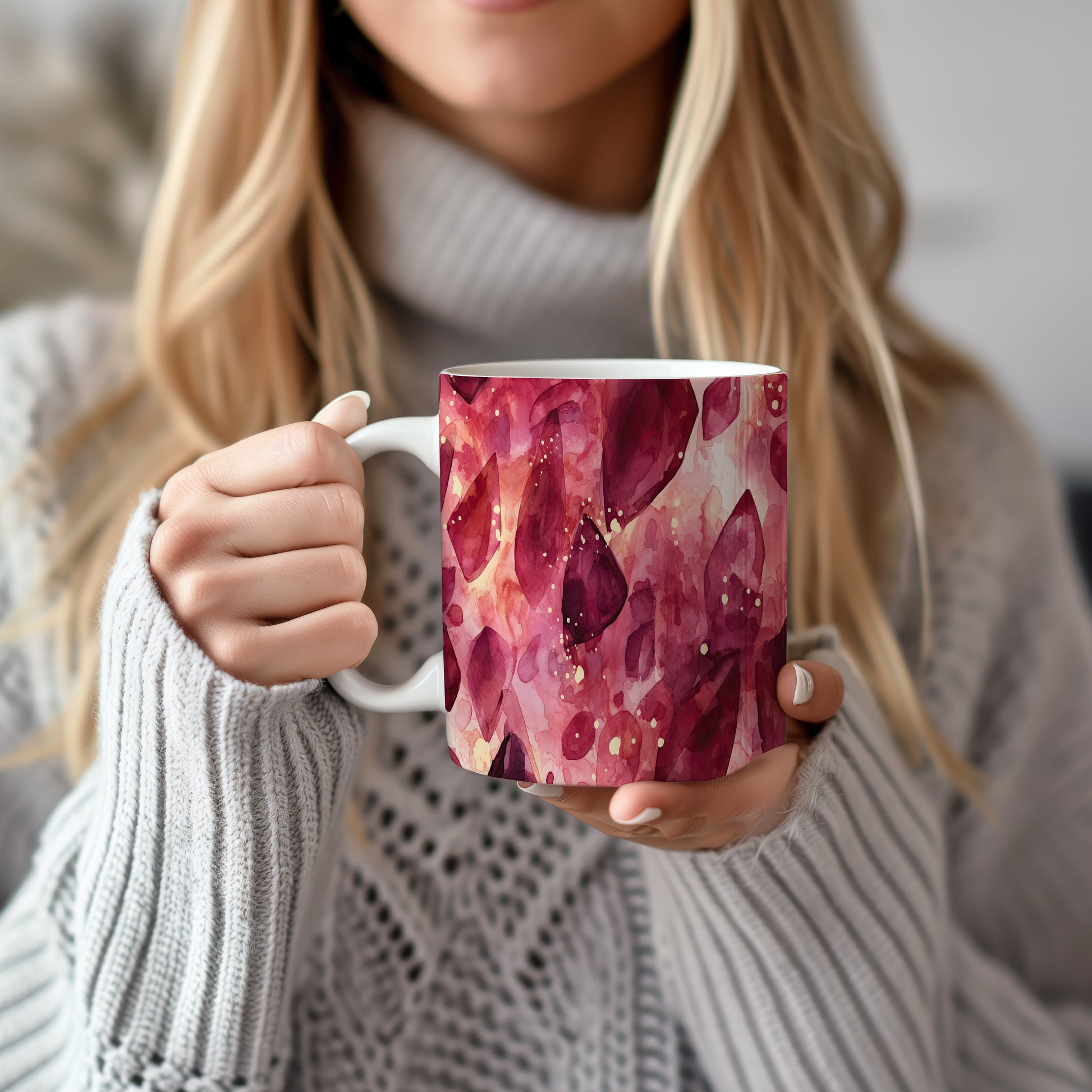 Elegantní hrnek s abstraktním motivem v odstínech červené
