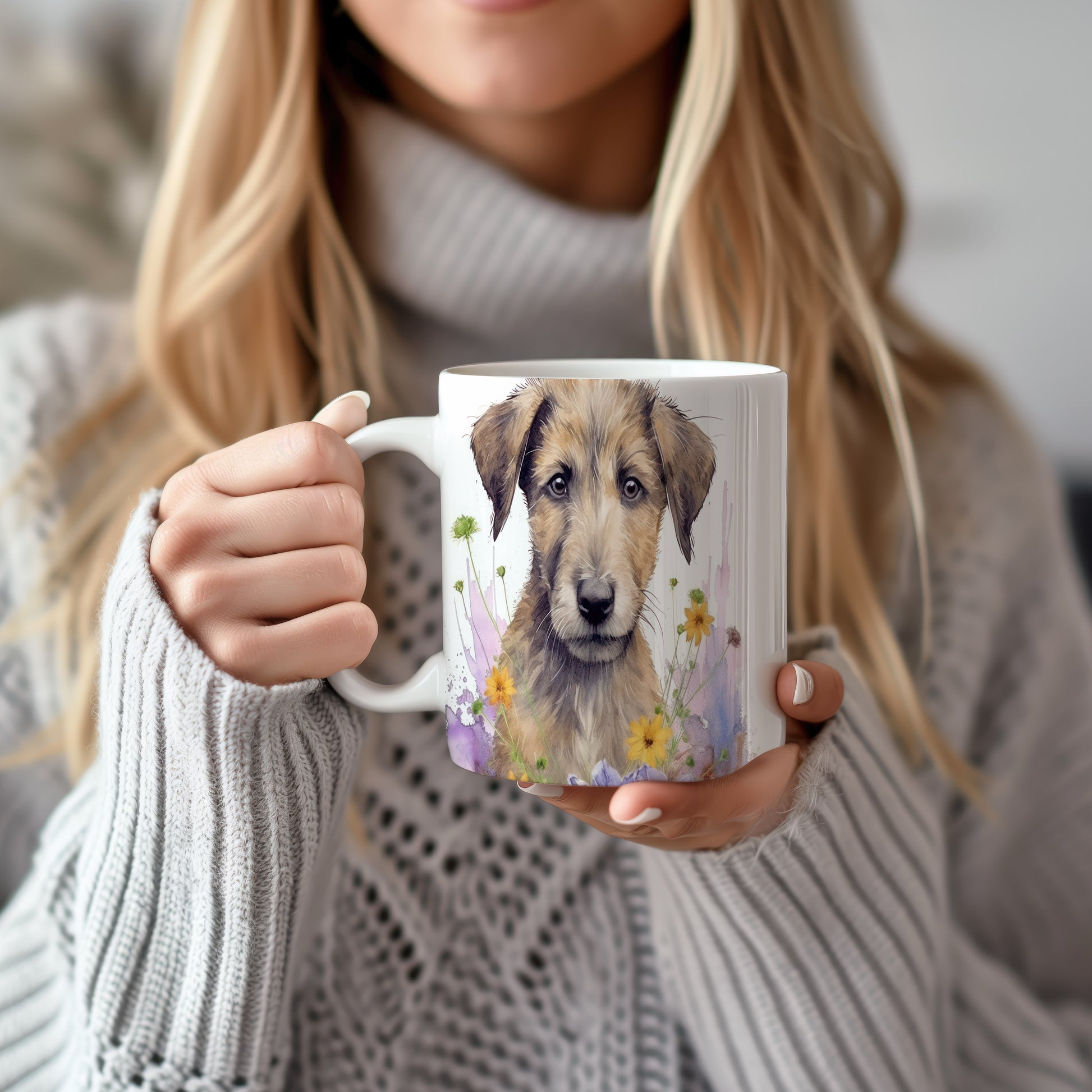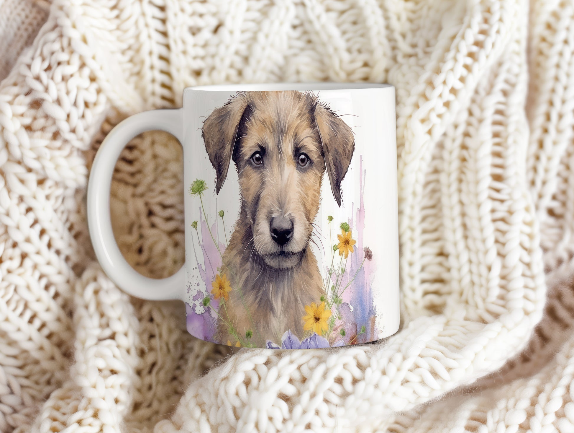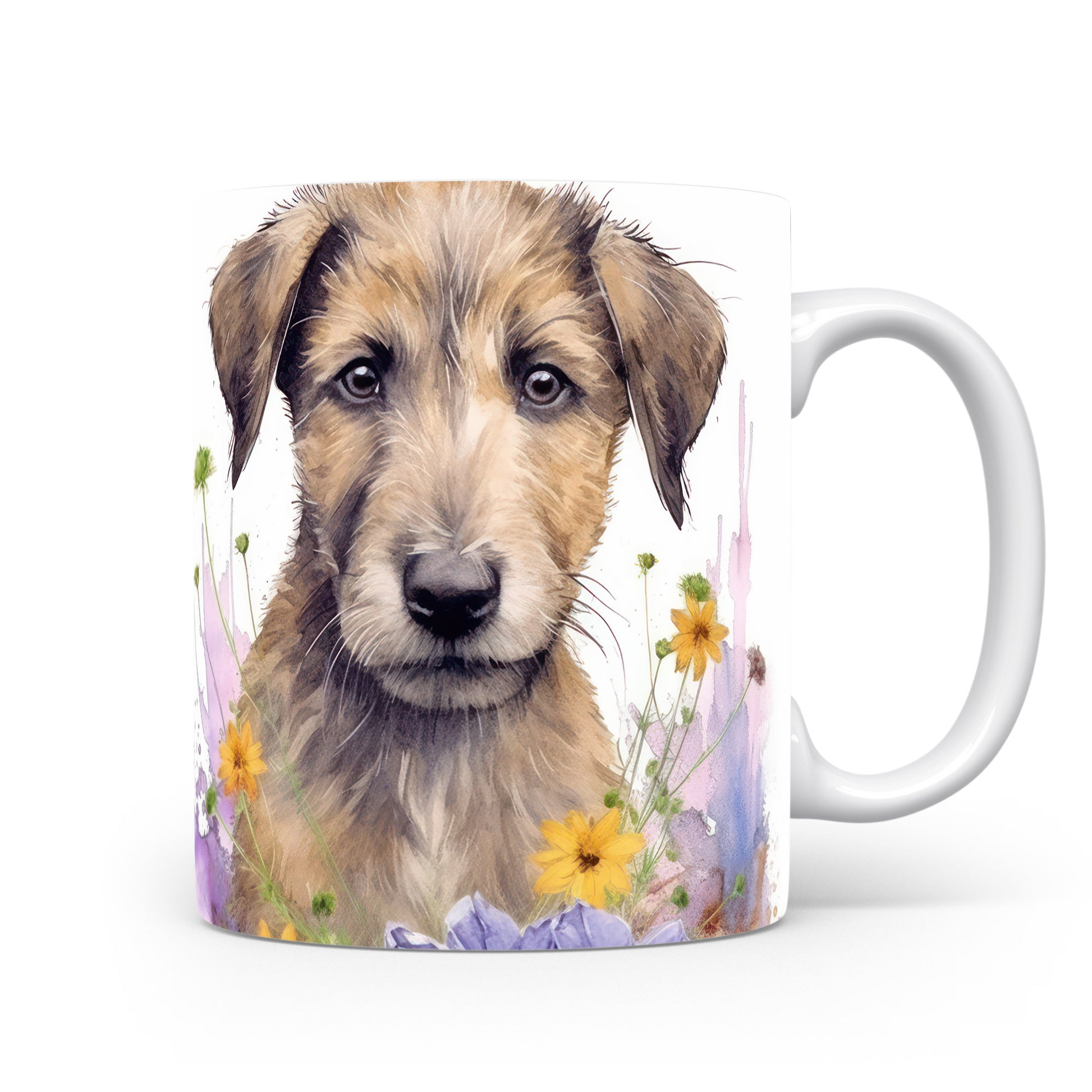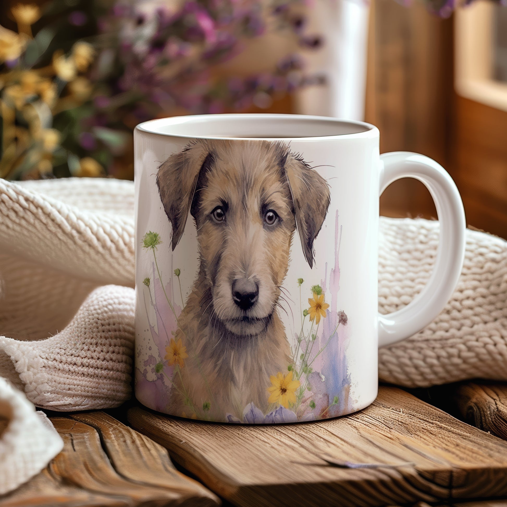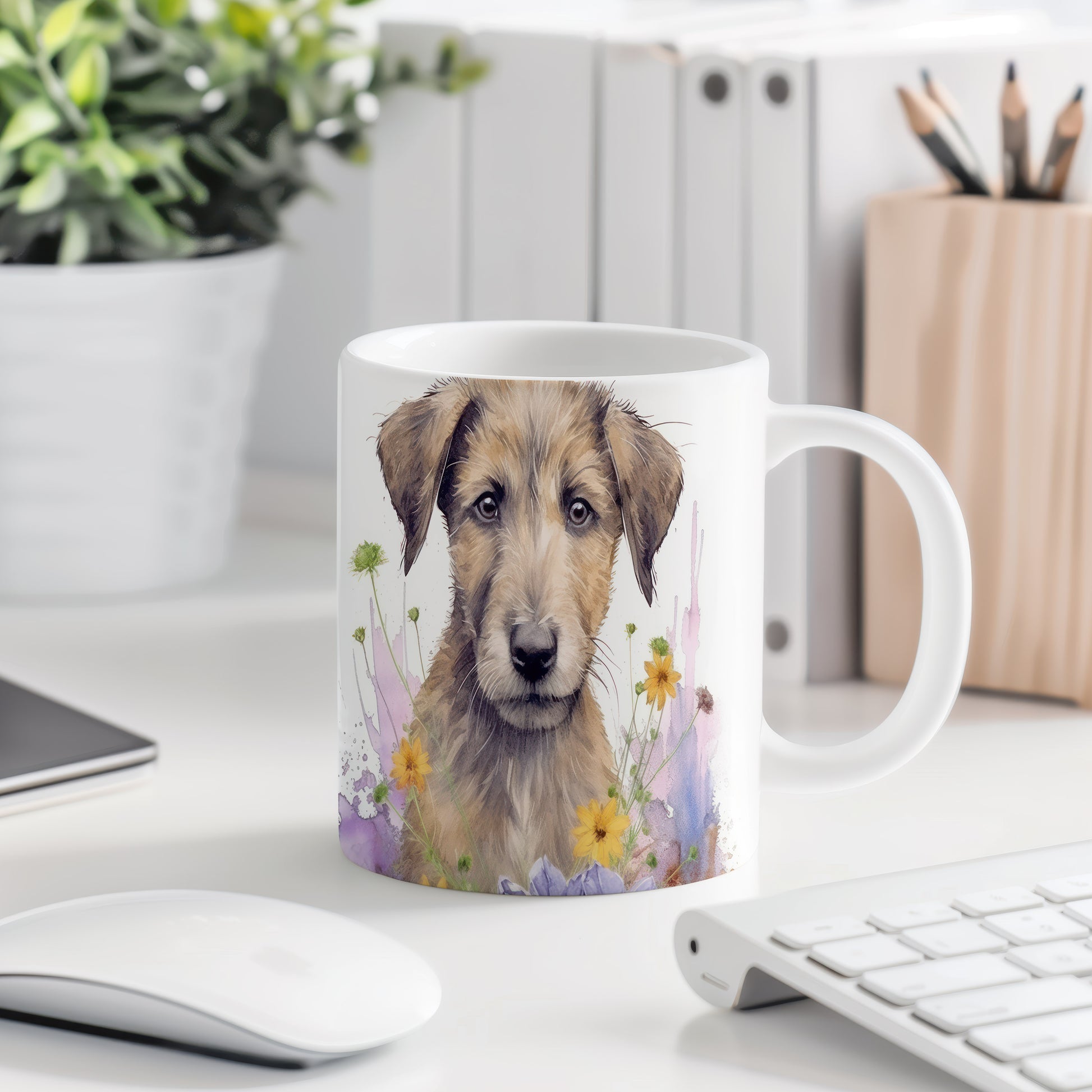 Krásný hrnek s ilustrací roztomilého štěňátka obklopeného květinami. Ideální dárek pro milovníky psů a přírody.