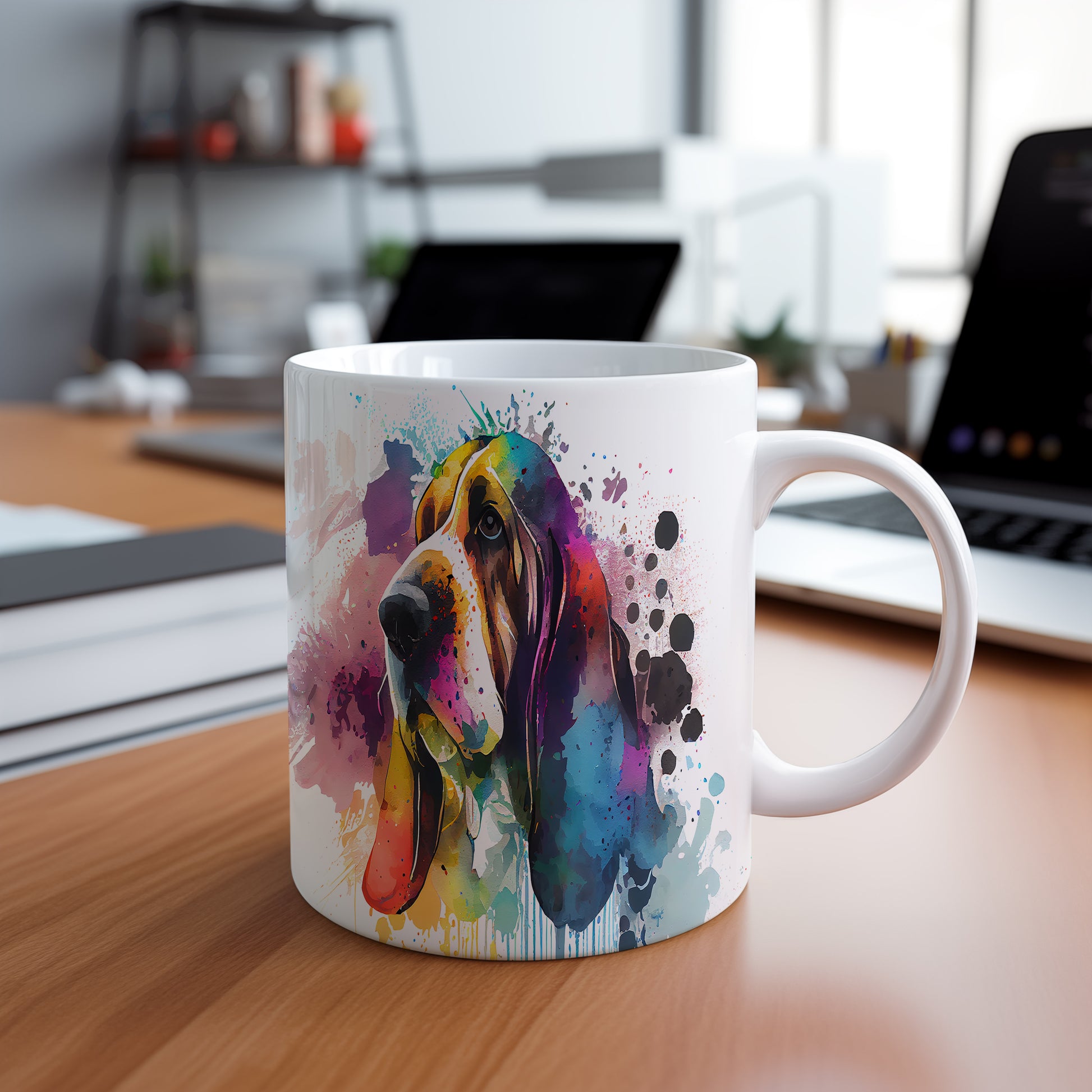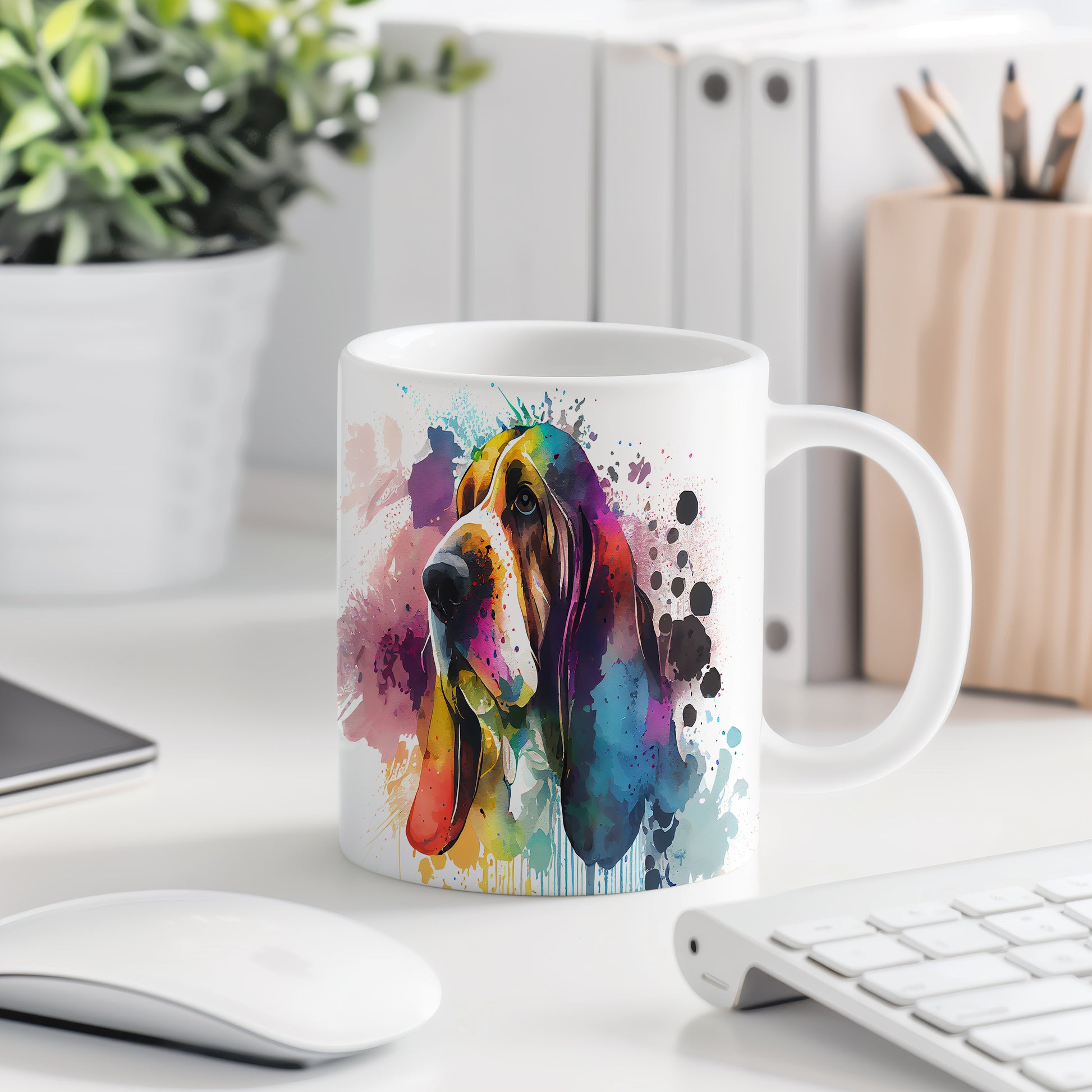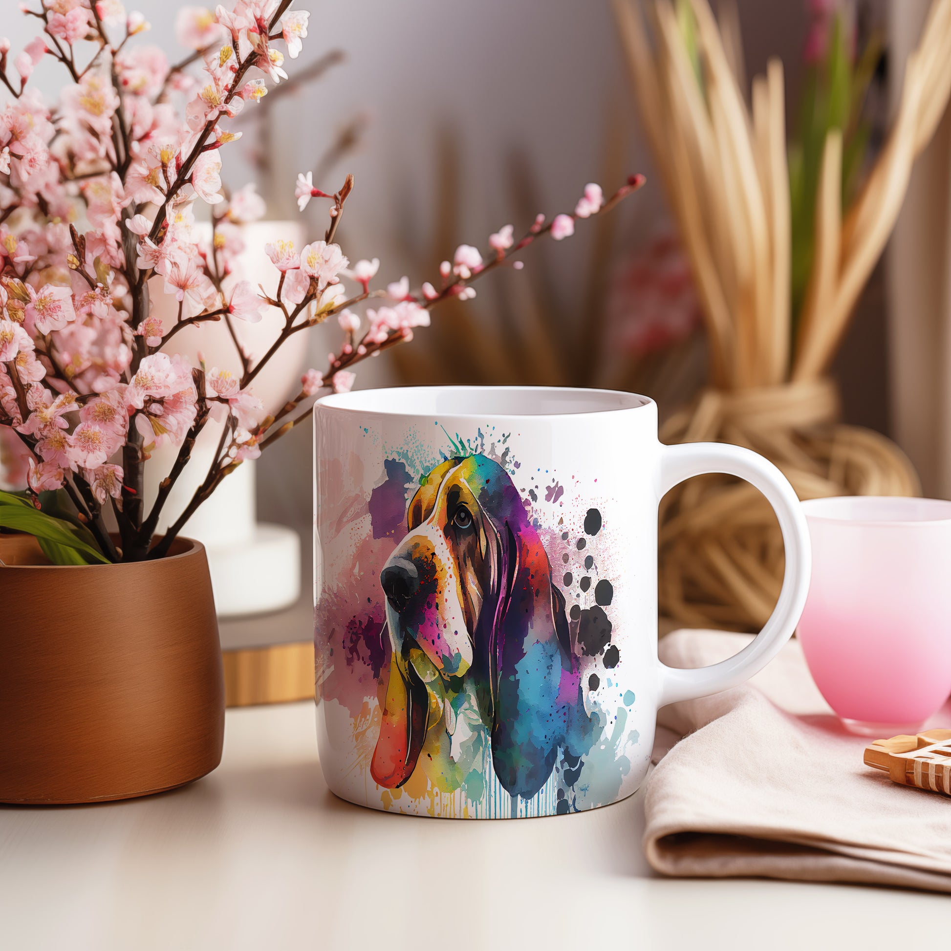 Tento hrnek s originálním barevným designem baseta je ideální pro každého milovníka psů. Perfektní na kávu nebo čaj, přidá každému dni špetku radosti.