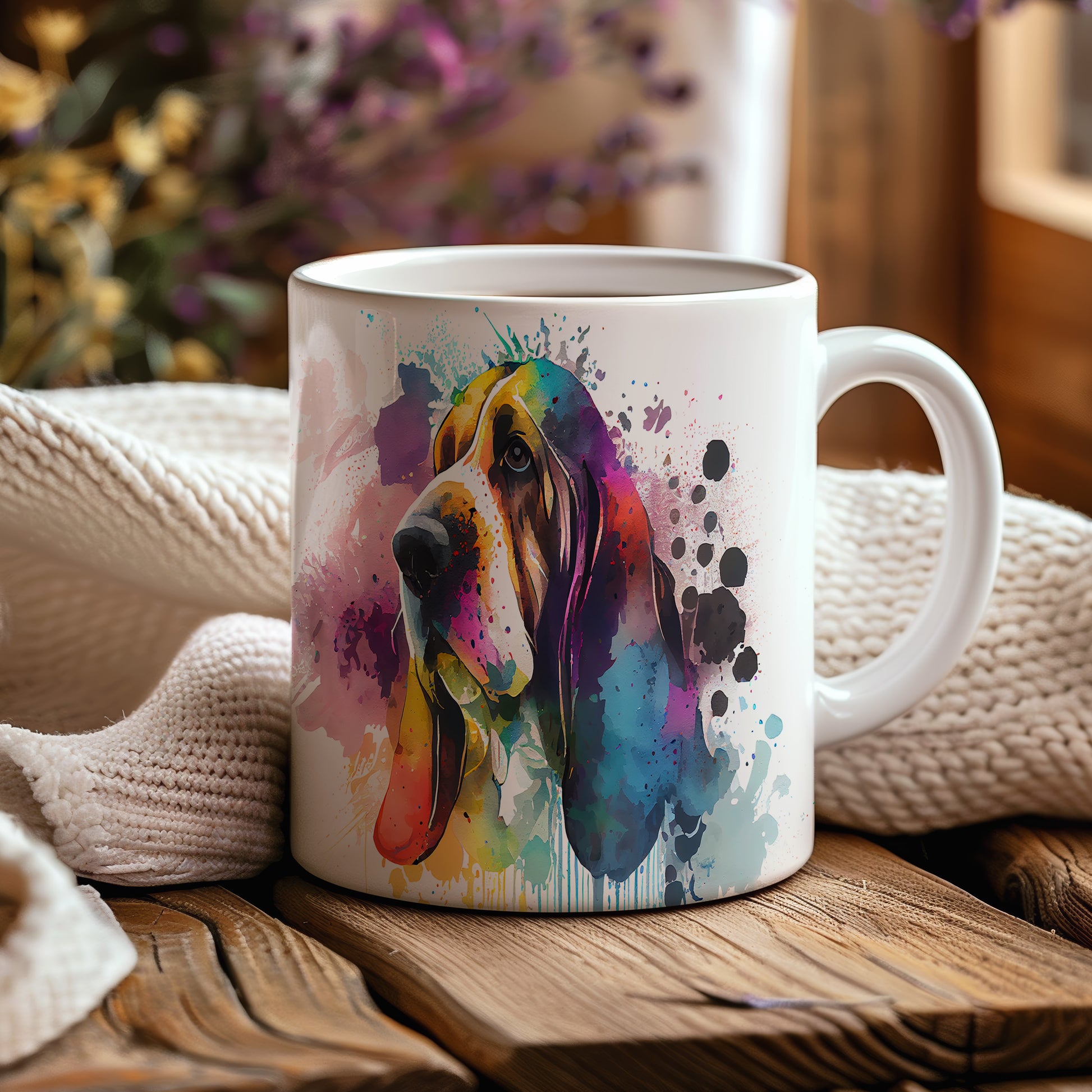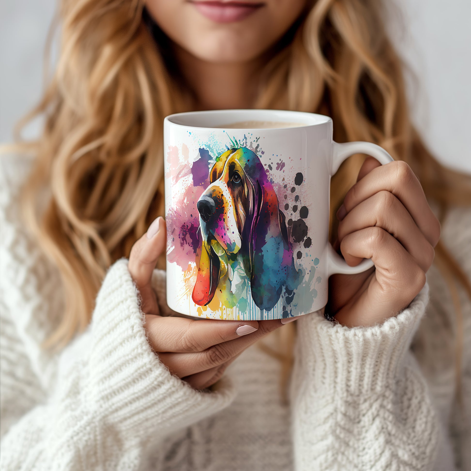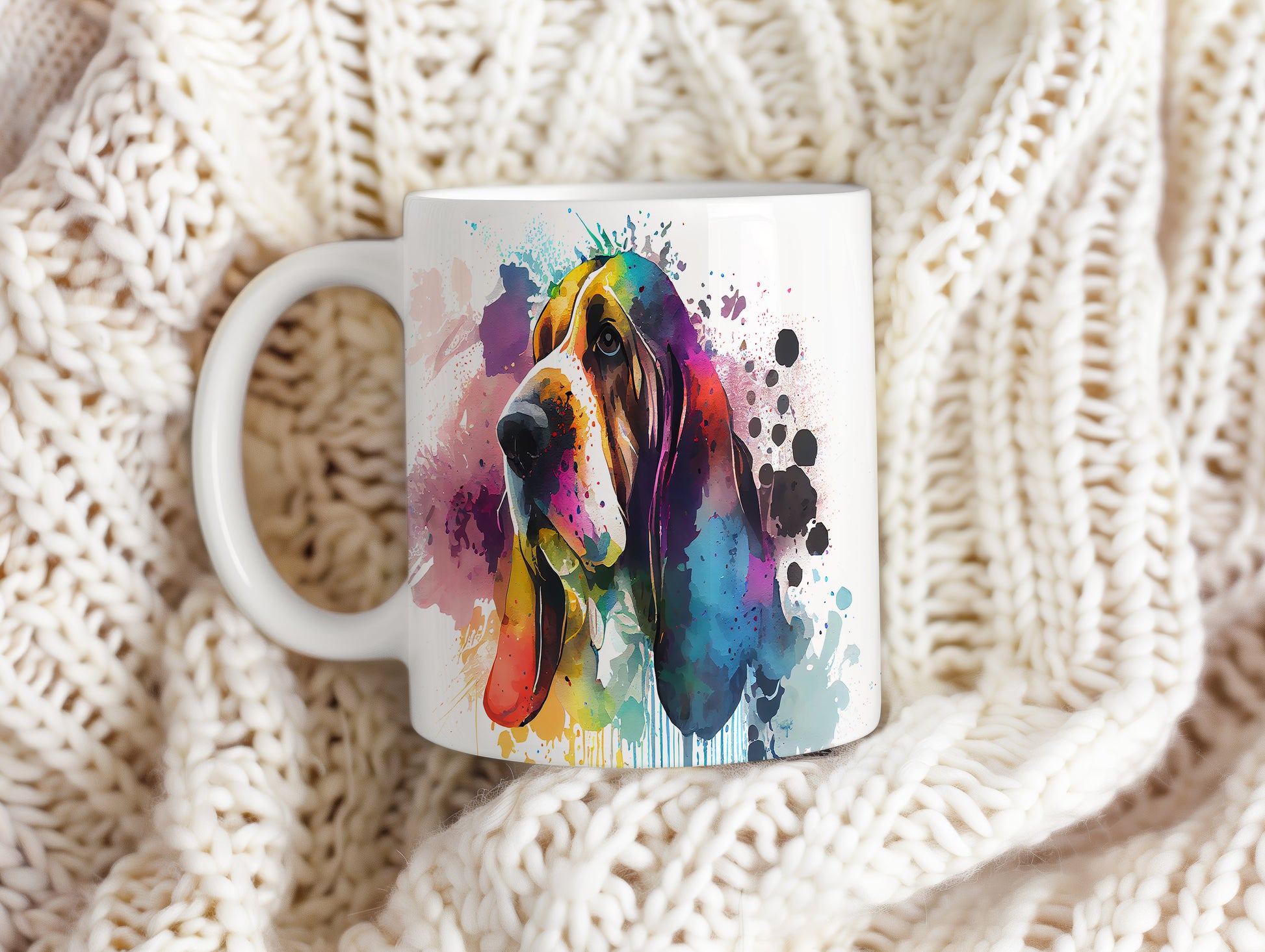 Tento hrnek s originálním barevným designem baseta je ideální pro každého milovníka psů. Perfektní na kávu nebo čaj, přidá každému dni špetku radosti.