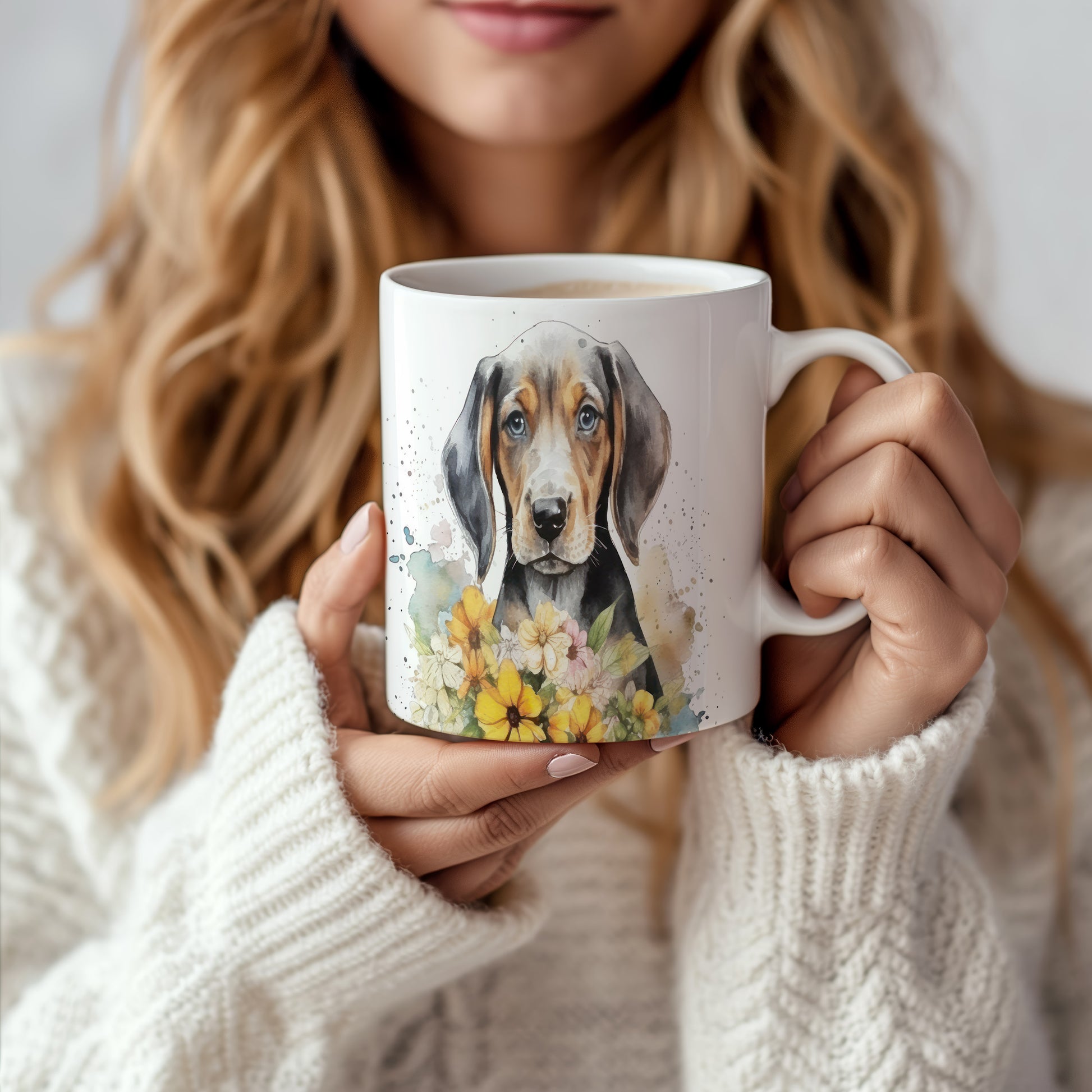 Tento hrnek s roztomilým beagle štěnětem a barevnými květinami je ideální pro milovníky psů. Přineste si kávu nebo čaj v stylovém a veselém designu, který potěší každého dne.