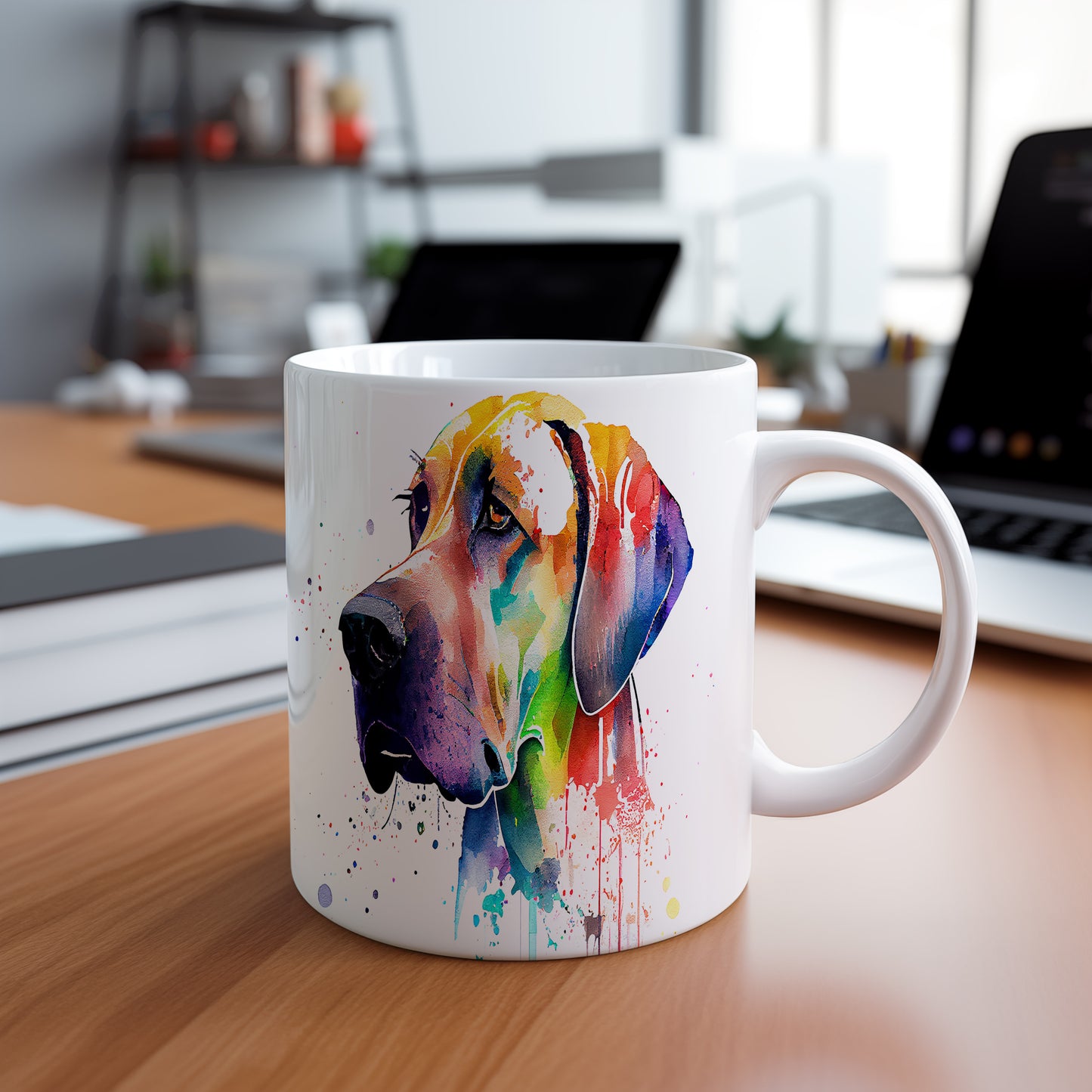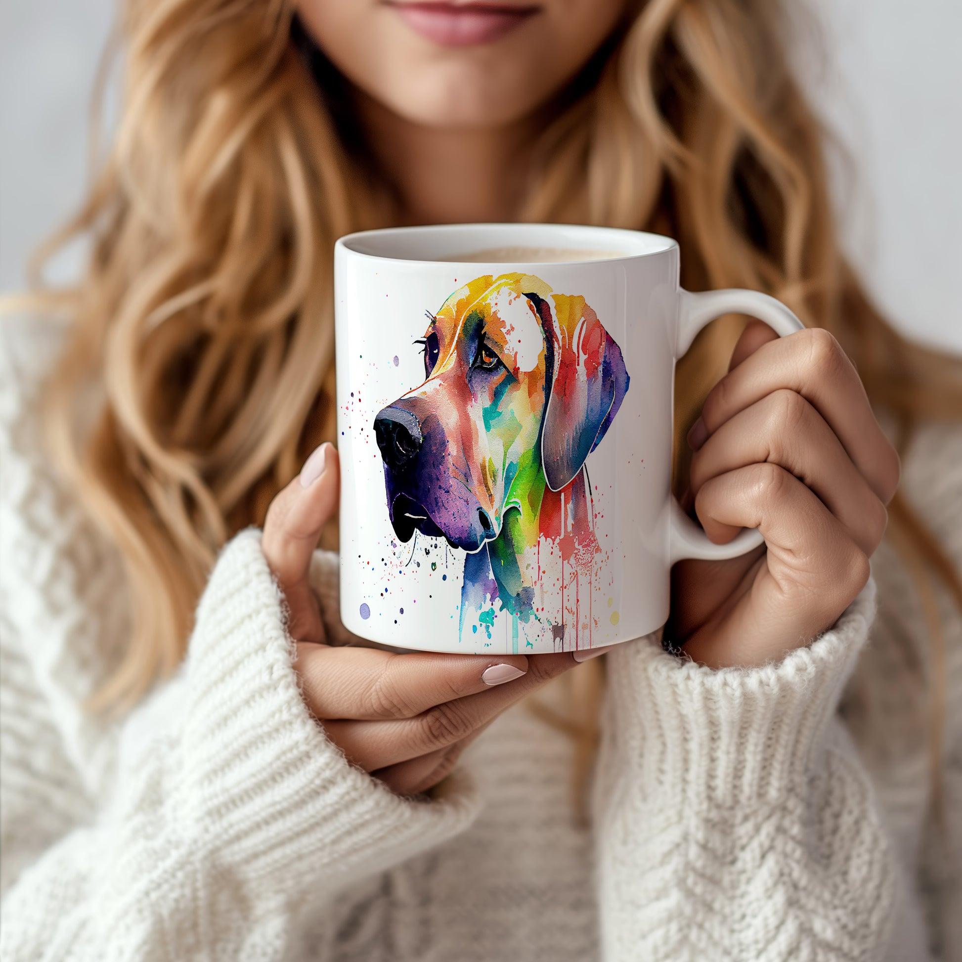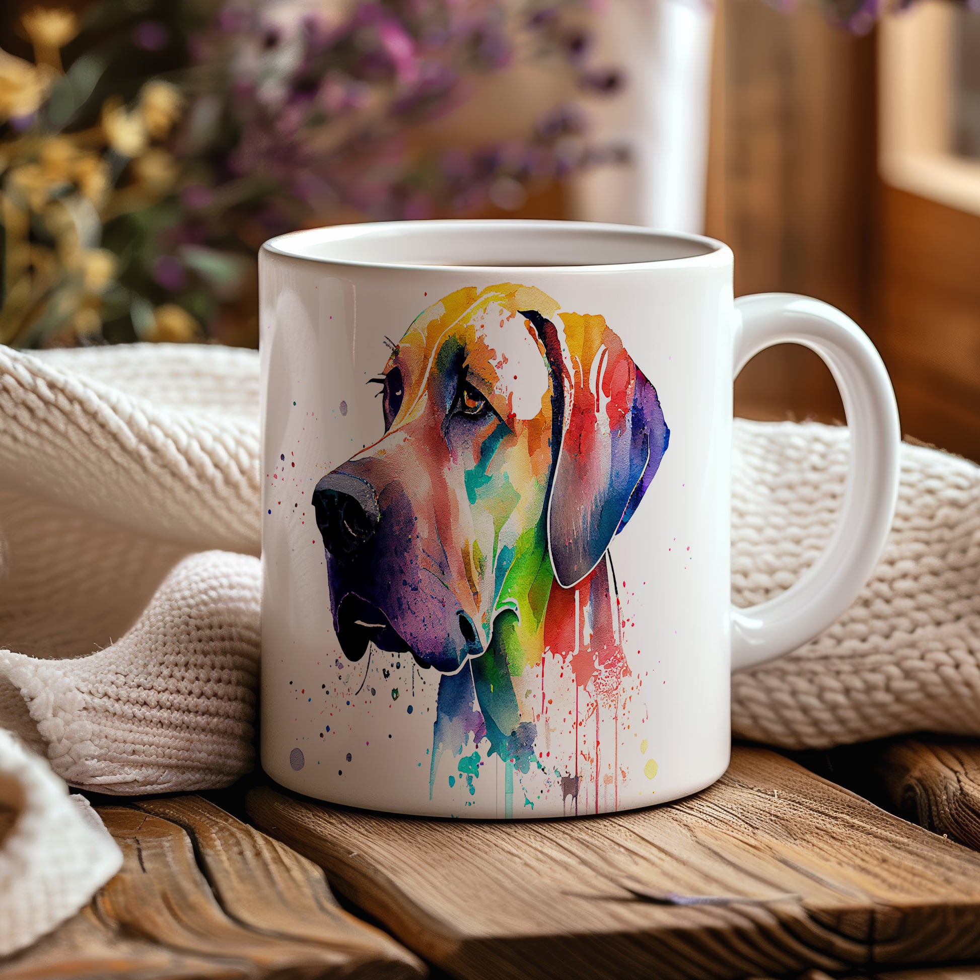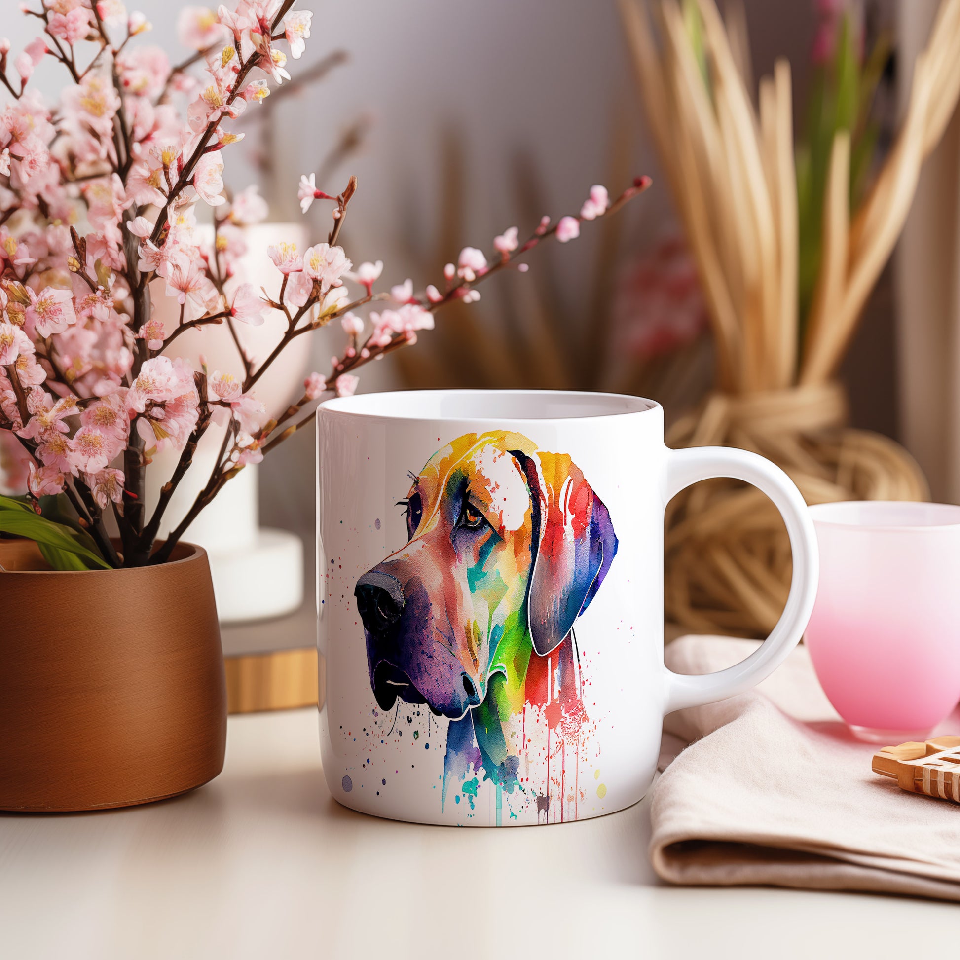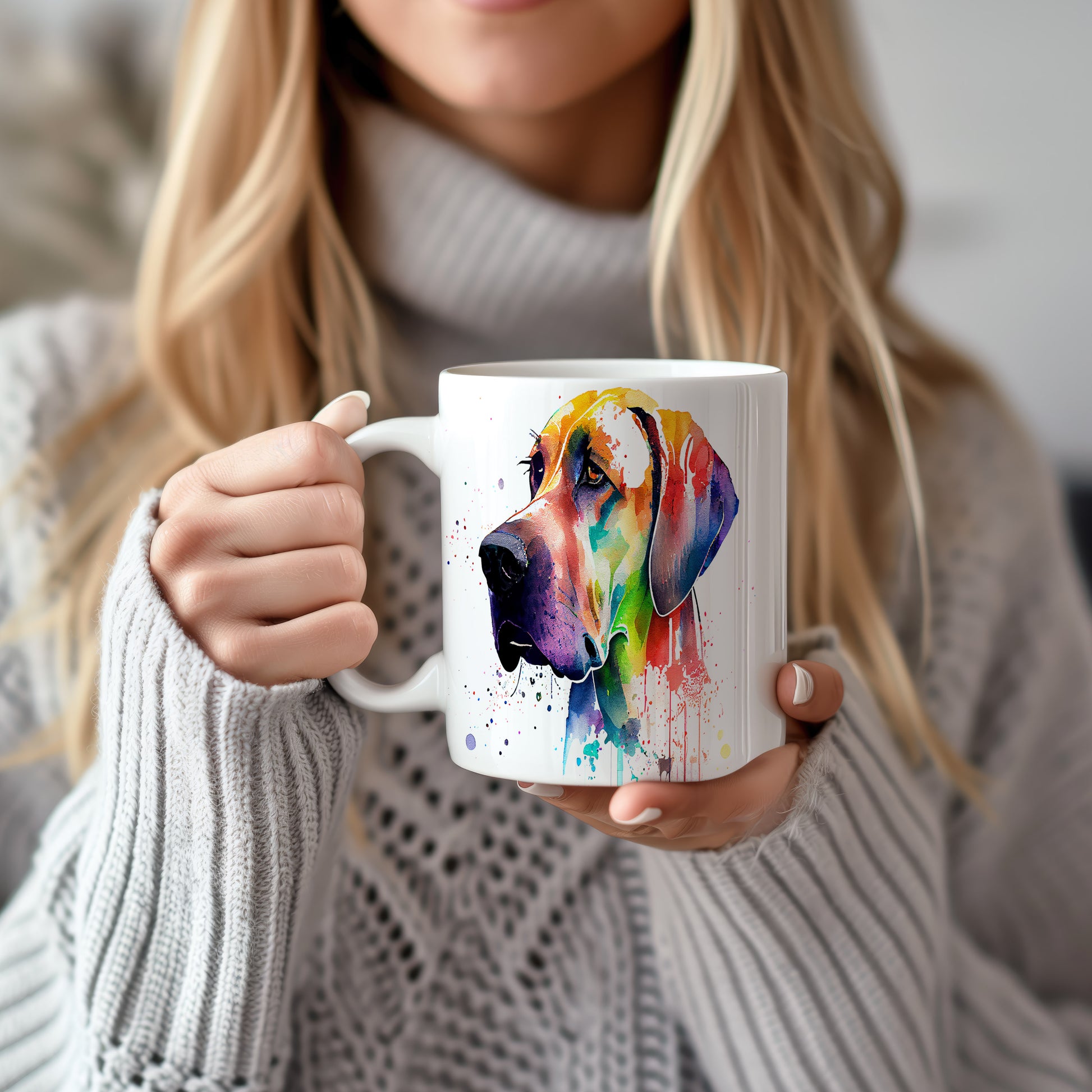 Barevný hrnek s malbou psa pro milovníky zvířat (doga · psi #2)
