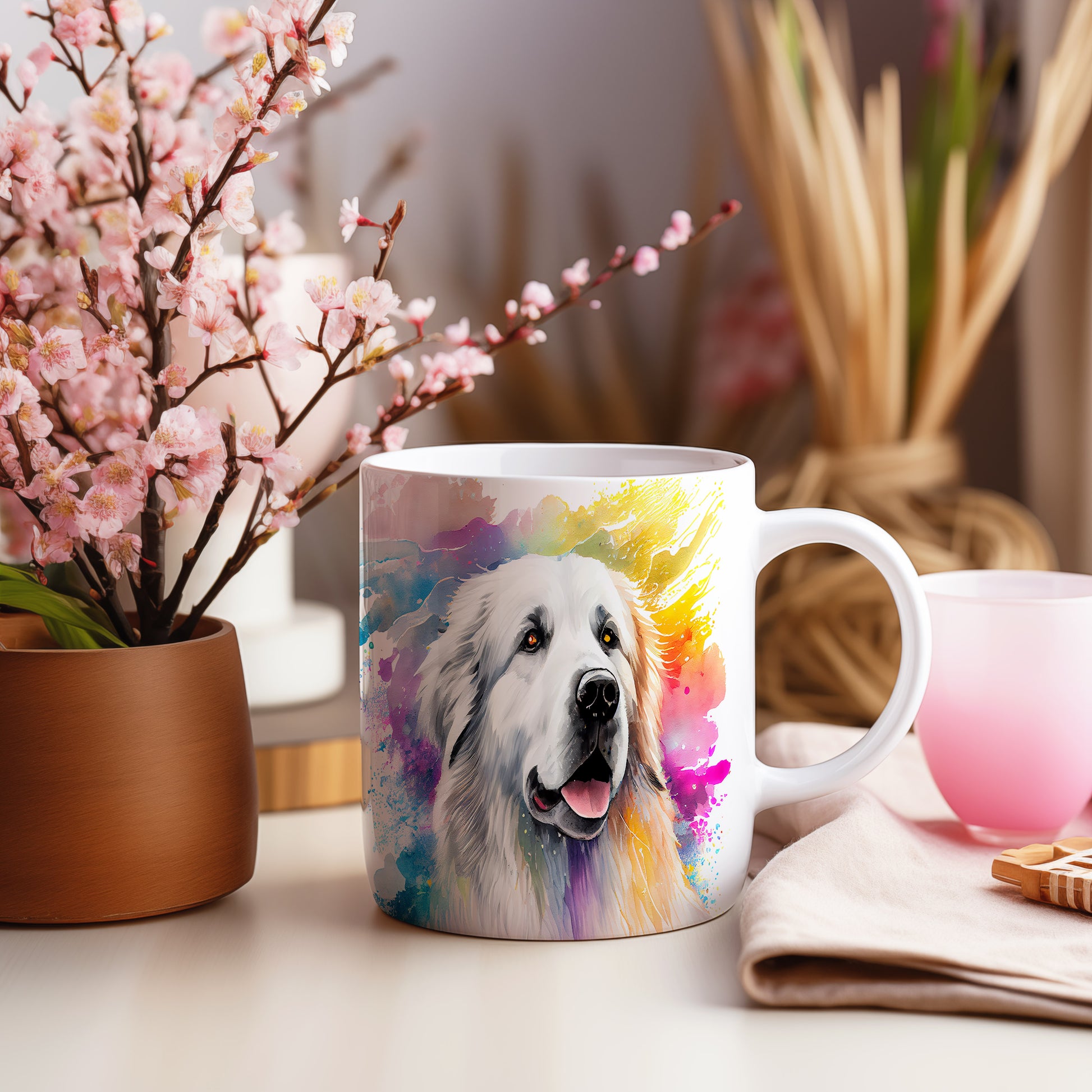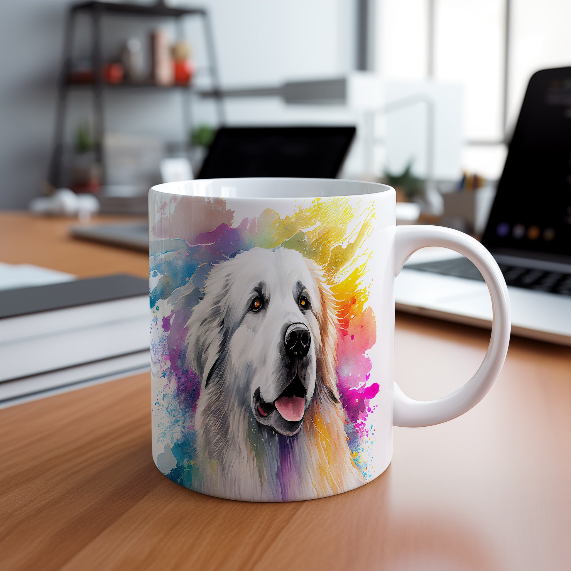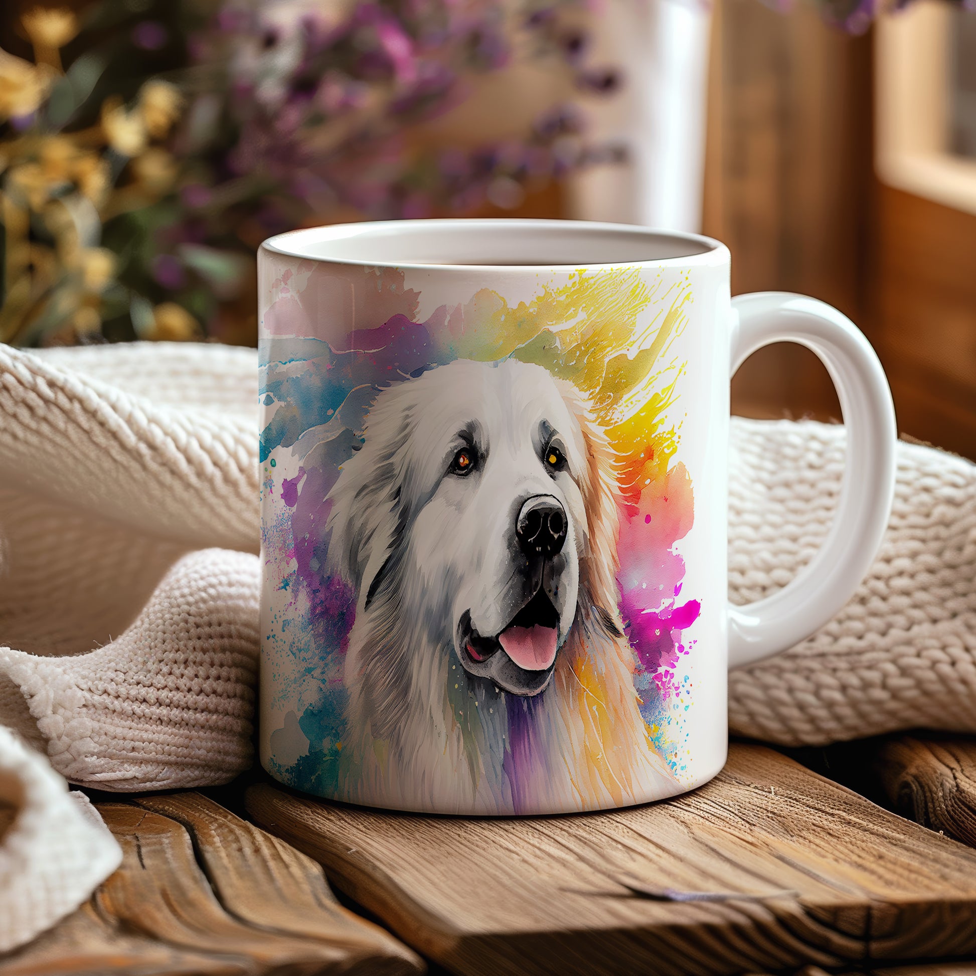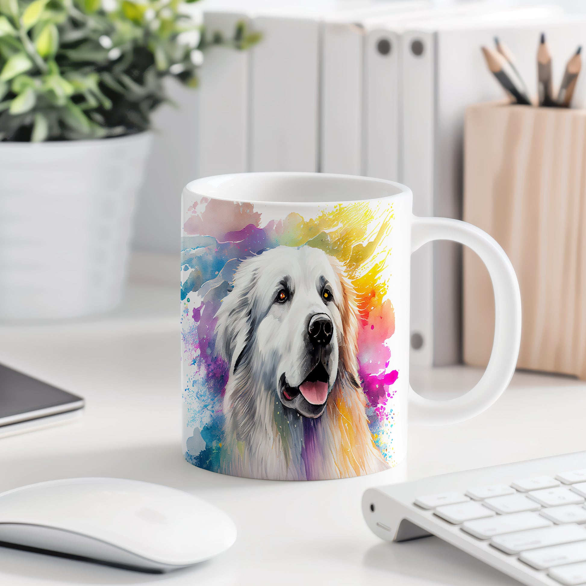 Tento hrnek oslavuje krásu pyrenejského ovčáka s barevným designem. Ideální pro milovníky psů, kteří chtějí přidat do své sbírky něco jedinečného.