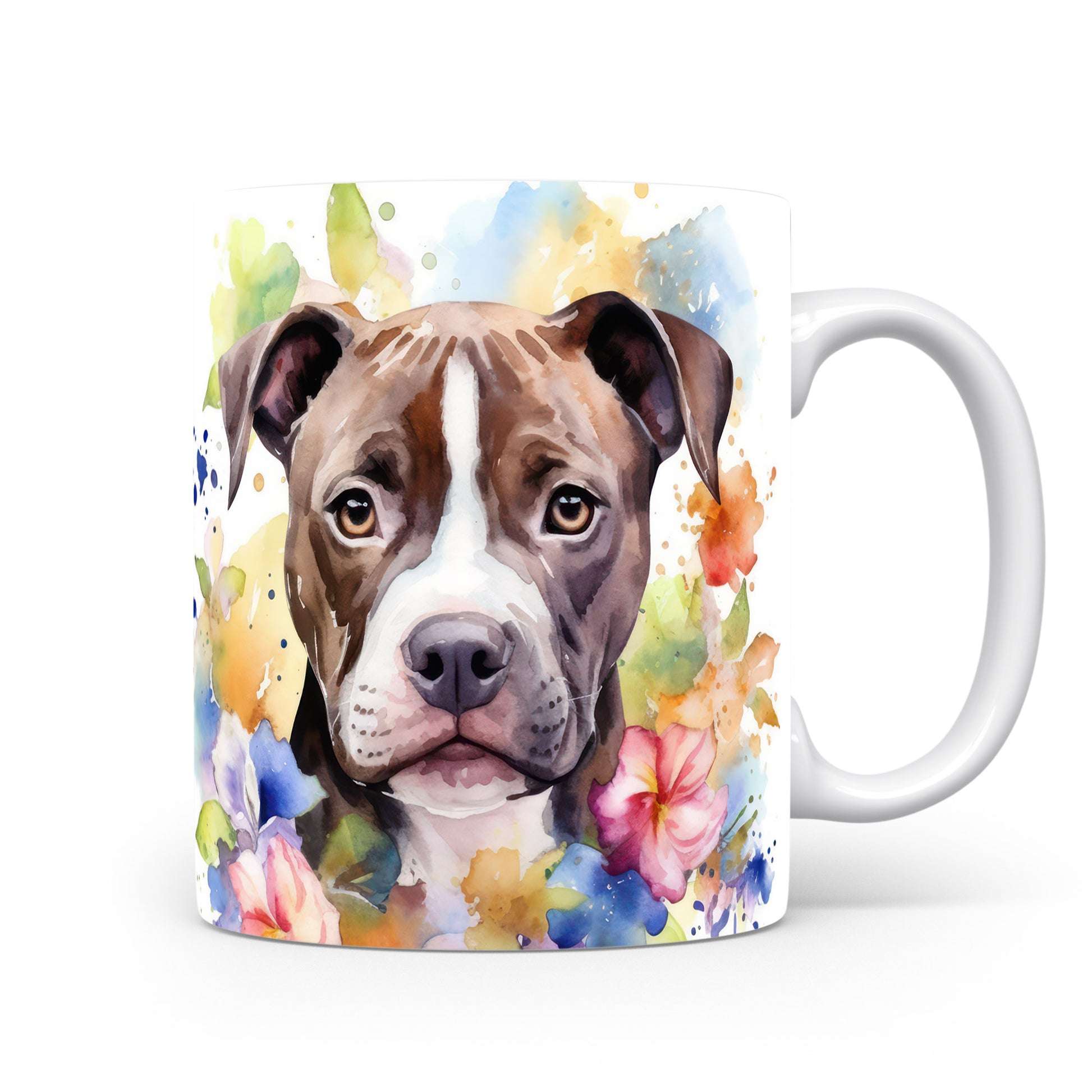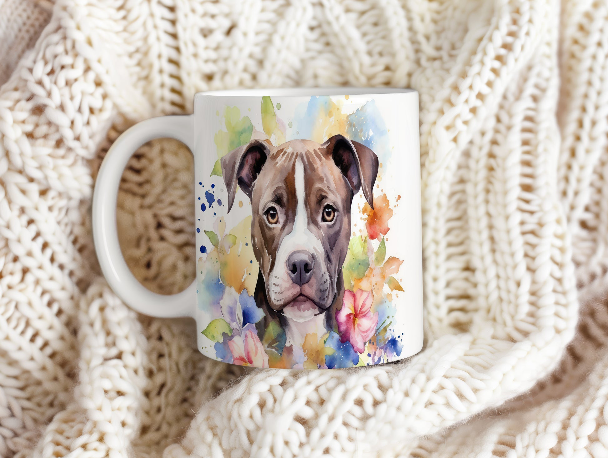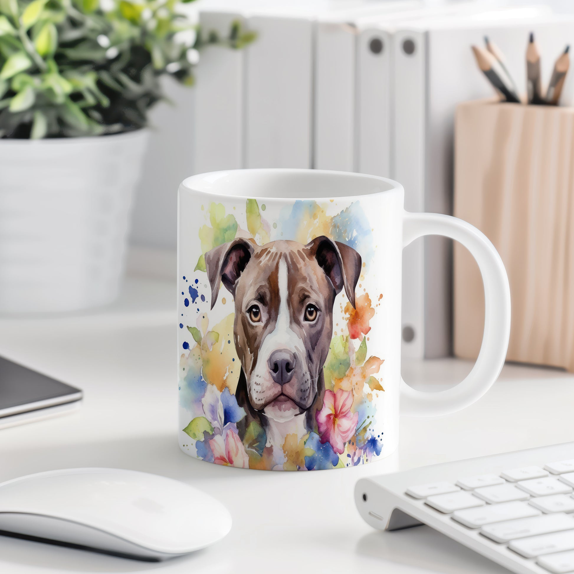 Tento hrnek s krásným vyobrazením pitbula a barevnými květinami ozdobí každý stůl. Ideální pro milovníky psů a originální dárky.