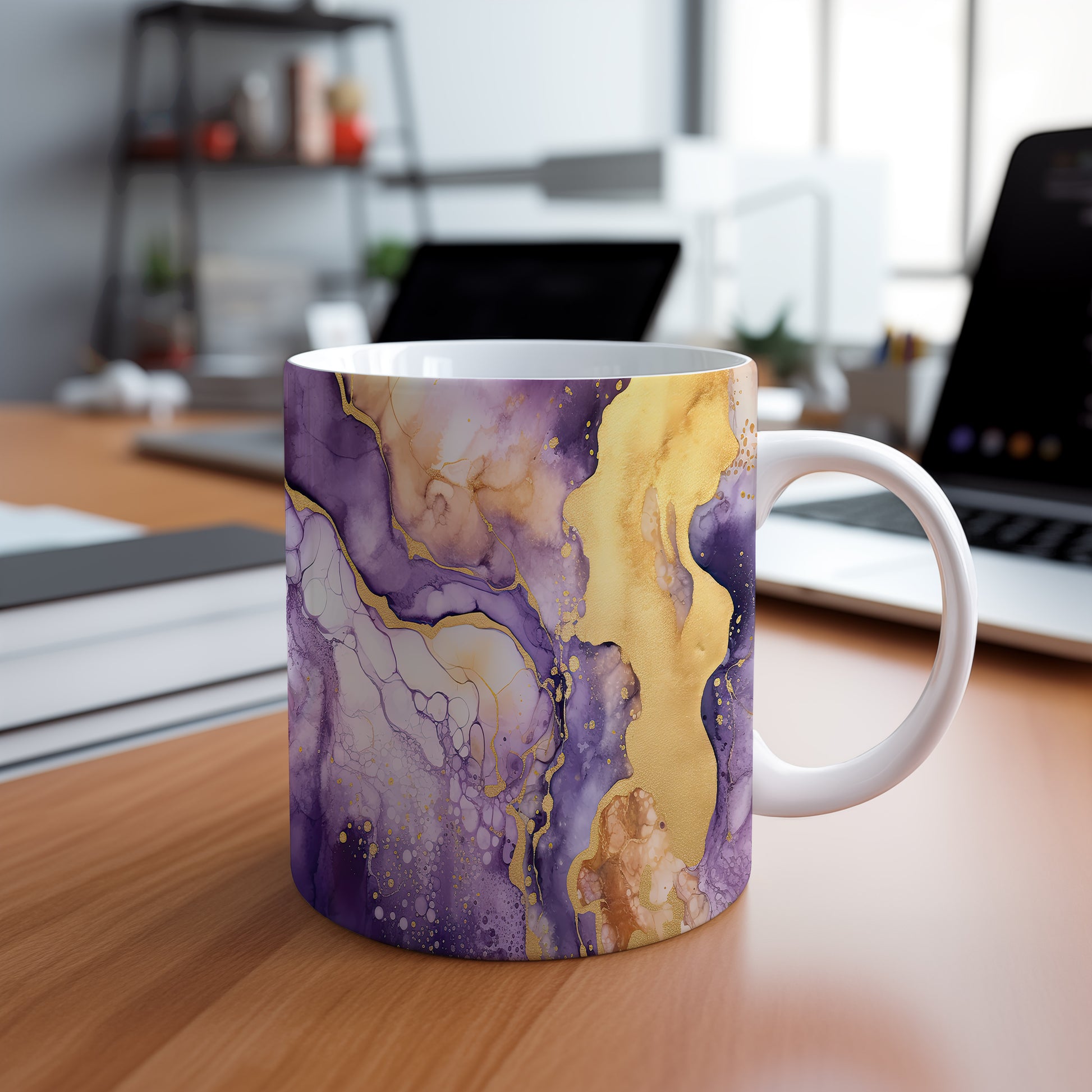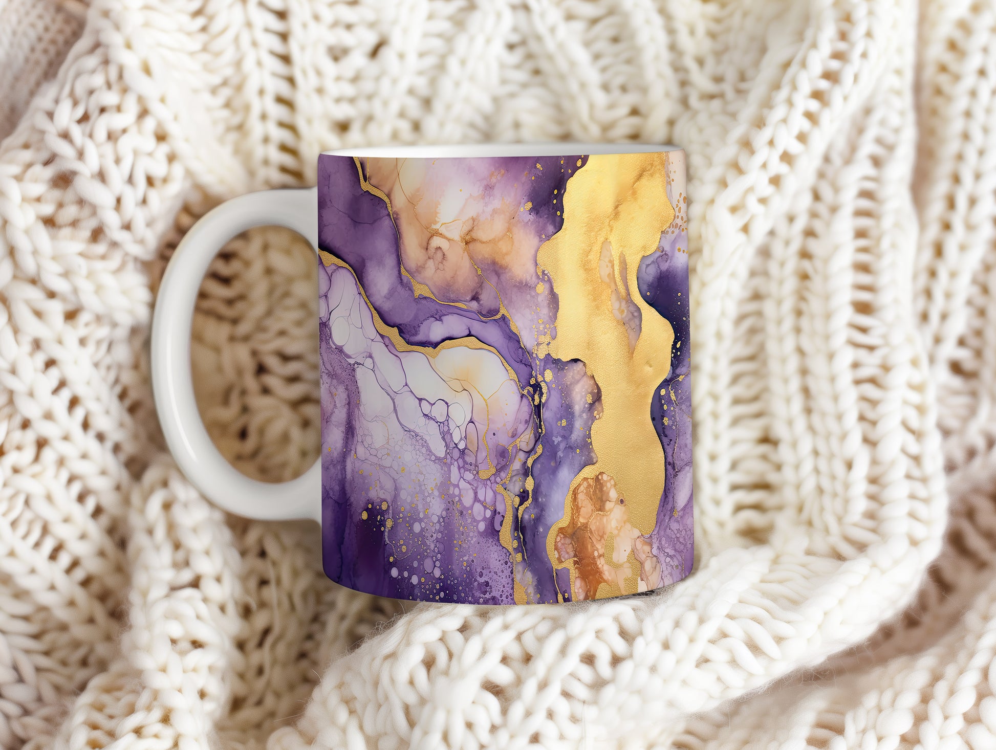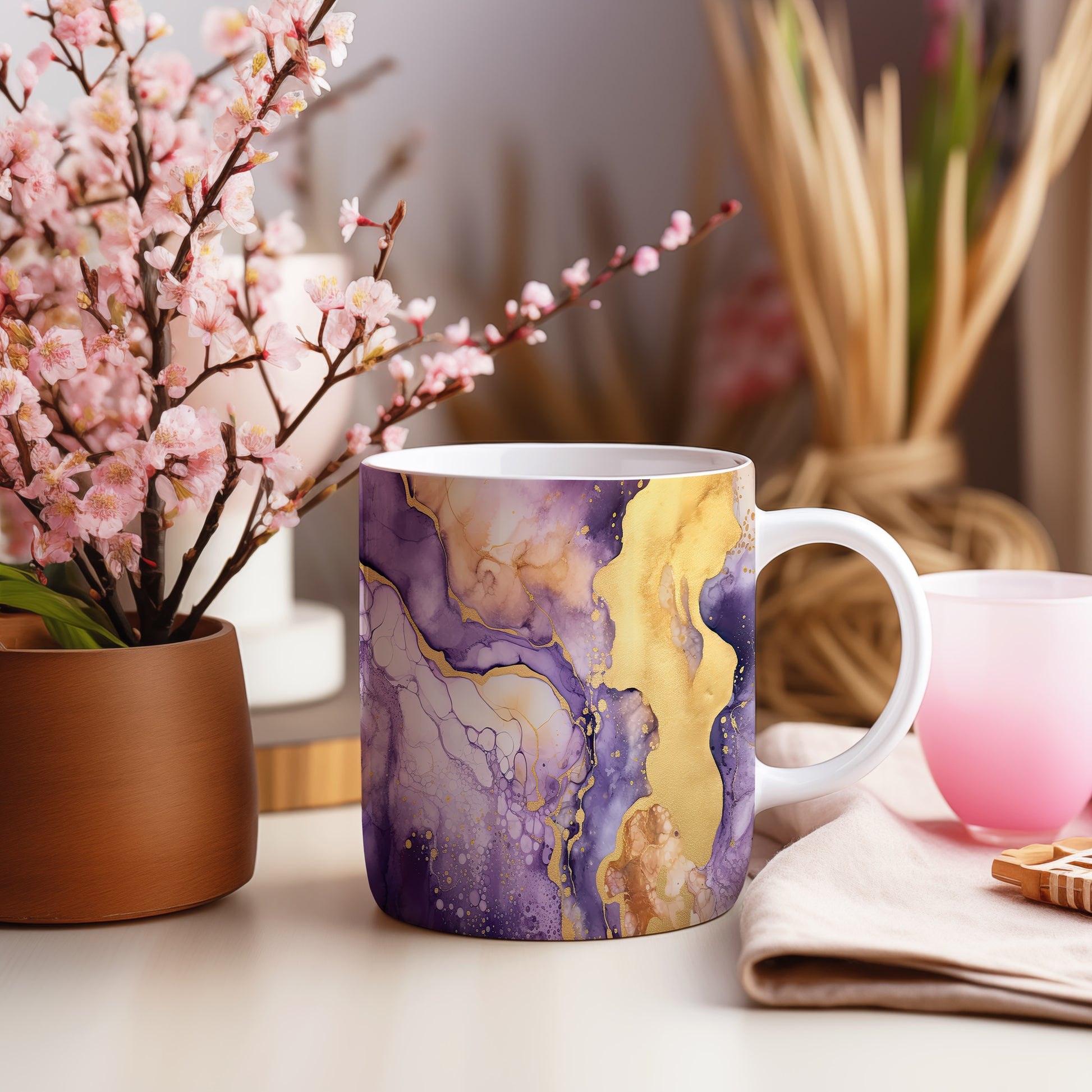Tento hrnek s jedinečným fialovo-zlatým designem dodá vašemu pití styl. Ideální pro kávu, čaj nebo jako elegantní dekorace na stůl.