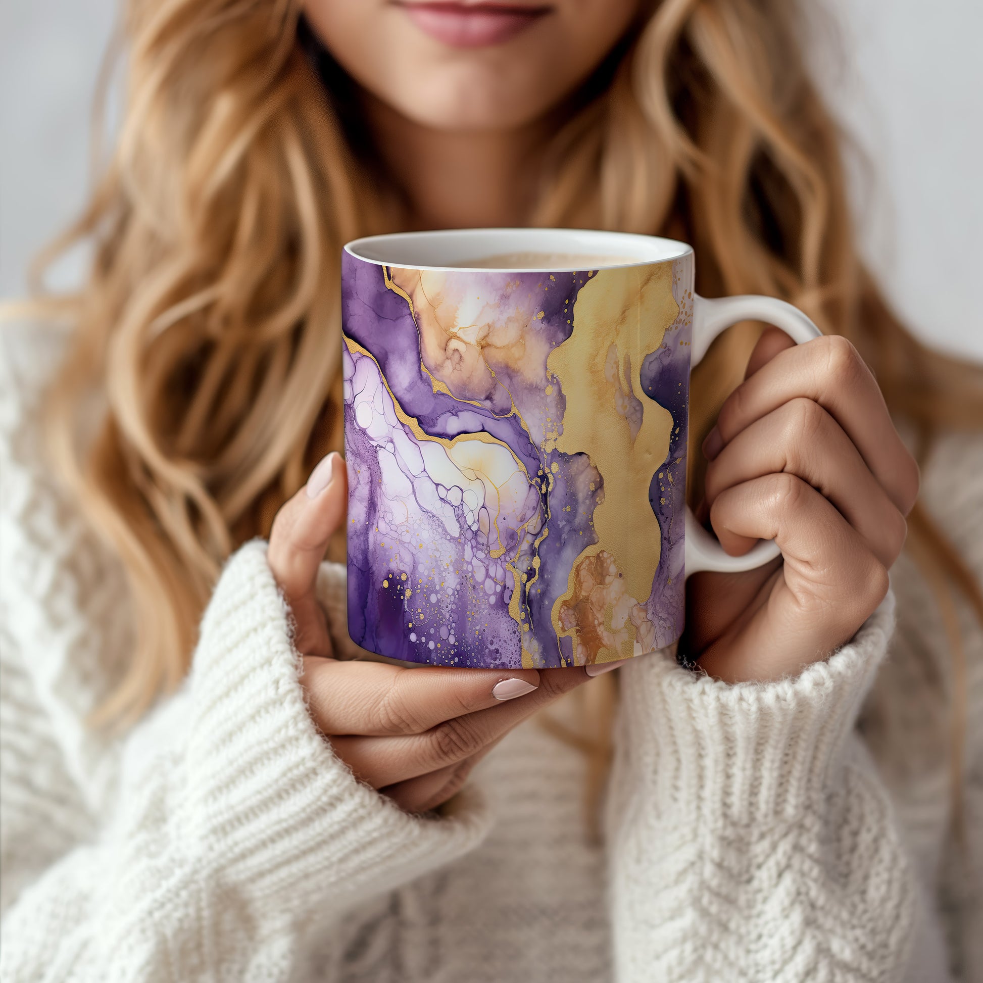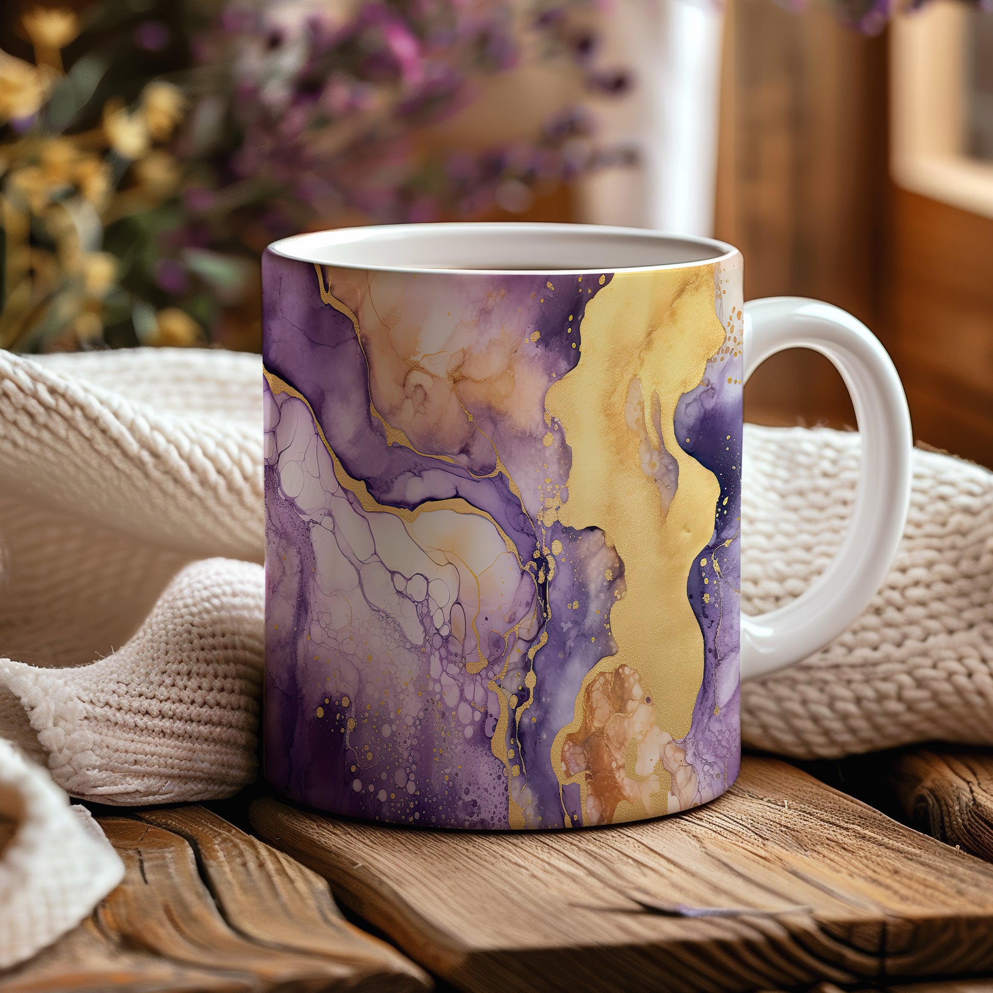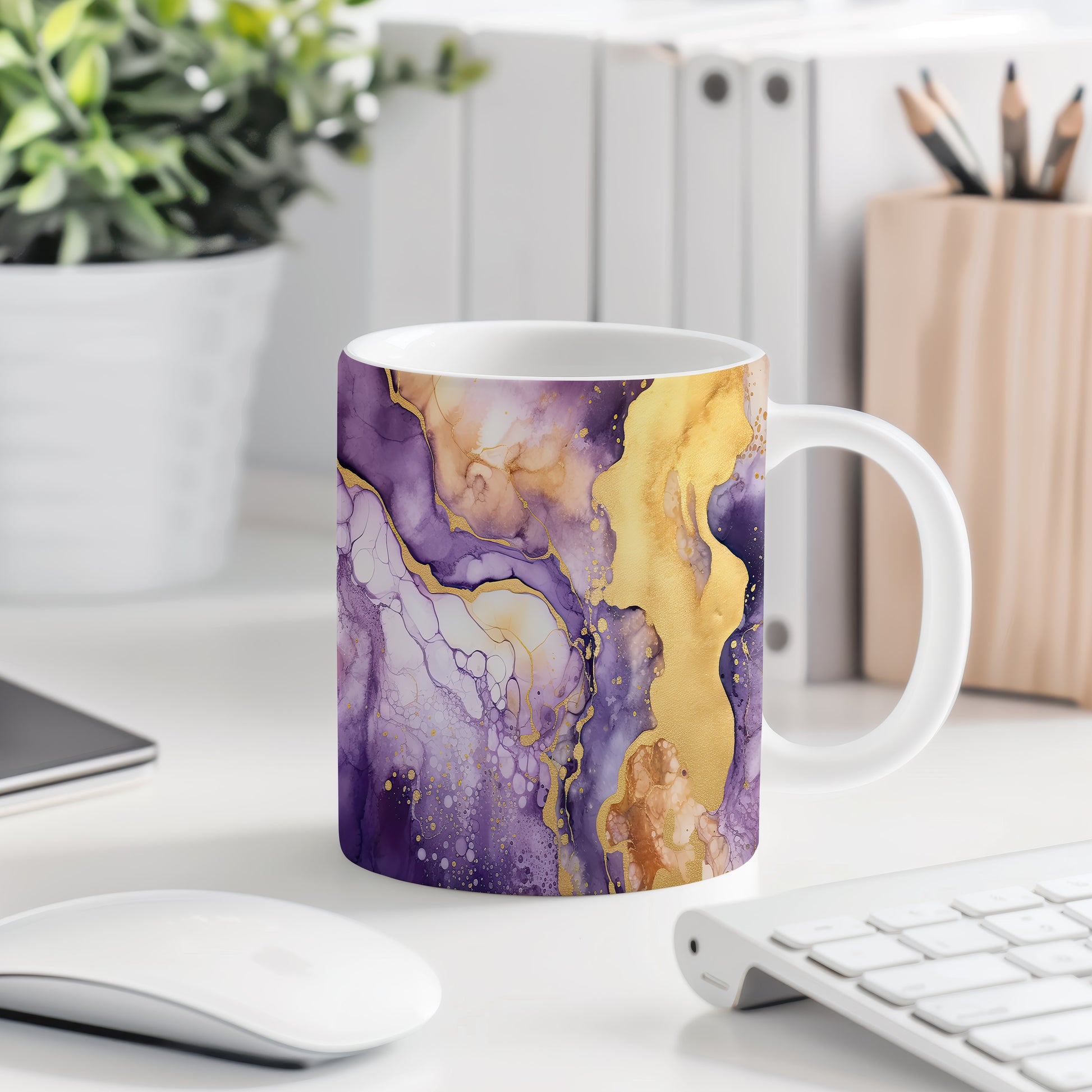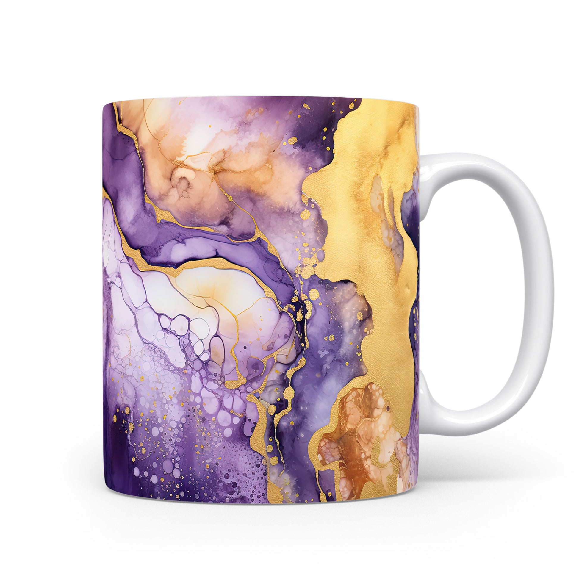 Tento hrnek s jedinečným fialovo-zlatým designem dodá vašemu pití styl. Ideální pro kávu, čaj nebo jako elegantní dekorace na stůl.
