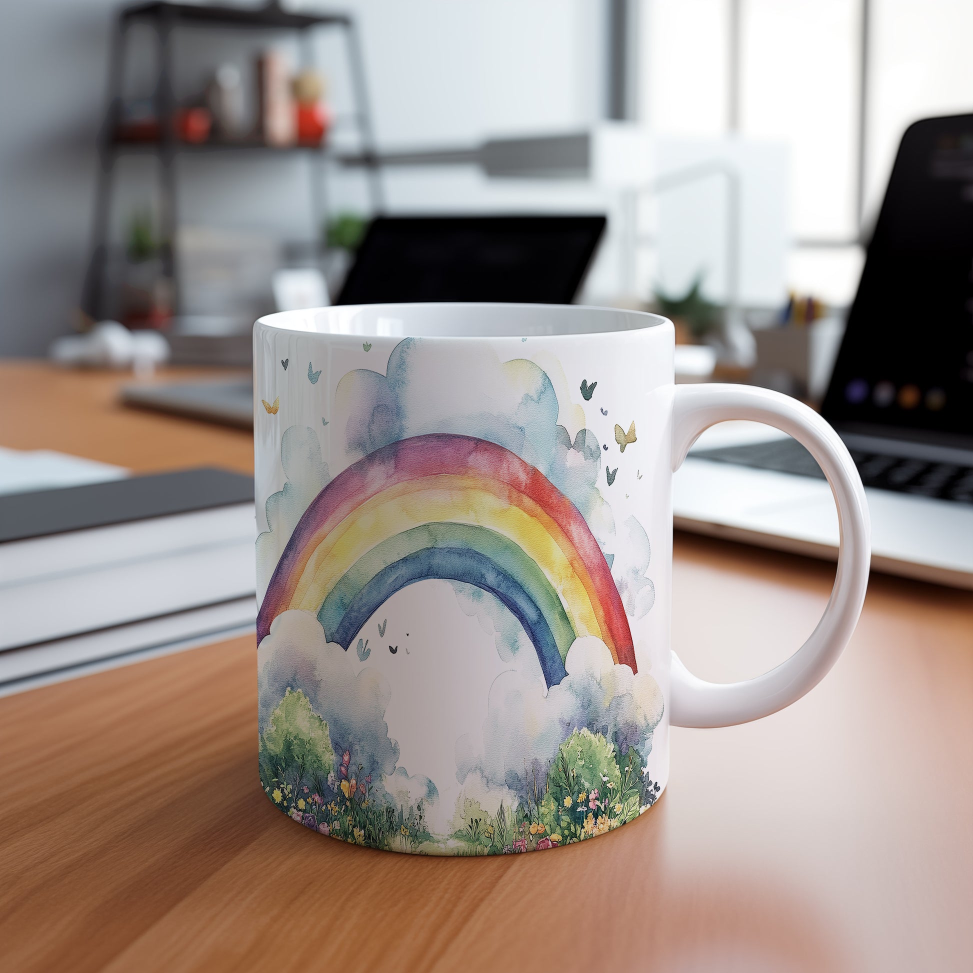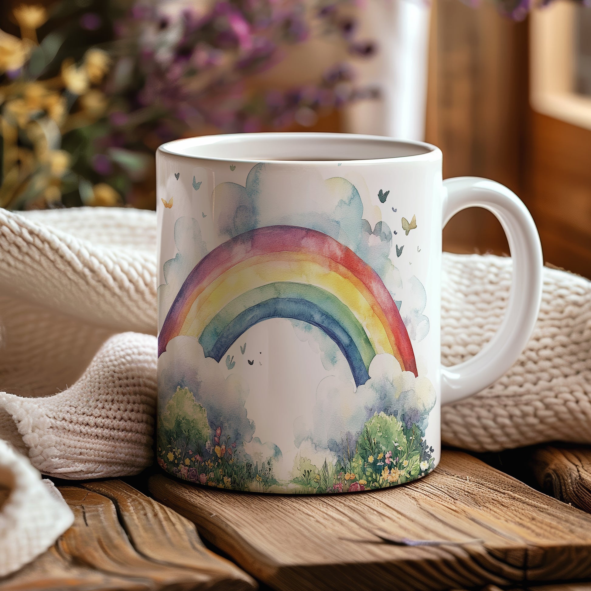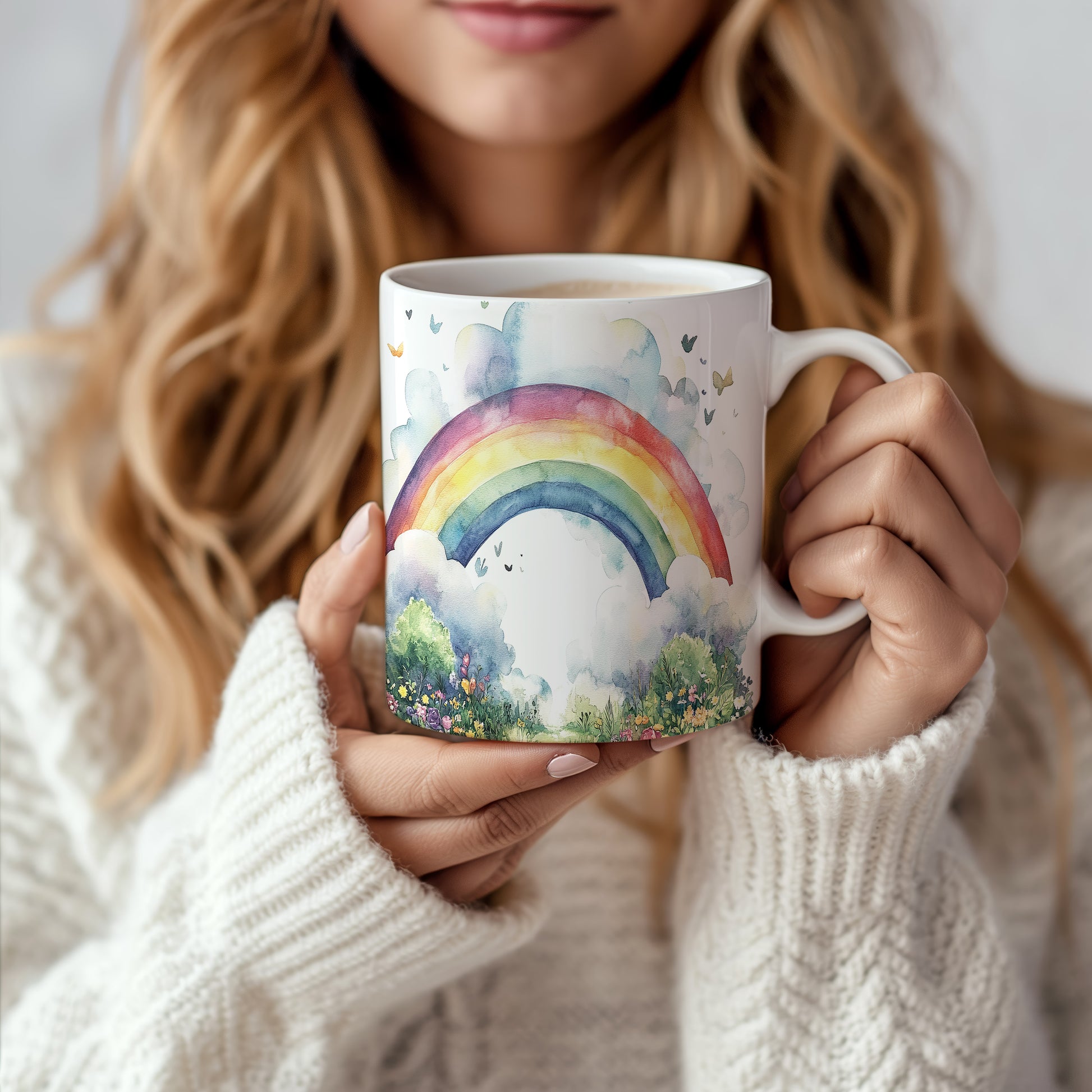 Tento hrnek s barevnou duhou a květinovým motivem přináší do každého dne radost. Ideální pro vaše oblíbené nápoje a skvělý jako dárek pro blízké.