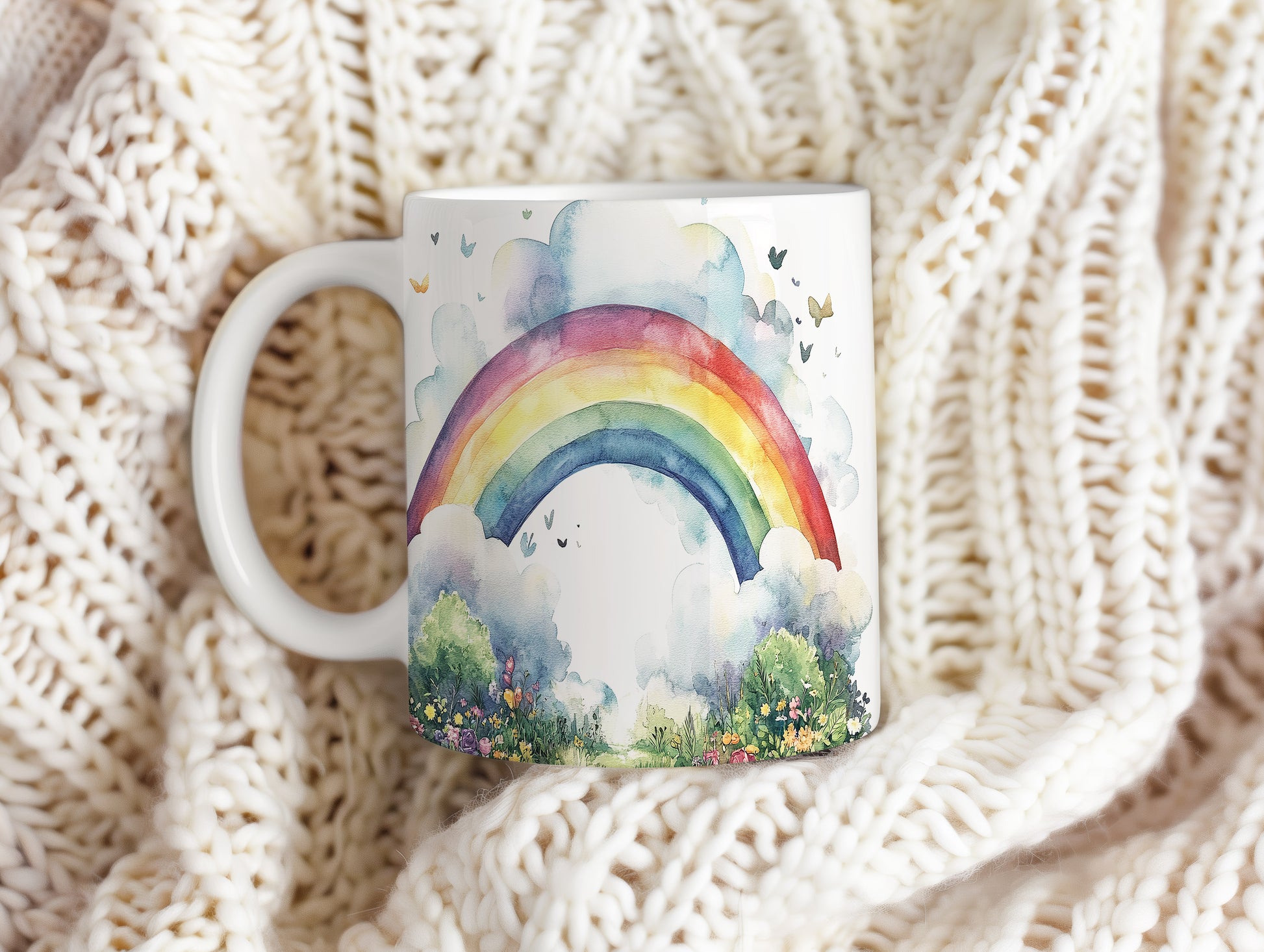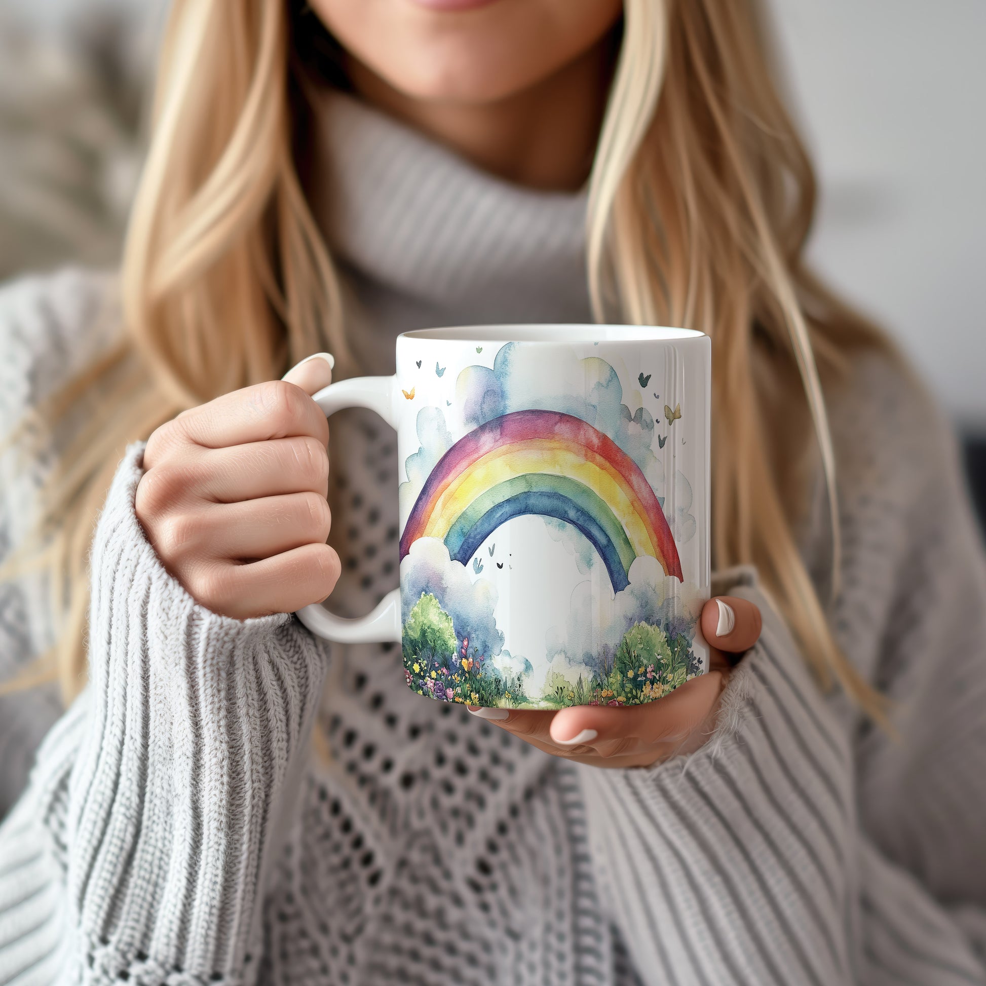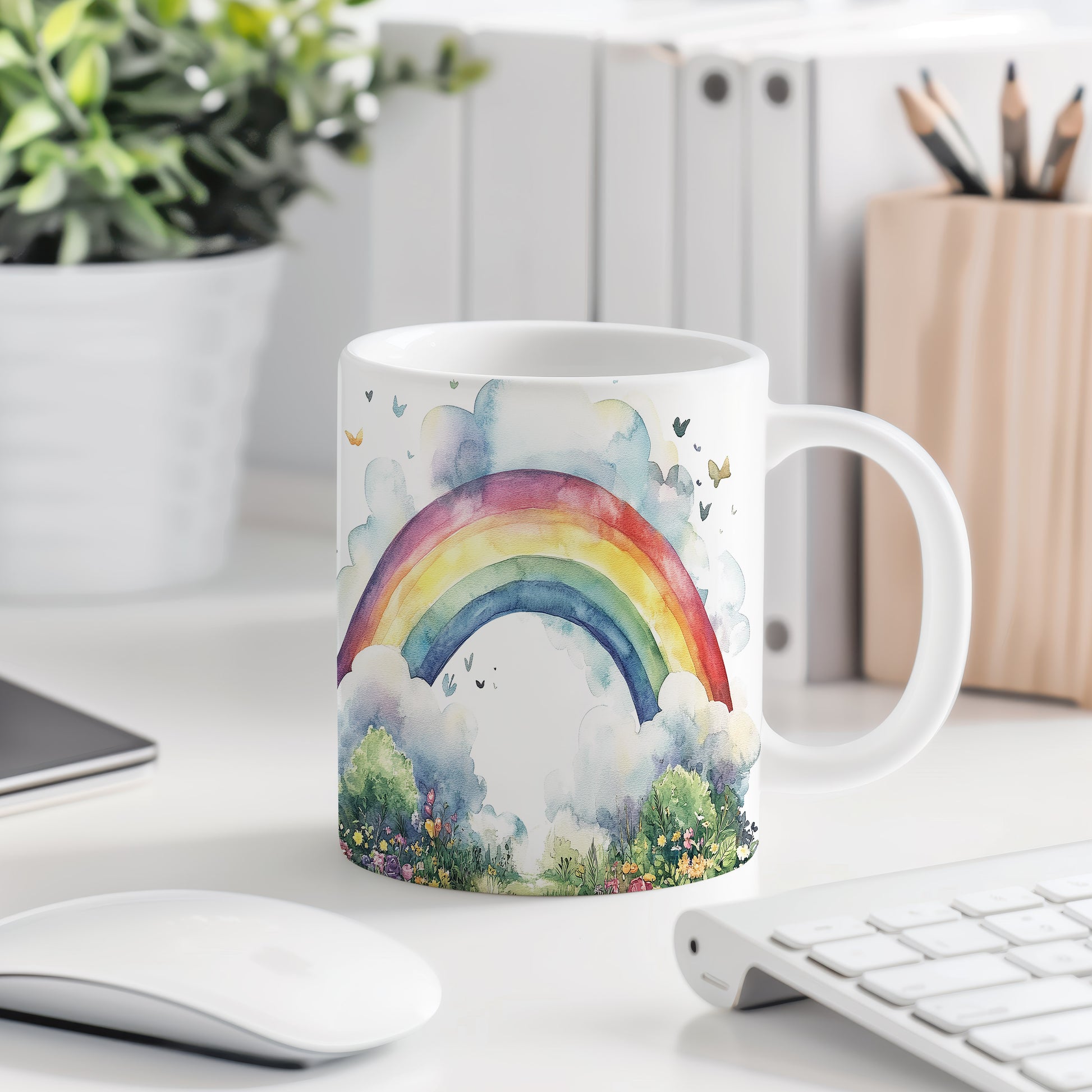 Tento hrnek s barevnou duhou a květinovým motivem přináší do každého dne radost. Ideální pro vaše oblíbené nápoje a skvělý jako dárek pro blízké.