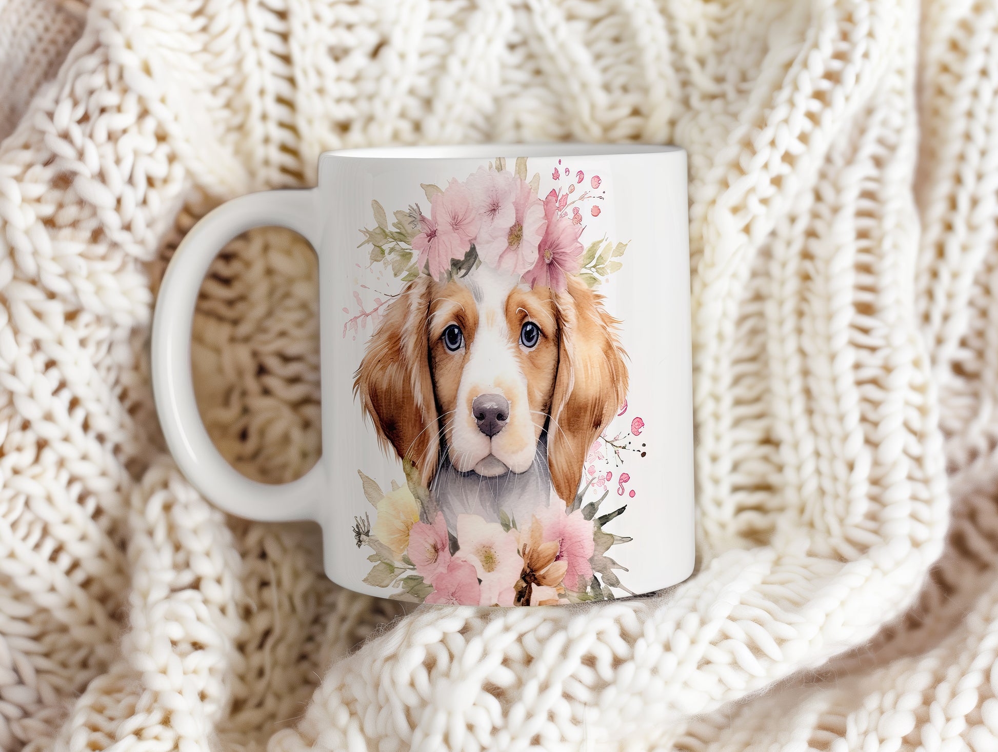Hrnek s portrétem Beagle s květinovým věncem
