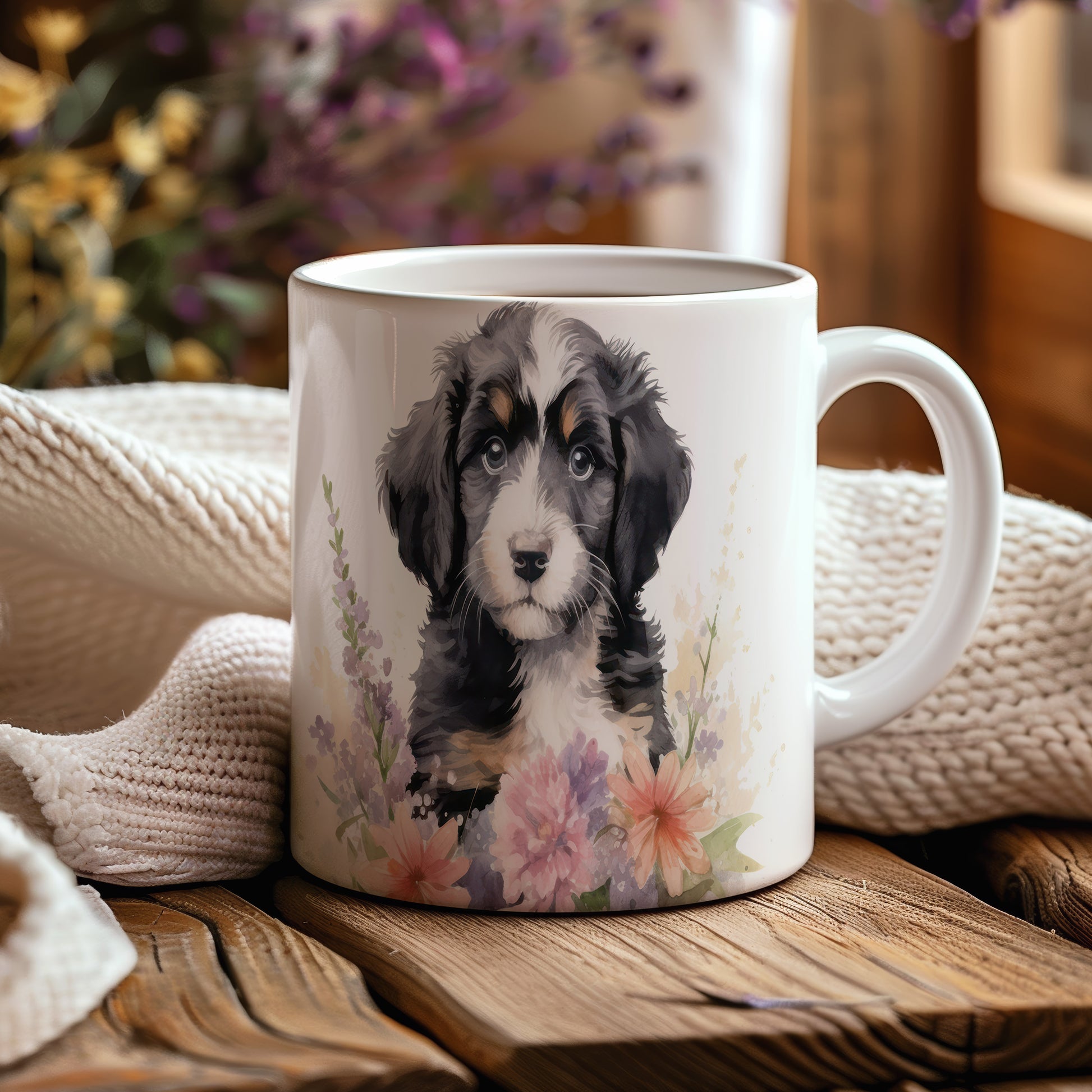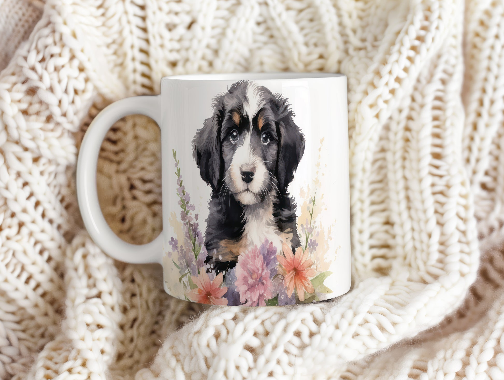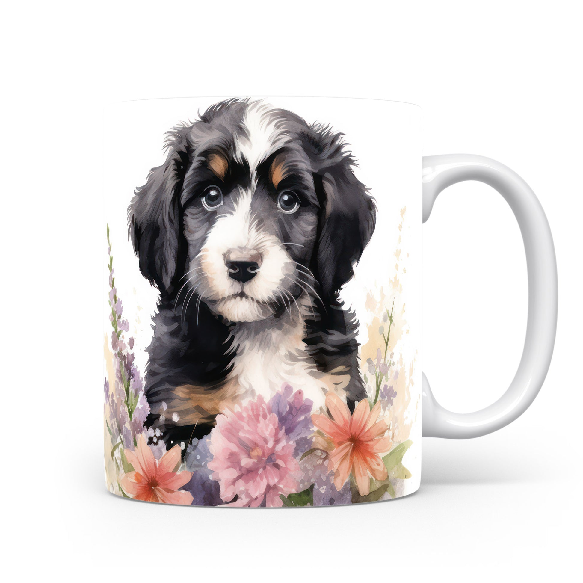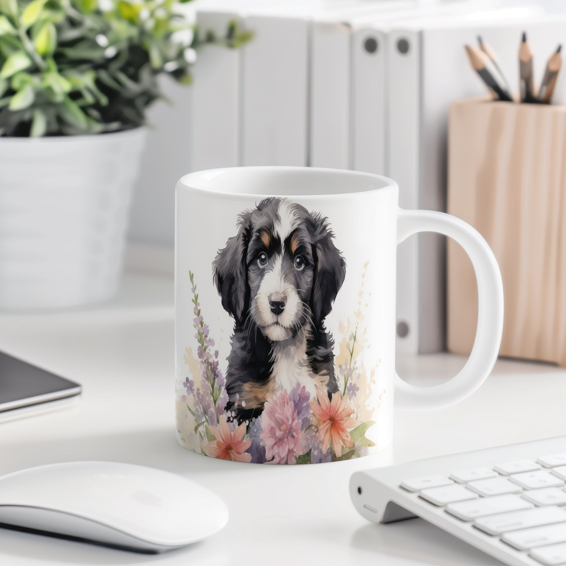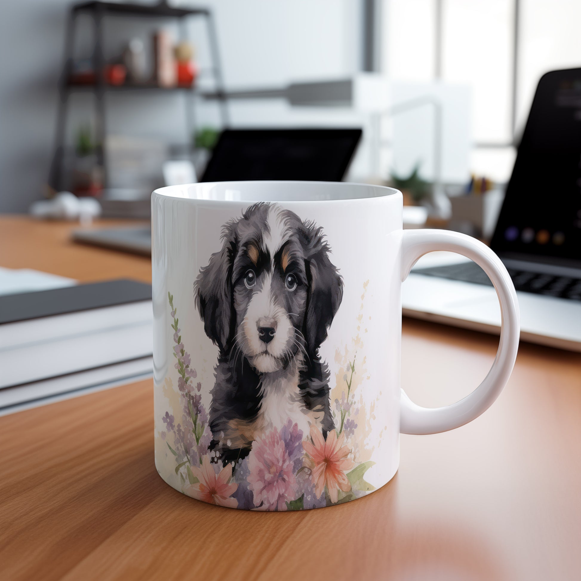 Tento hrnek s roztomilým štěňátkem Bernského salašnického je ideální pro milovníky psů. Ozdobí každé ráno a potěší každého, kdo má rád zvířata a květiny.