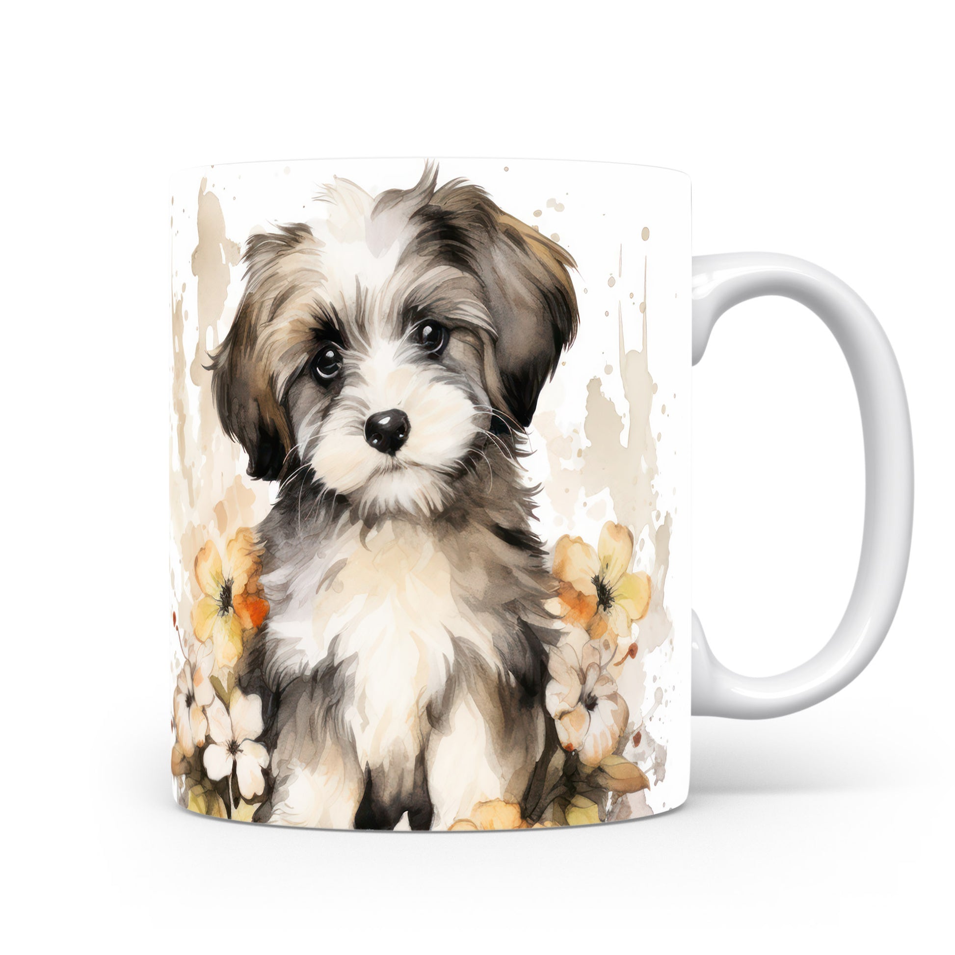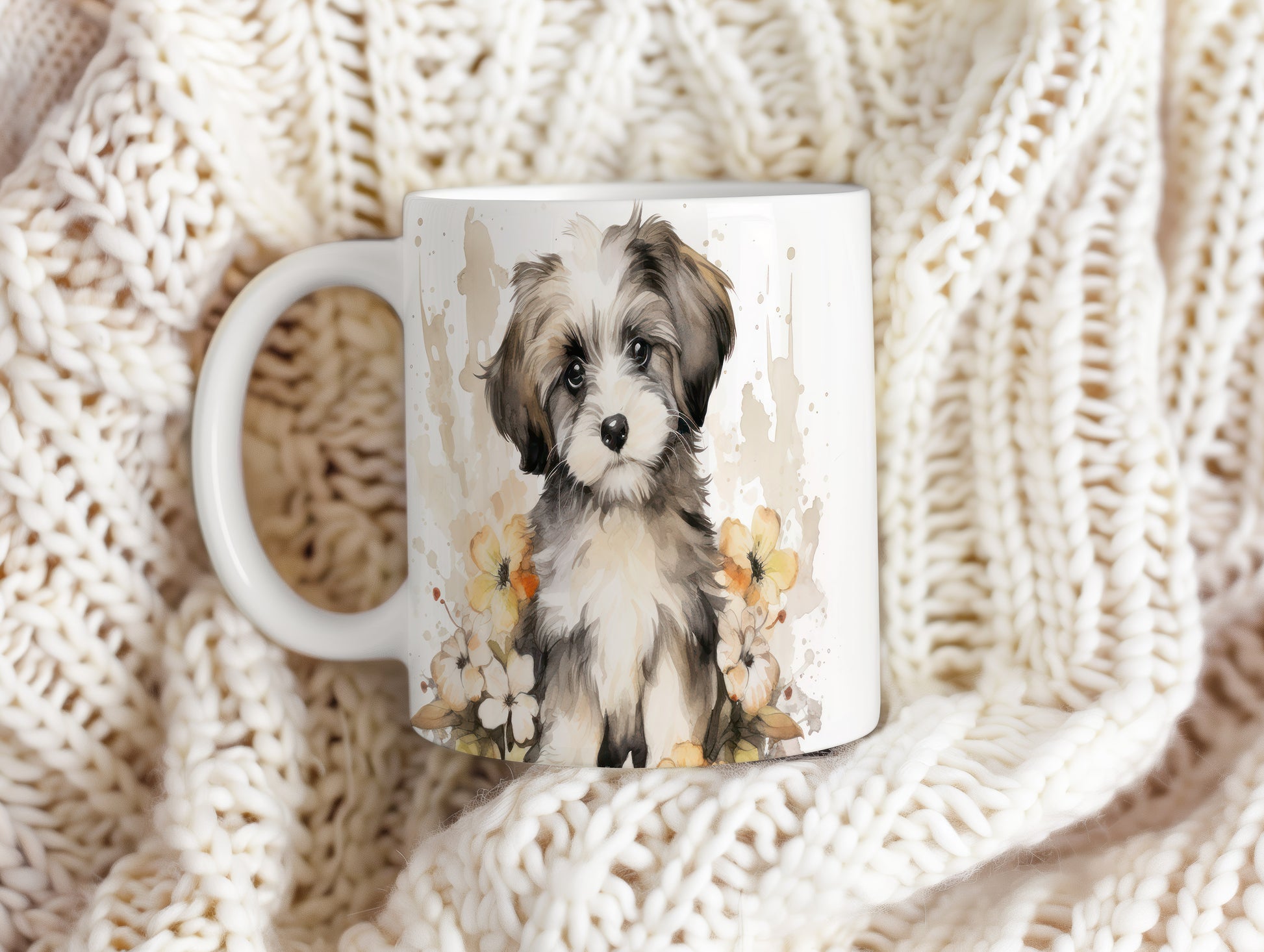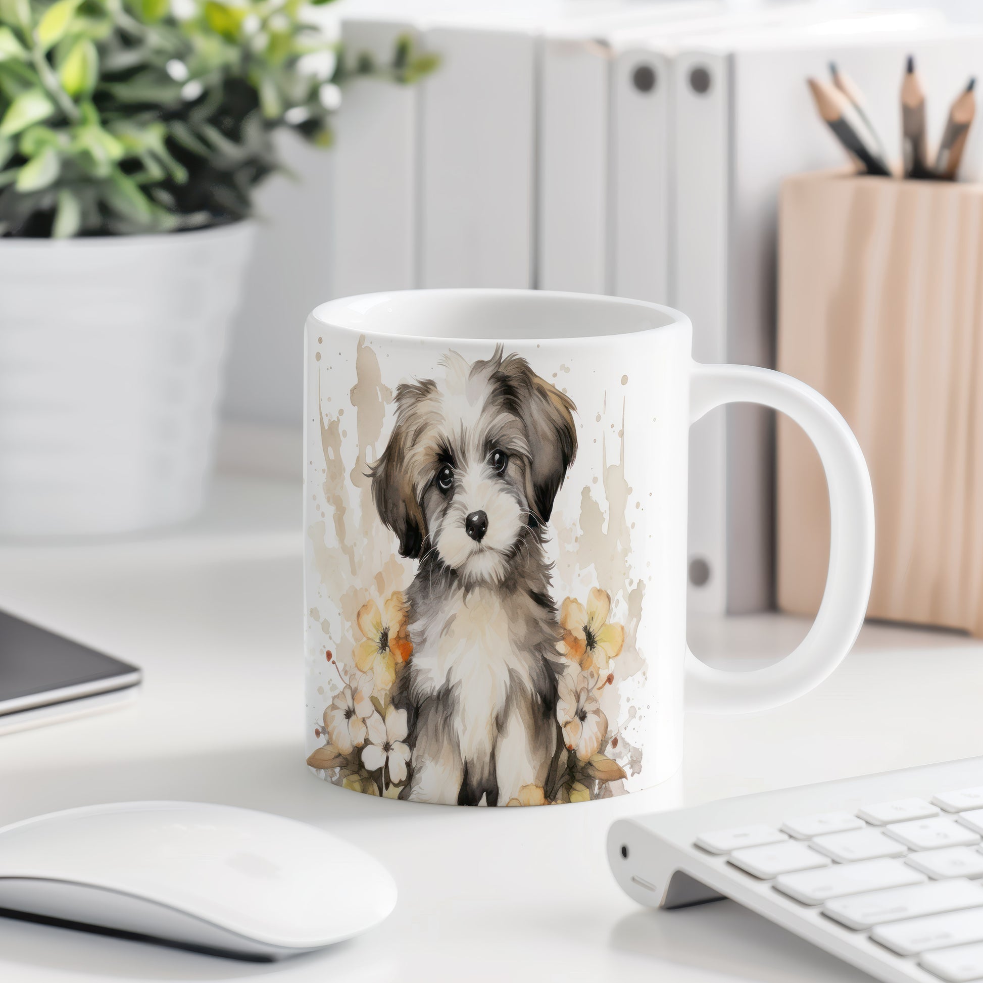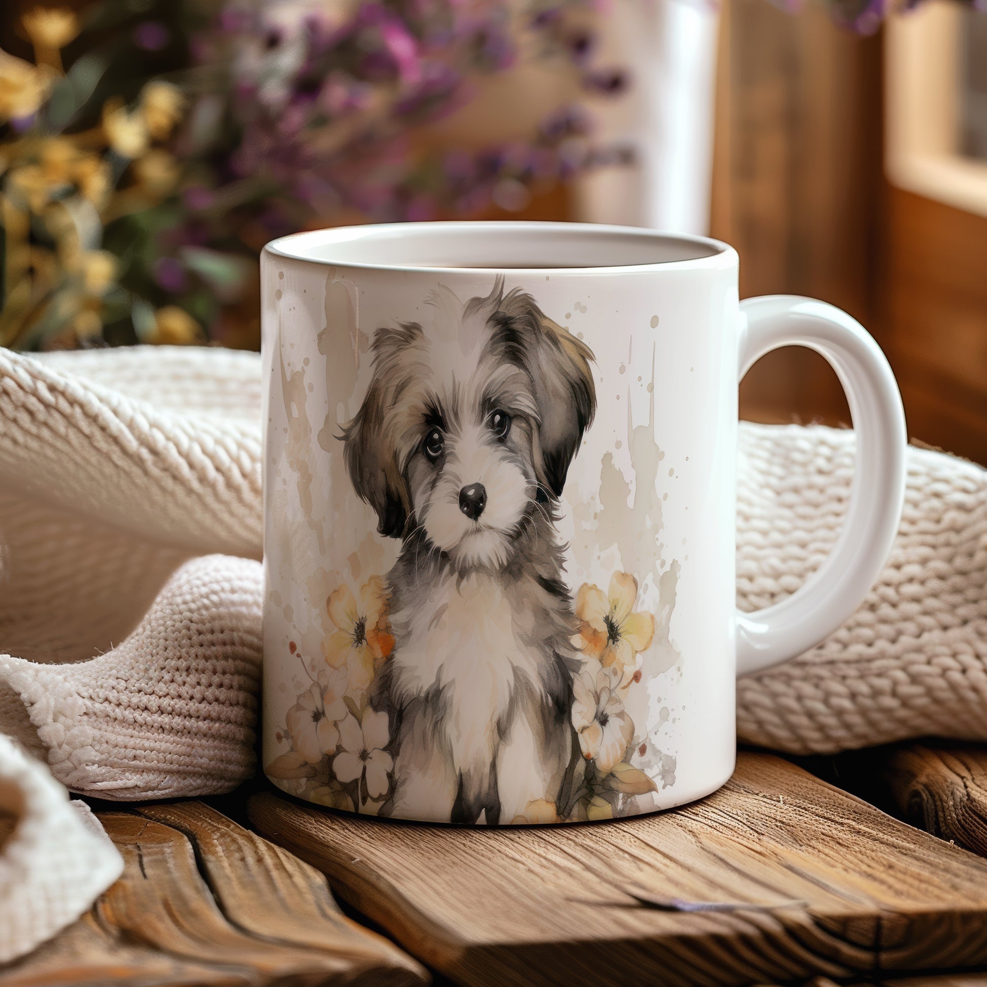 Tento hrnek s ilustrací roztomilého štěňátka a květin je ideální pro milovníky psů. Perfektní pro váš ranní kávu nebo čaj.