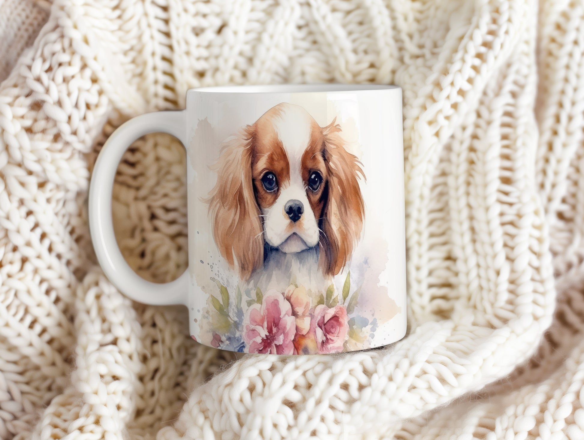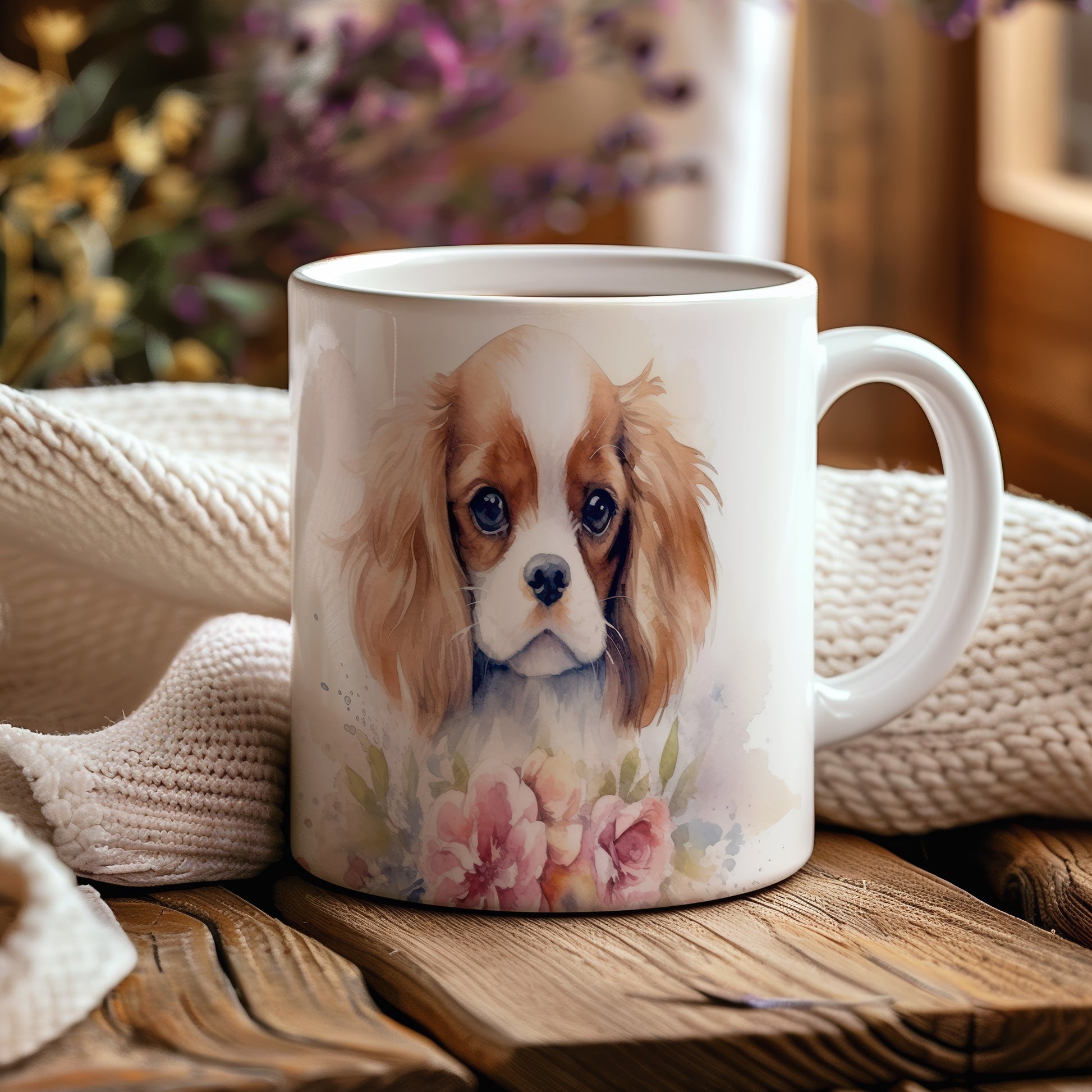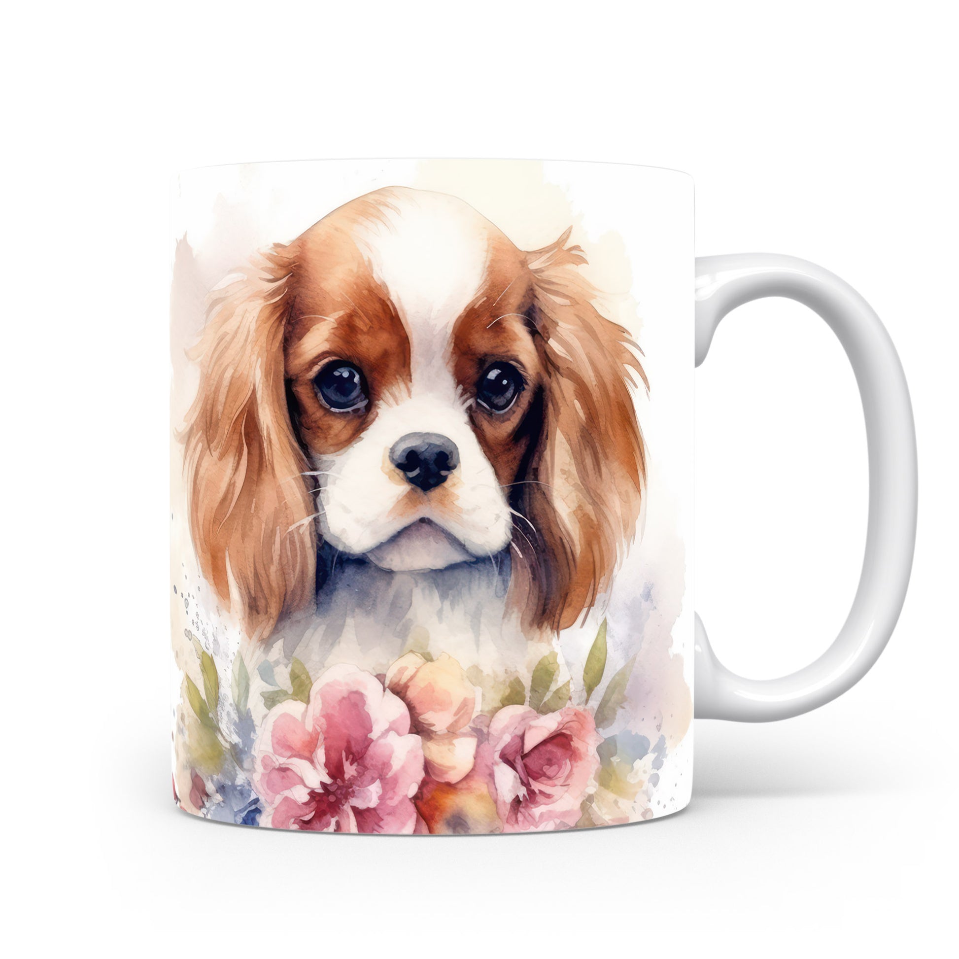 Tento hrnek s jemným potiskem štěněte king charles španěla a květin dodá každému dni nádech radosti. Ideální pro milovníky psů a estetických nápojů.