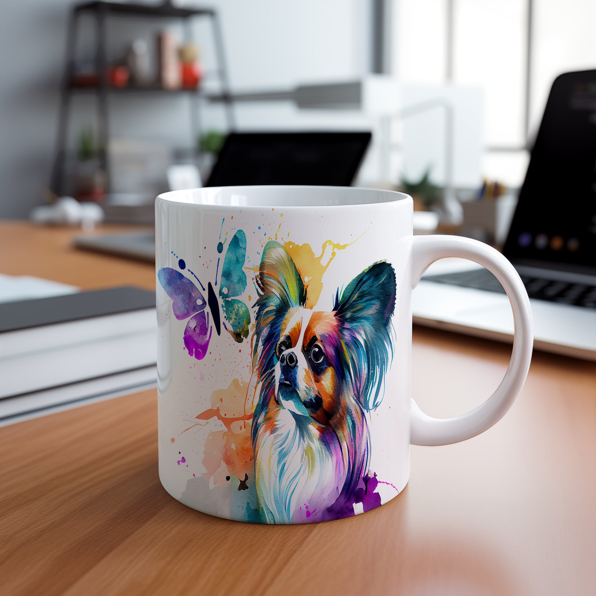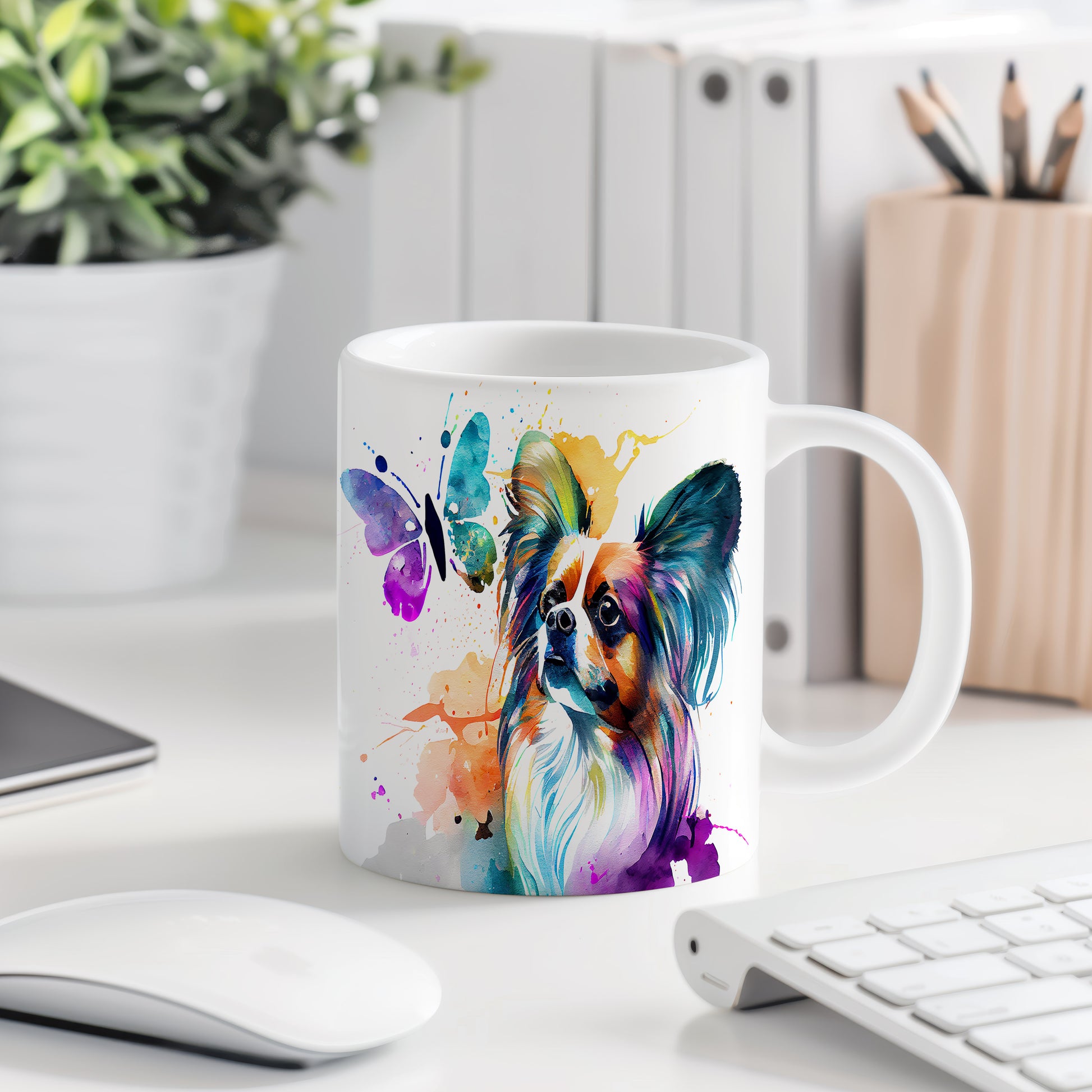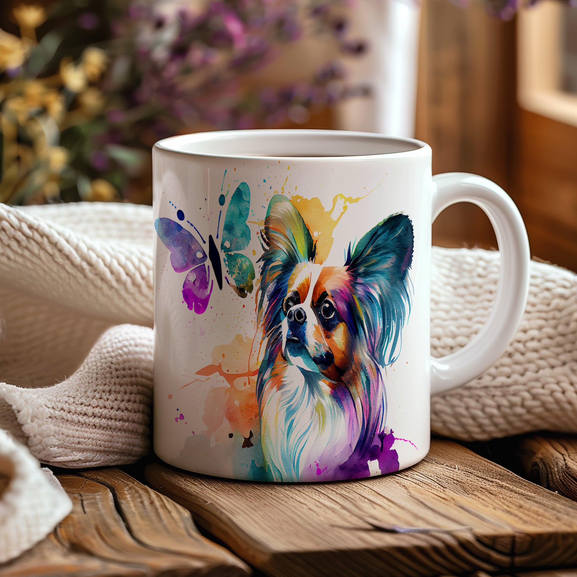 Tento hrnek s motivem papillonu a motýla přináší do vašeho dne radost a barevnost. Ideální jako dárek pro milovníky psů a přírody.