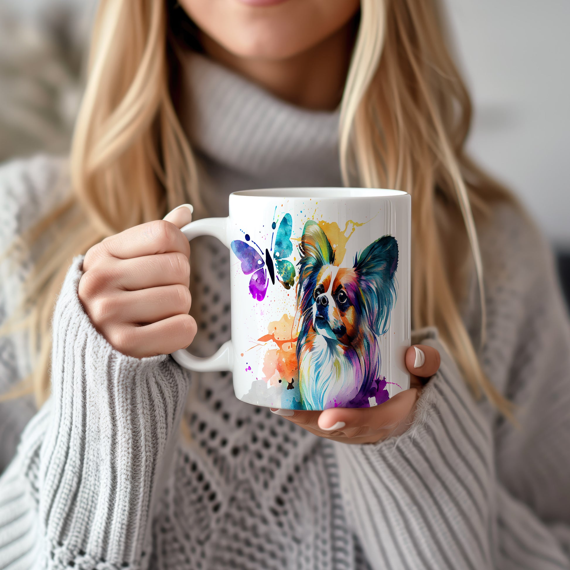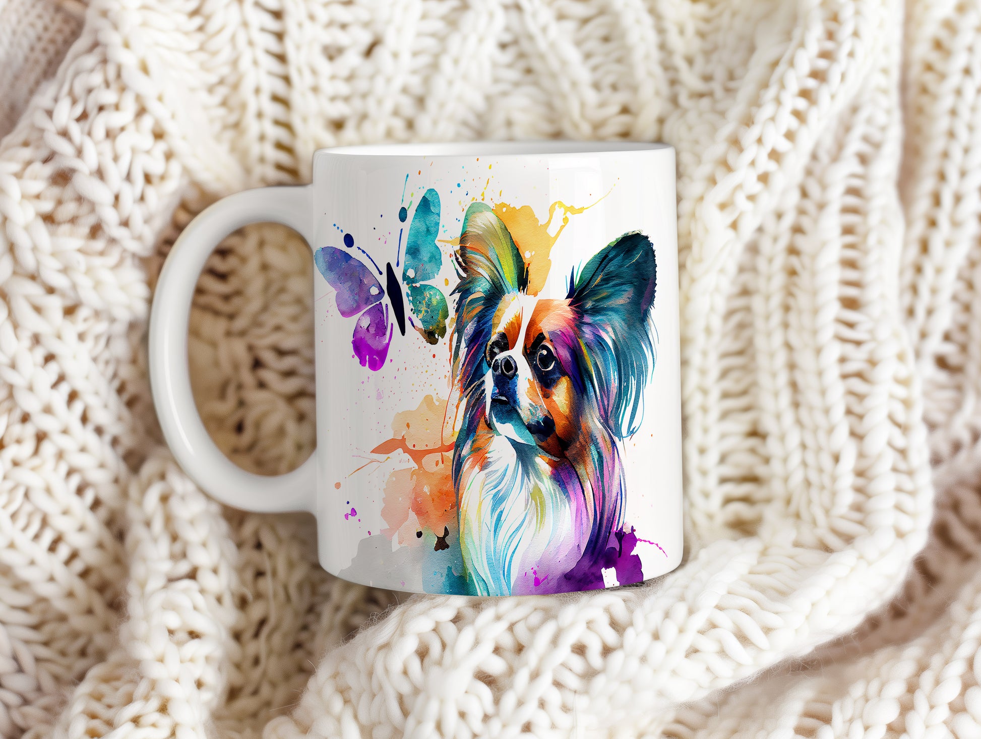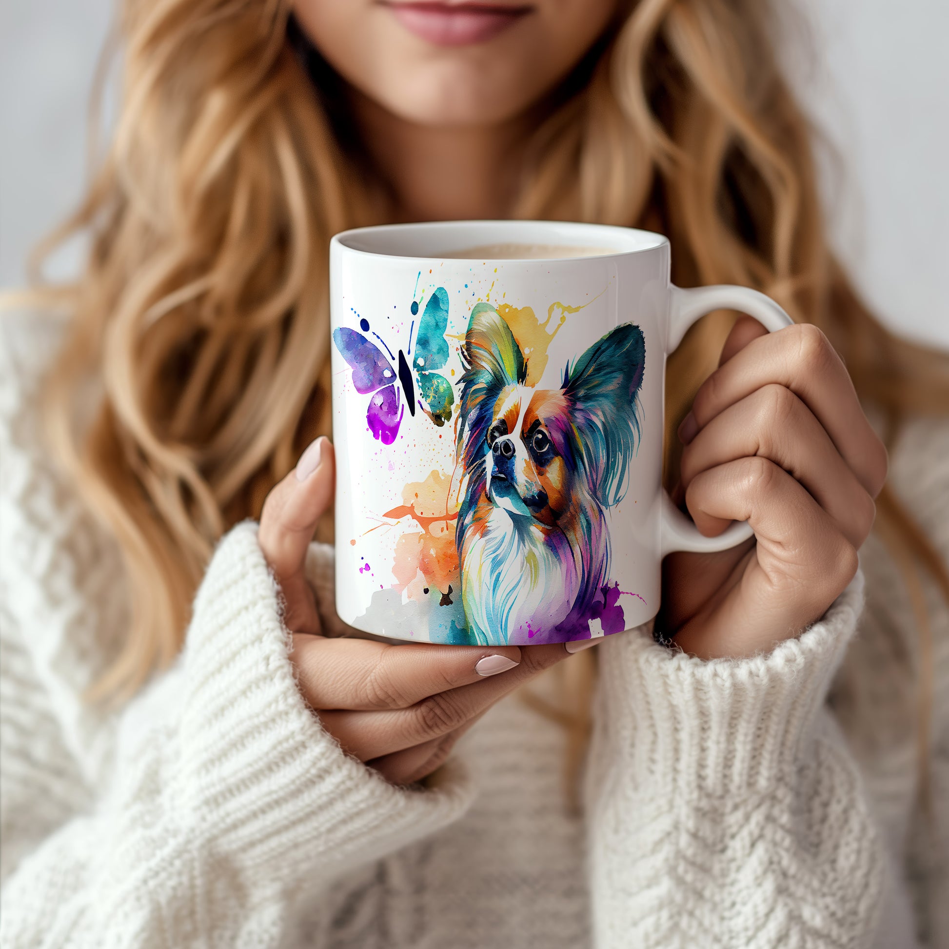 Tento hrnek s motivem papillonu a motýla přináší do vašeho dne radost a barevnost. Ideální jako dárek pro milovníky psů a přírody.