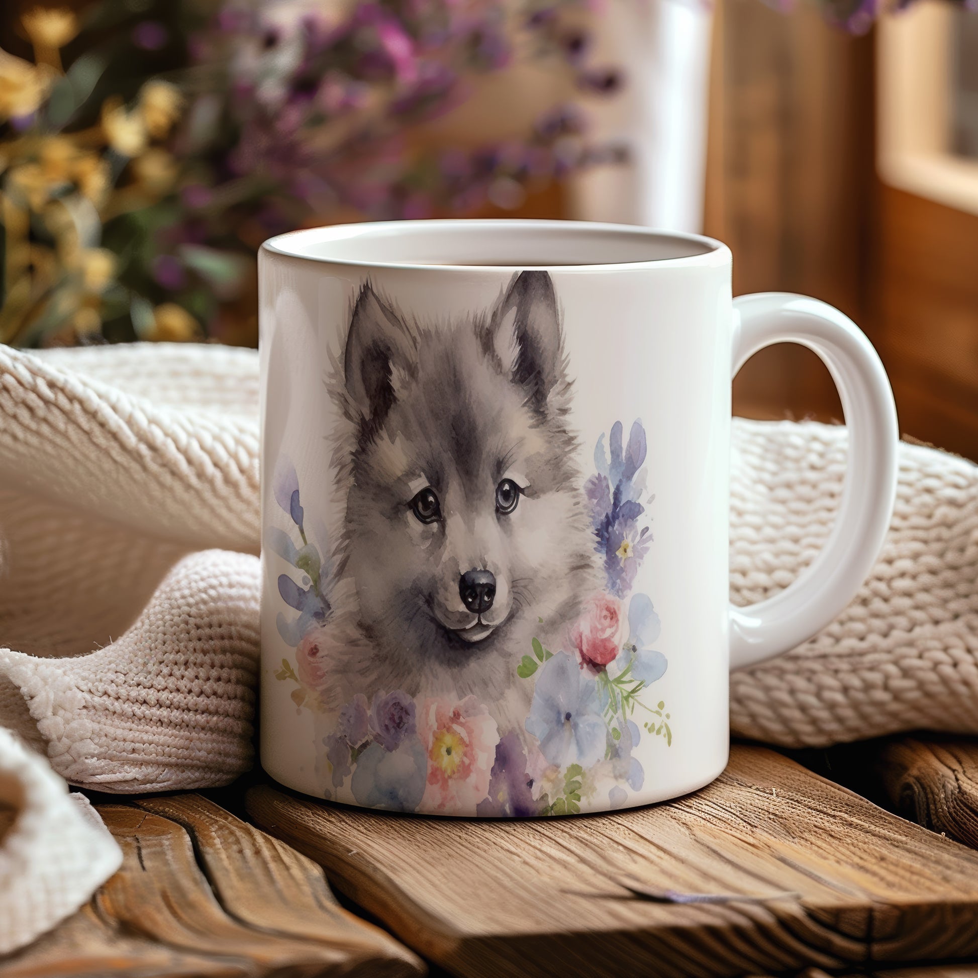 Tento hrnek s roztomilým štěnětem a květinovým designem přináší radost do každého dne. Ideální pro milovníky psů a stylové doplňky do domácnosti.