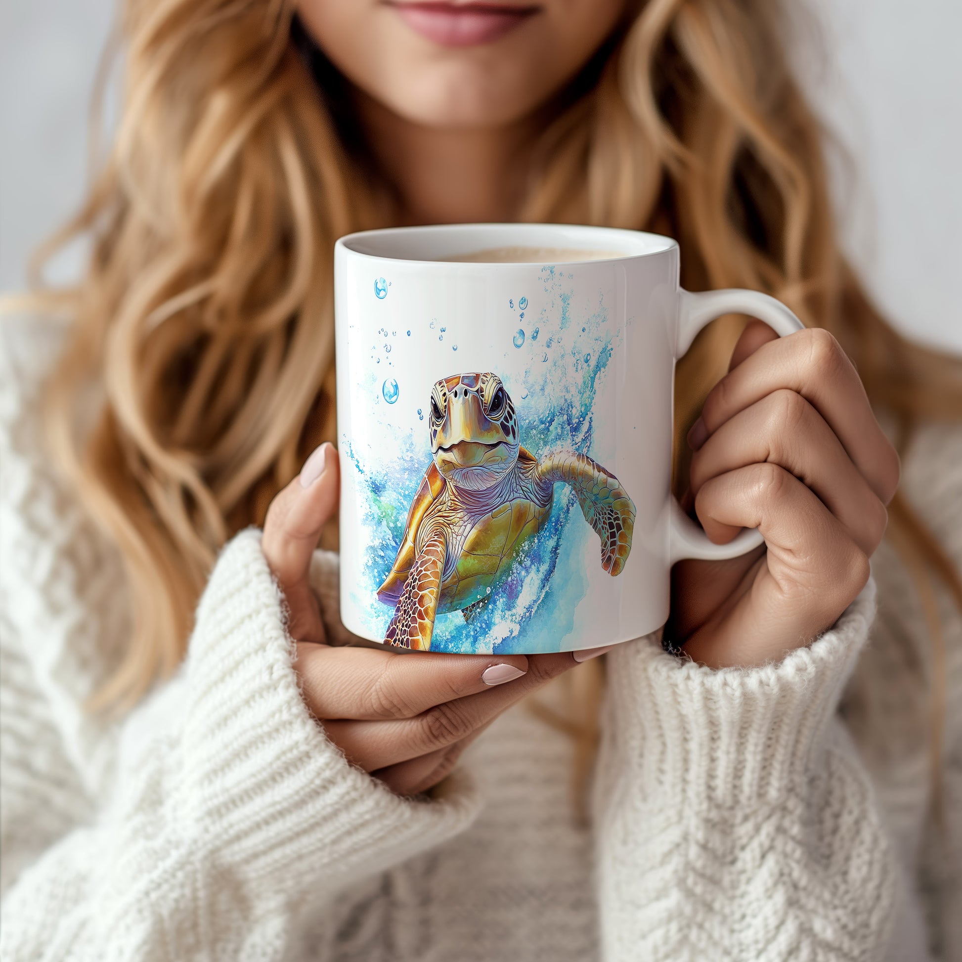 Tento hrnek s výjimečným motivem želvy v modrém oceánu přinese do vaší kuchyně nádech přírody. Vyroben z kvalitního materiálu, je ideální pro každodenní použití nebo jako dárek pro milovníky zvířat.