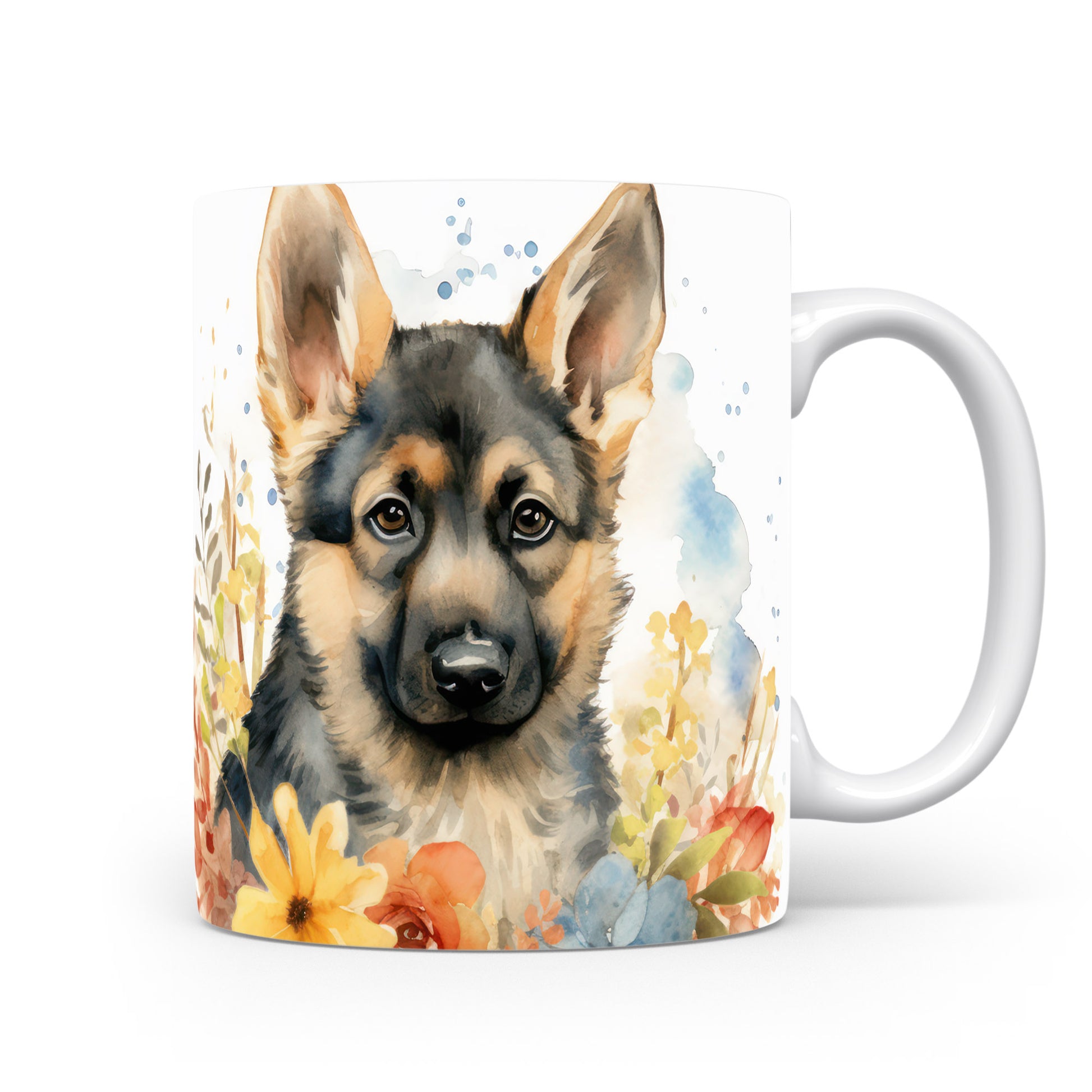 Originální hrnek s portrétem německého ovčáka a květinami