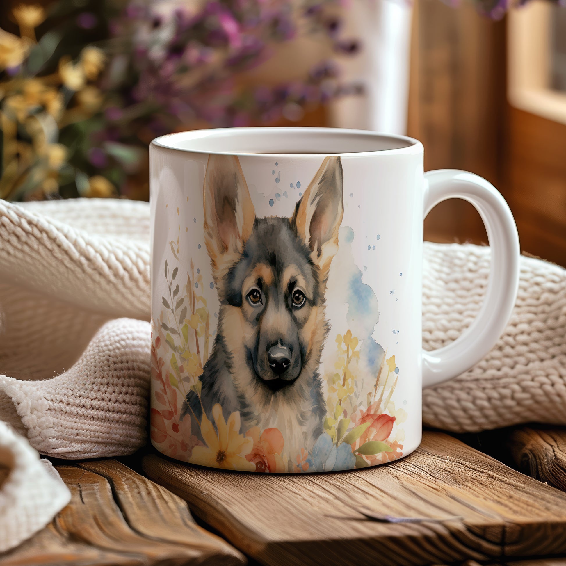 Tento hrnek s motivem německého ovčáka a květin je ideální pro milovníky psů. Skvělý dárek pro každého, kdo si rád vychutnává svůj oblíbený nápoj s originálním designem.
