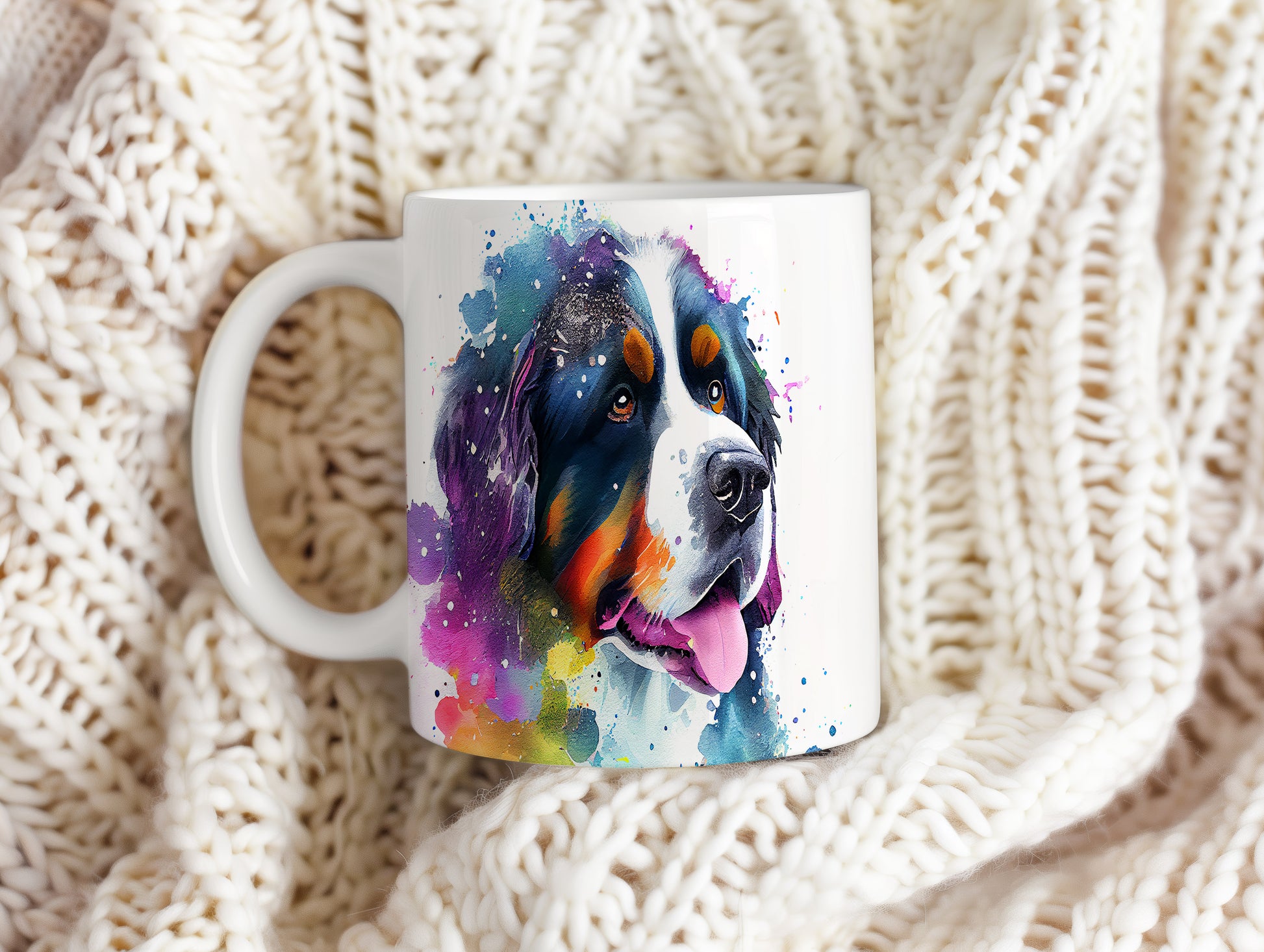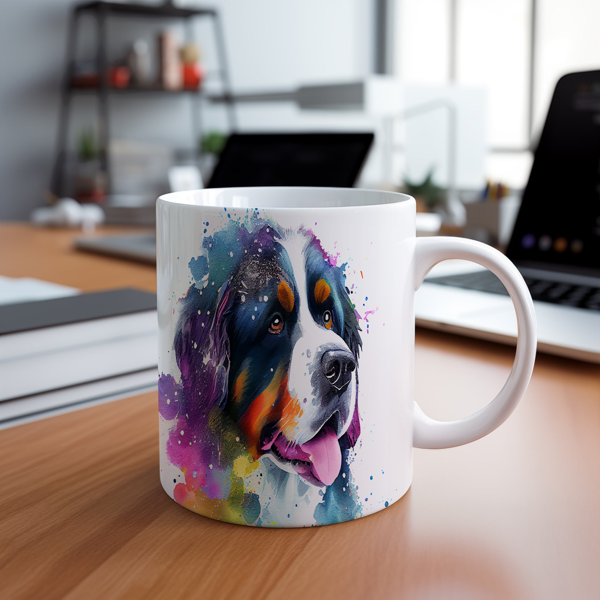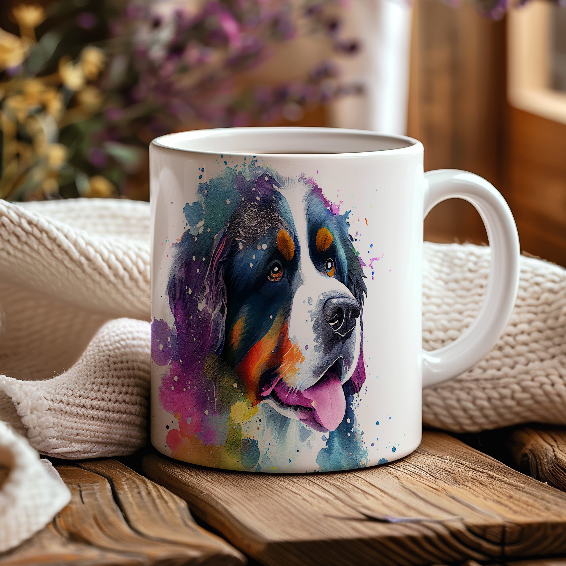 Stylový hrnek s ilustrací Bernského salašnického psa v živých barvách. Ideální pro milovníky psů, kteří chtějí oživit své každodenní pití.