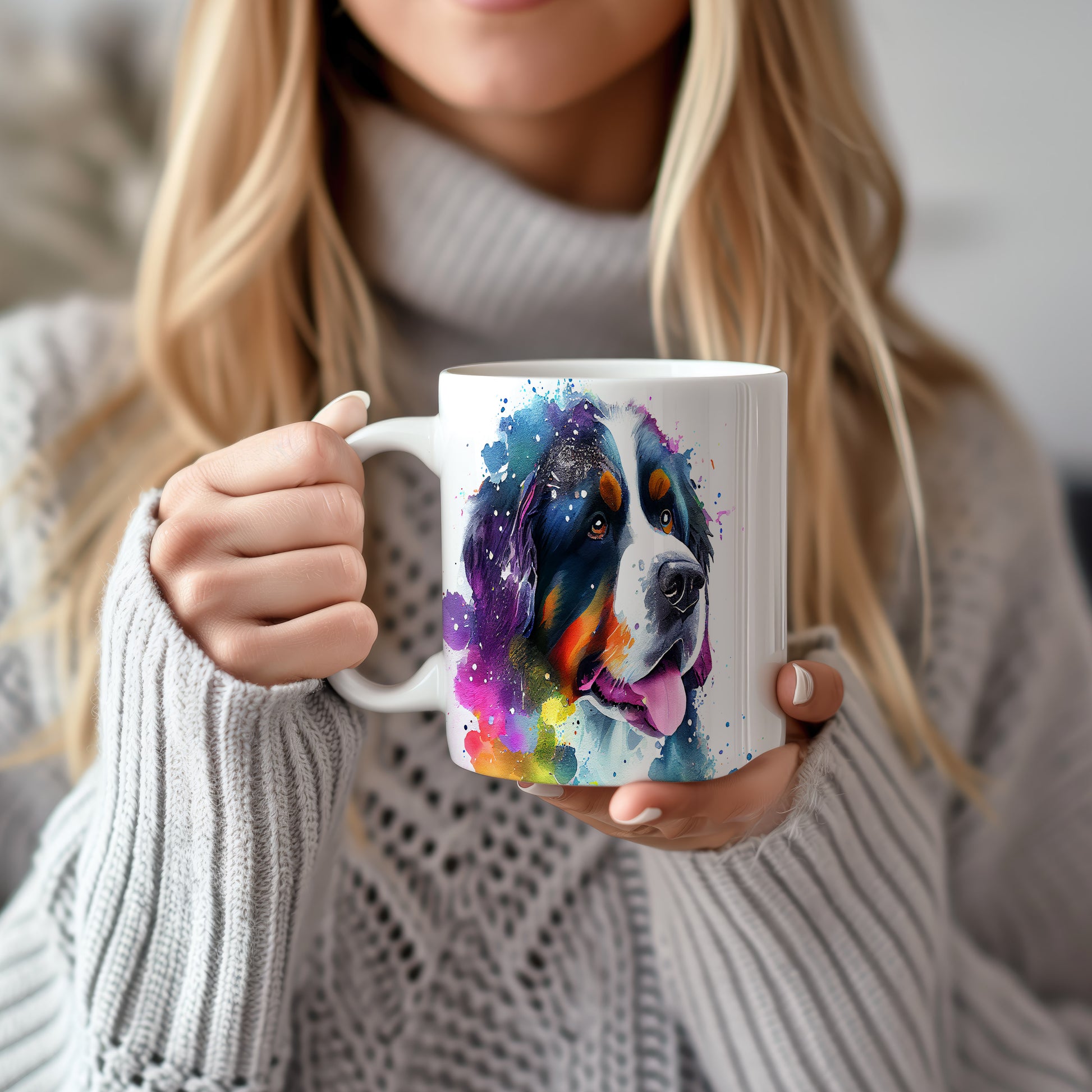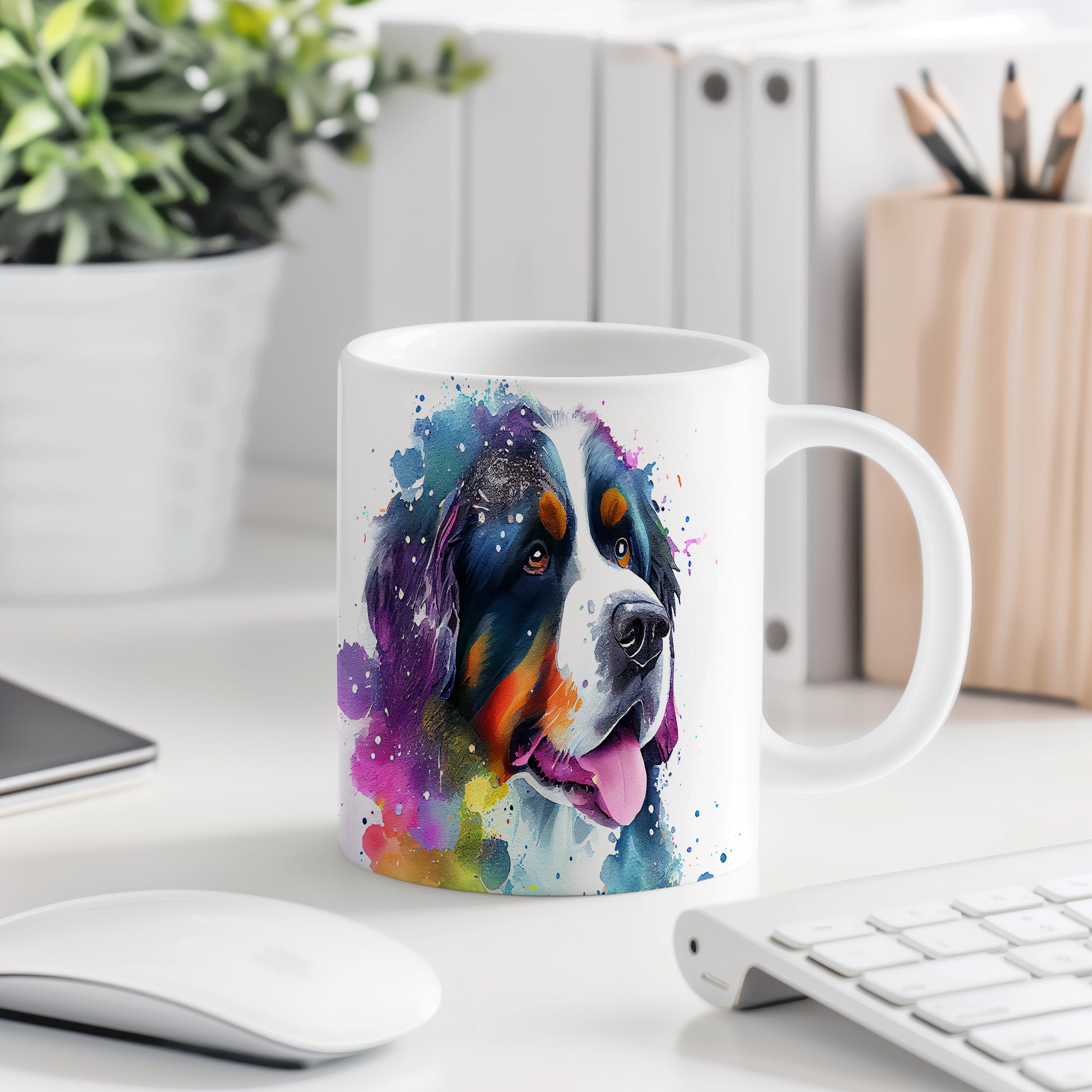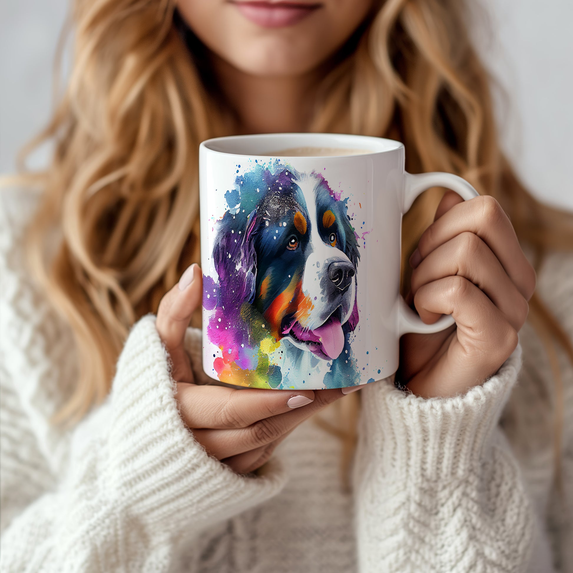 Stylový hrnek s ilustrací Bernského salašnického psa v živých barvách. Ideální pro milovníky psů, kteří chtějí oživit své každodenní pití.