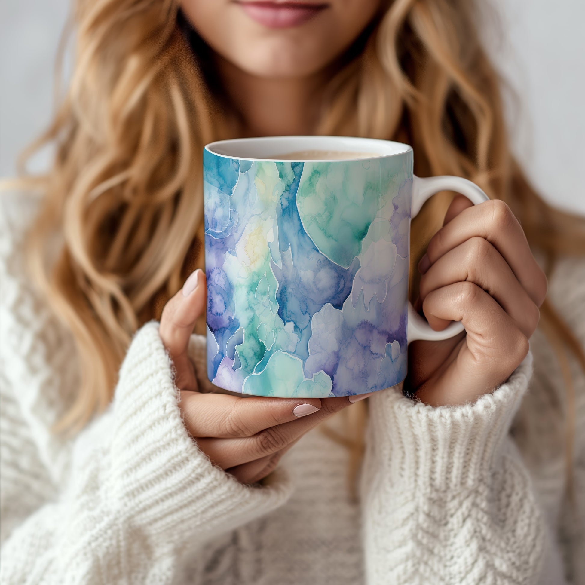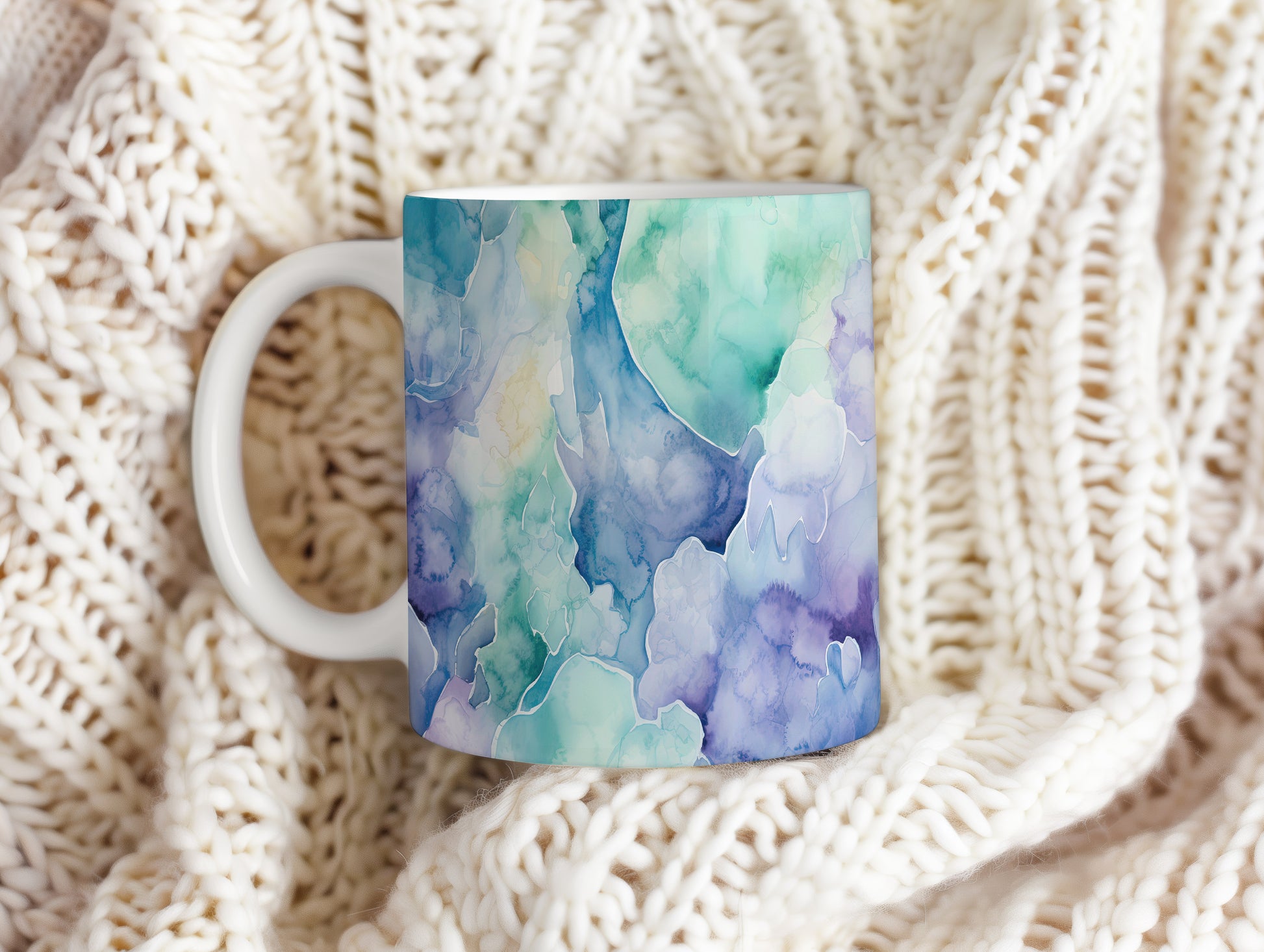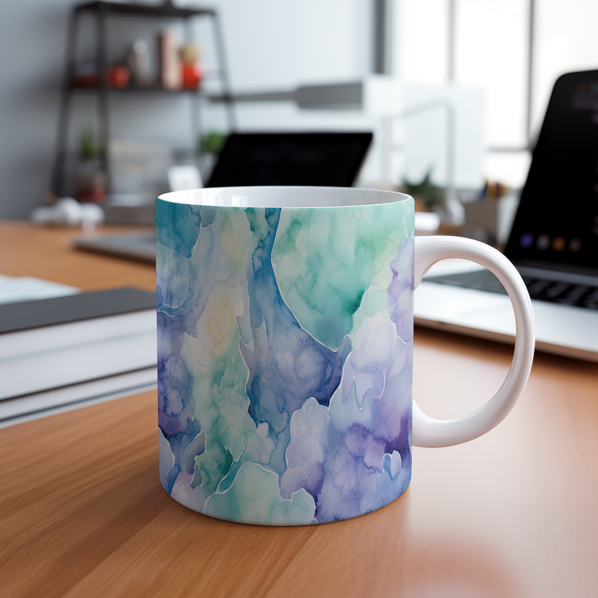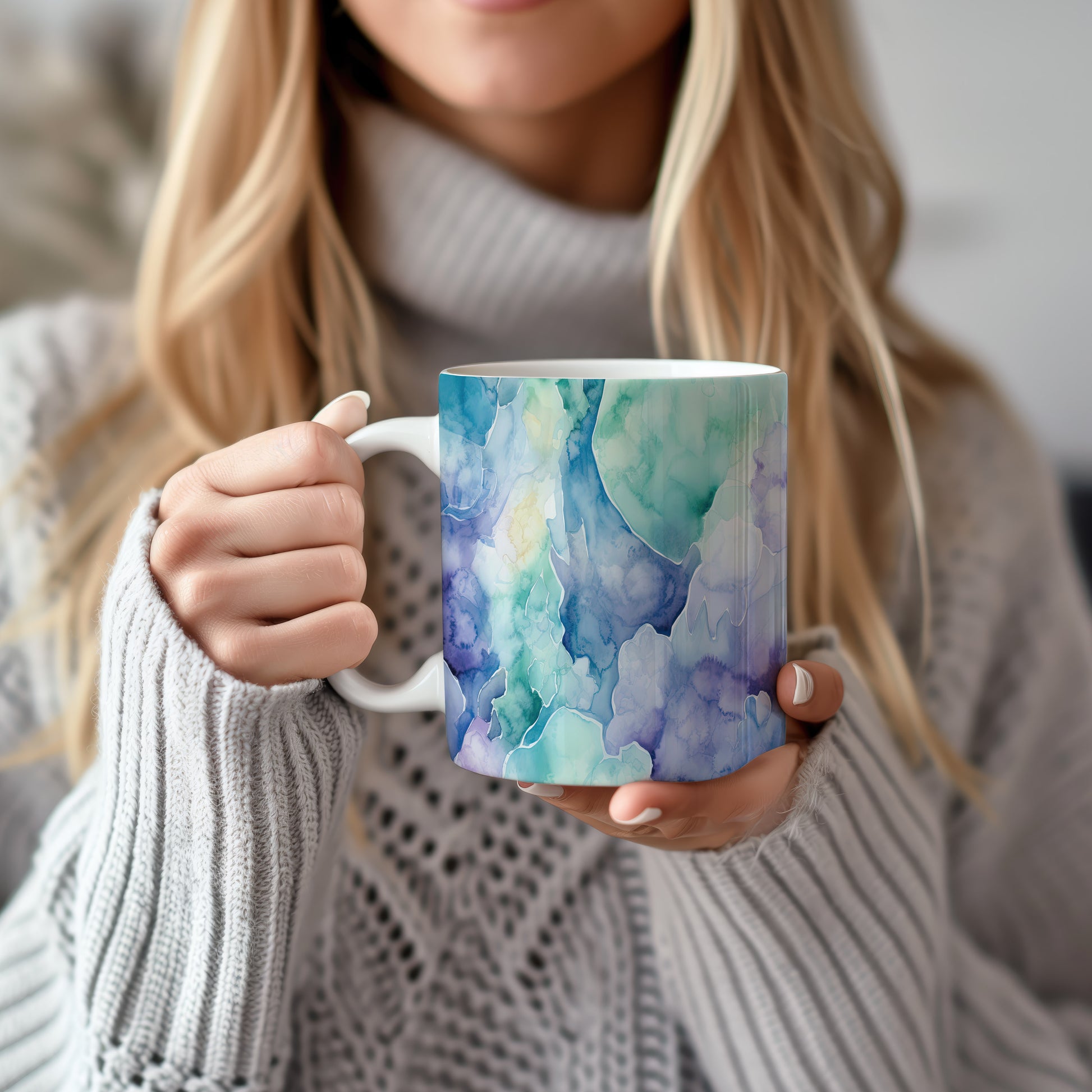 Elegantní akvarelový hrnek s modro-zeleným vzorem