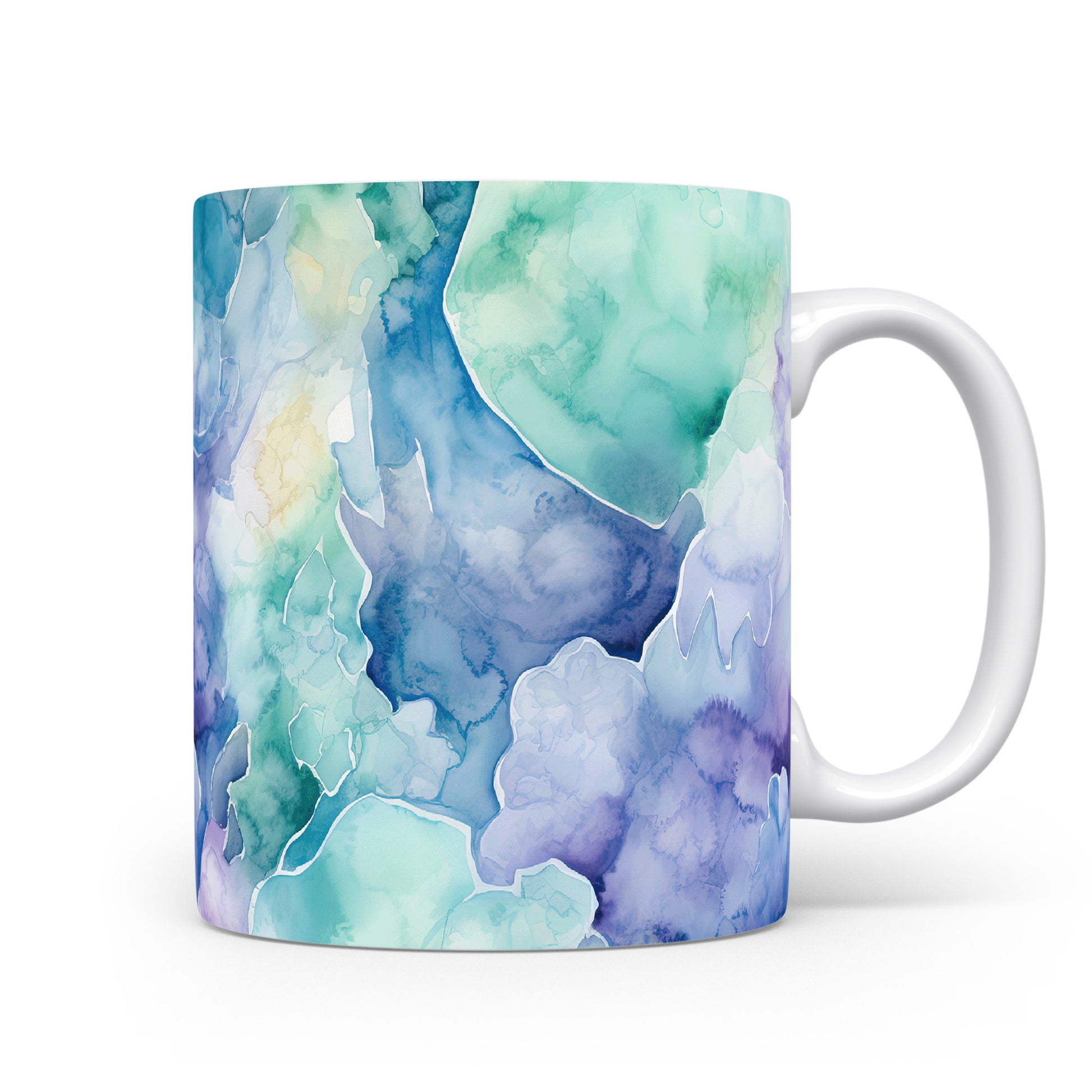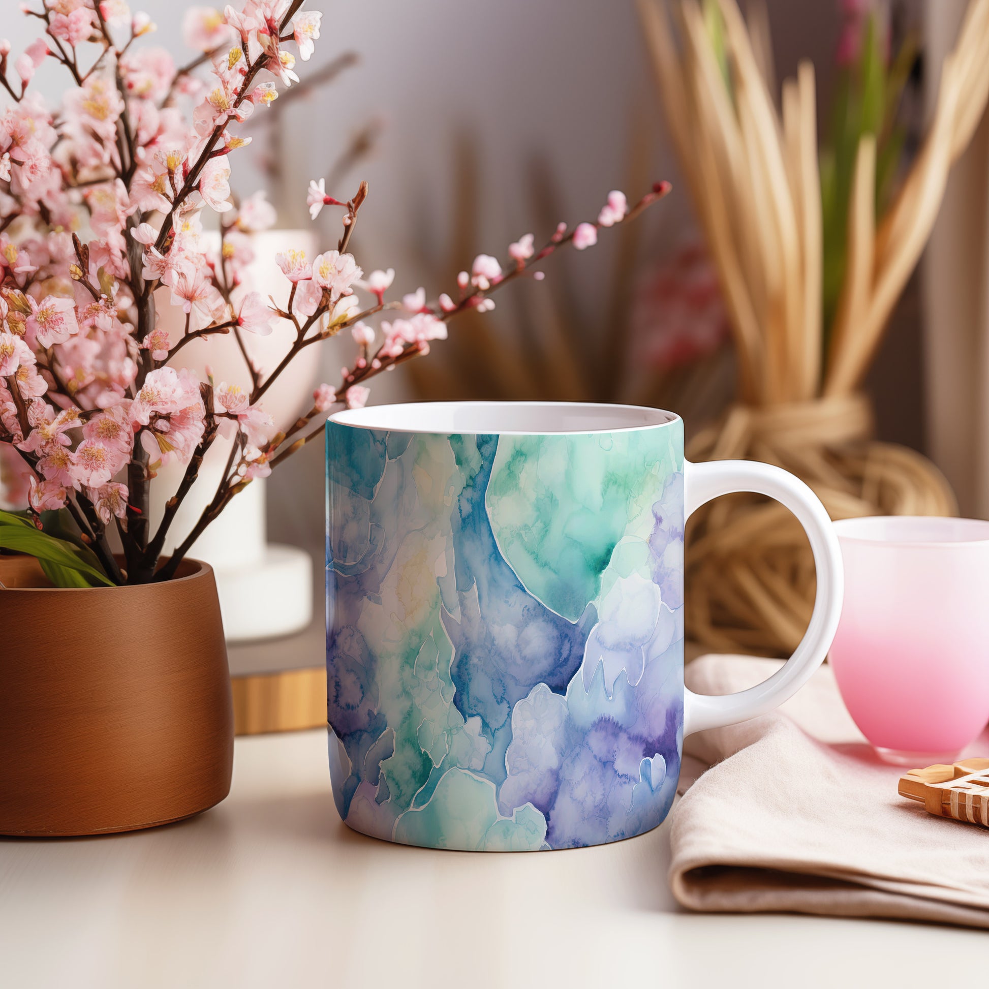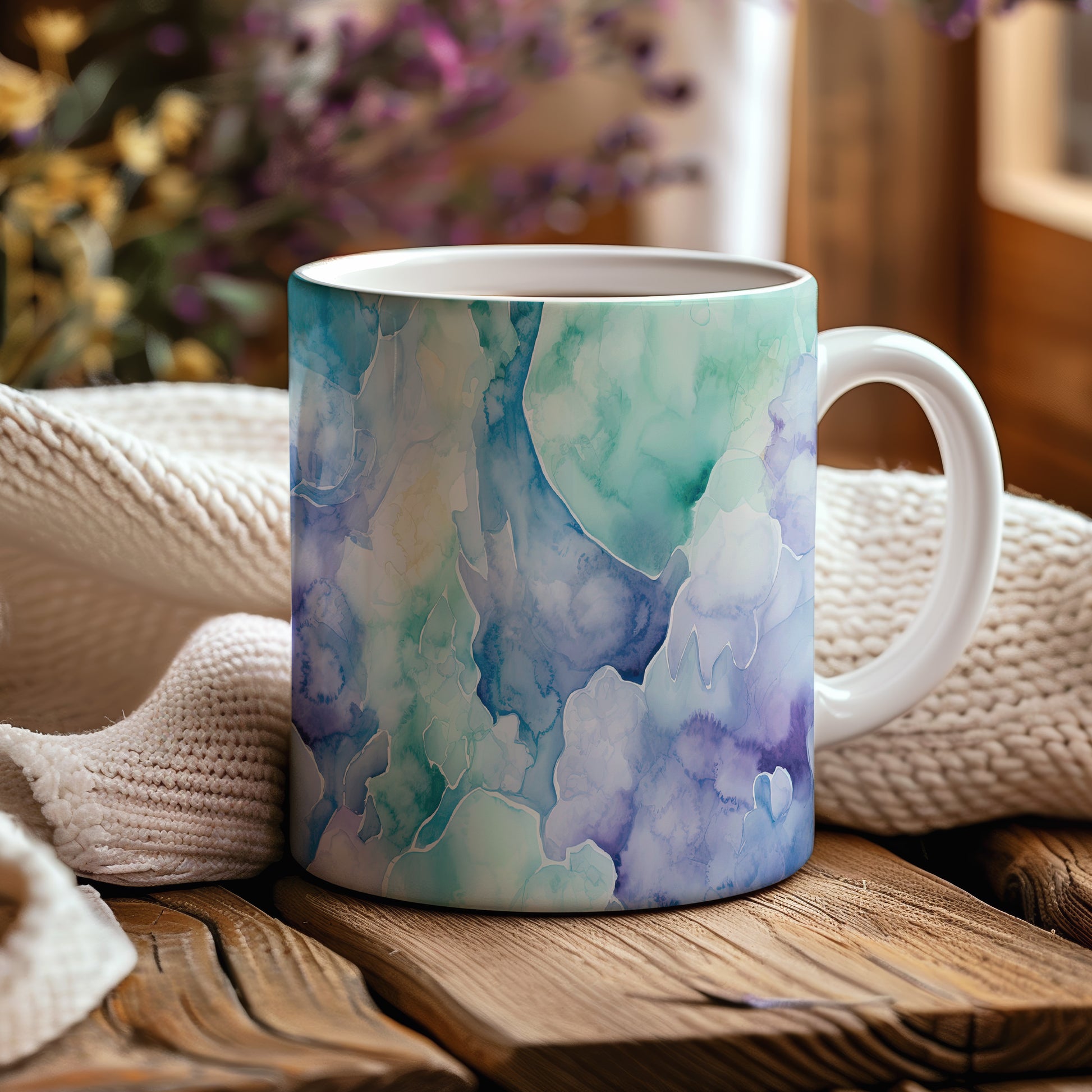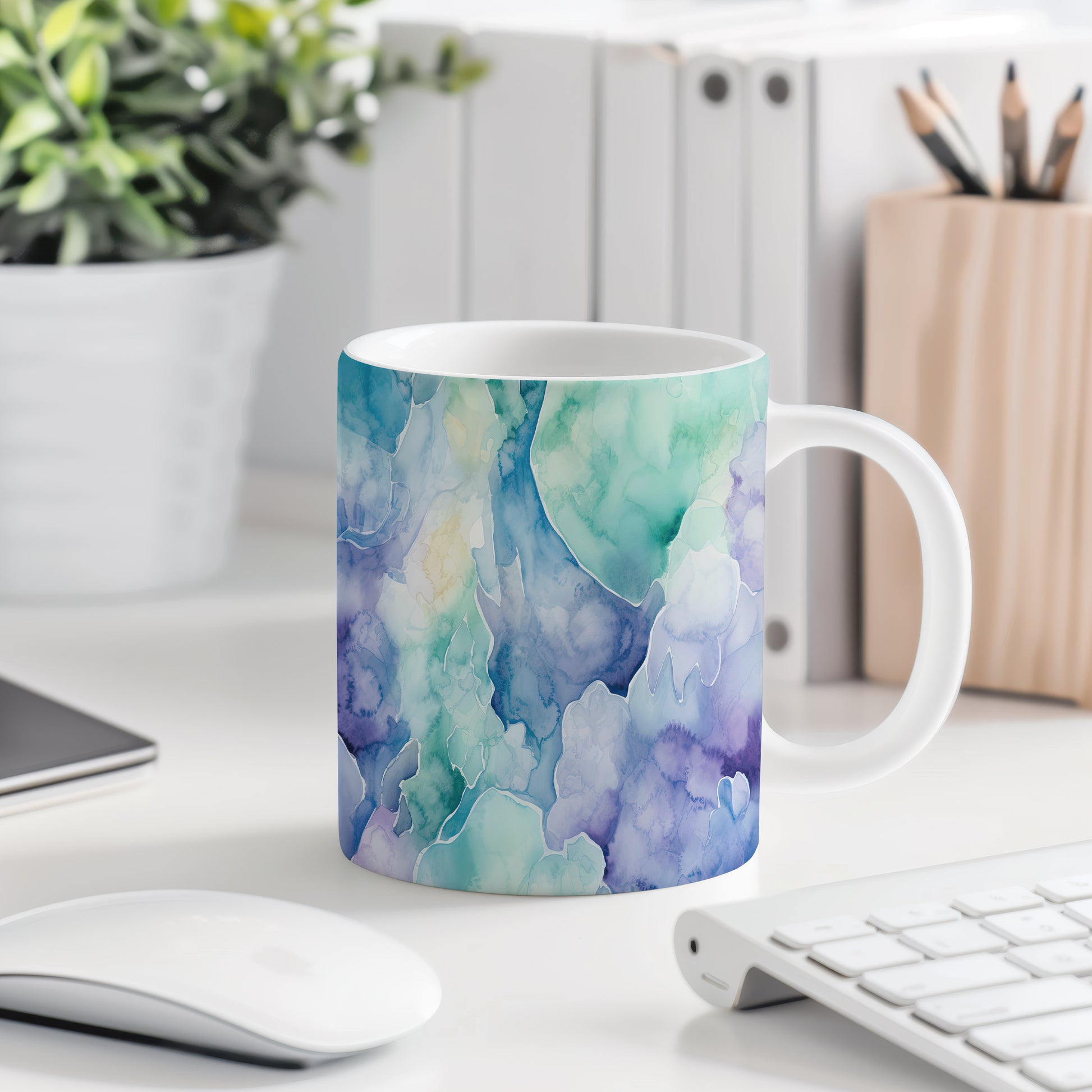 Elegantní akvarelový hrnek s modro-zeleným vzorem