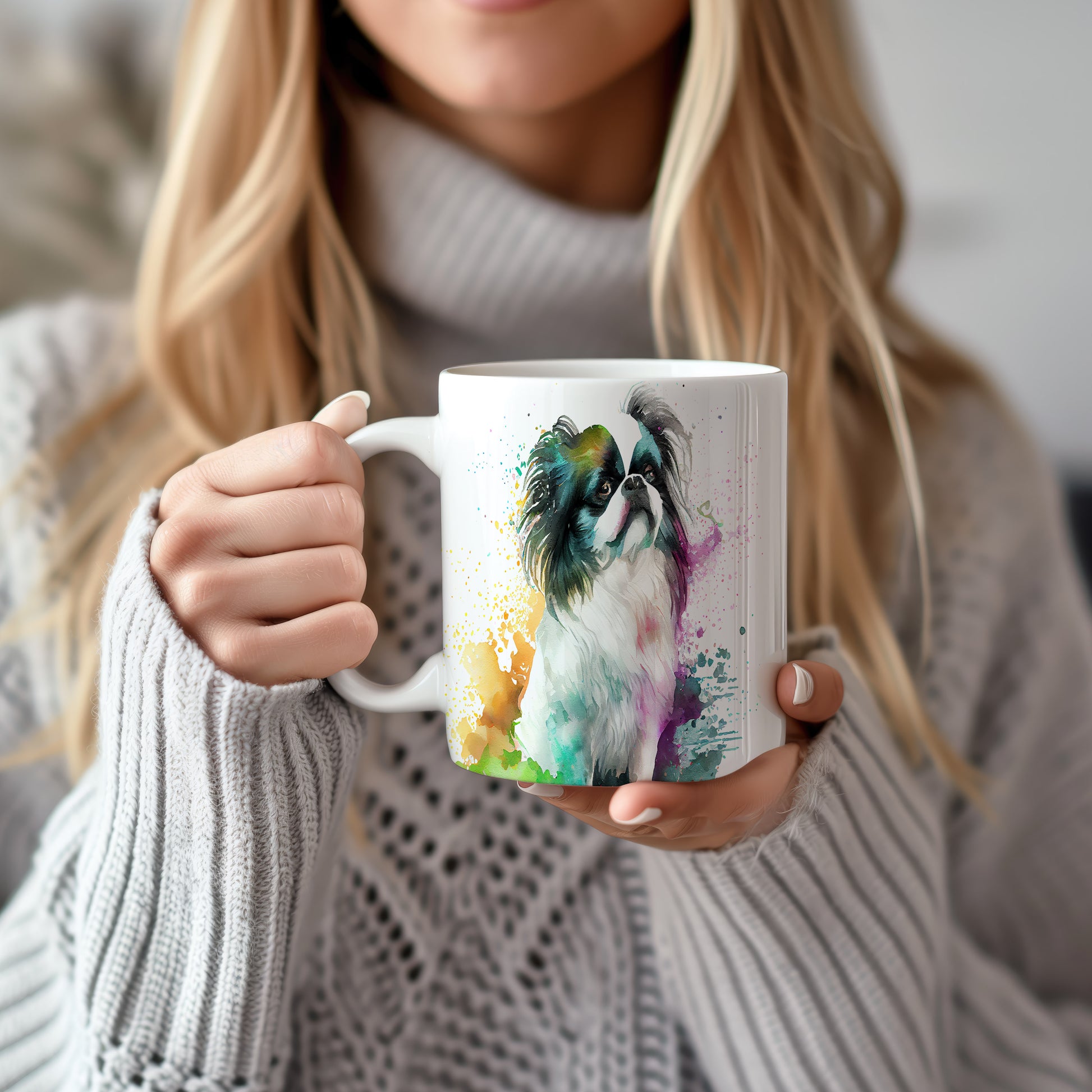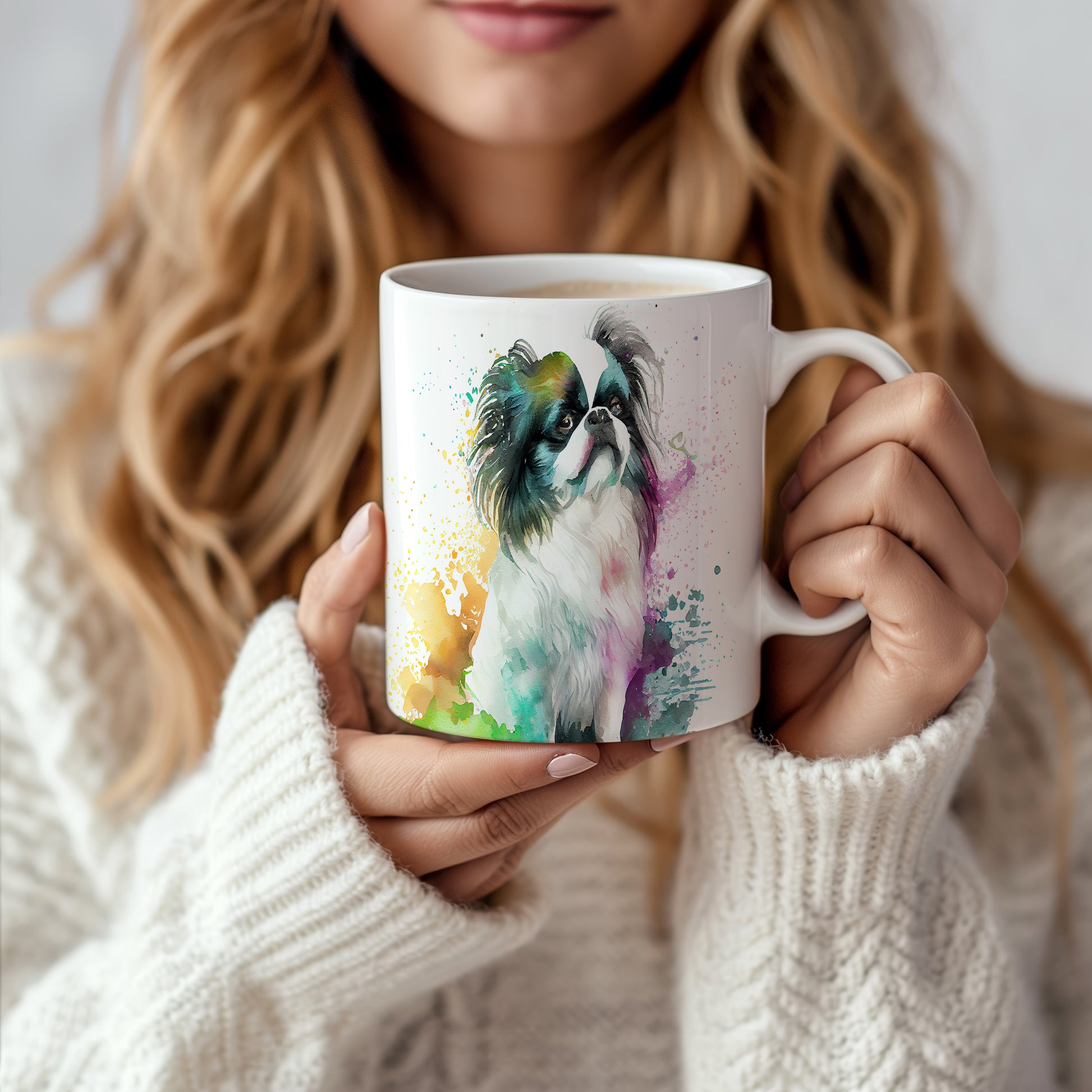 Hrnek s malým japonským špicem v akvarelovém stylu