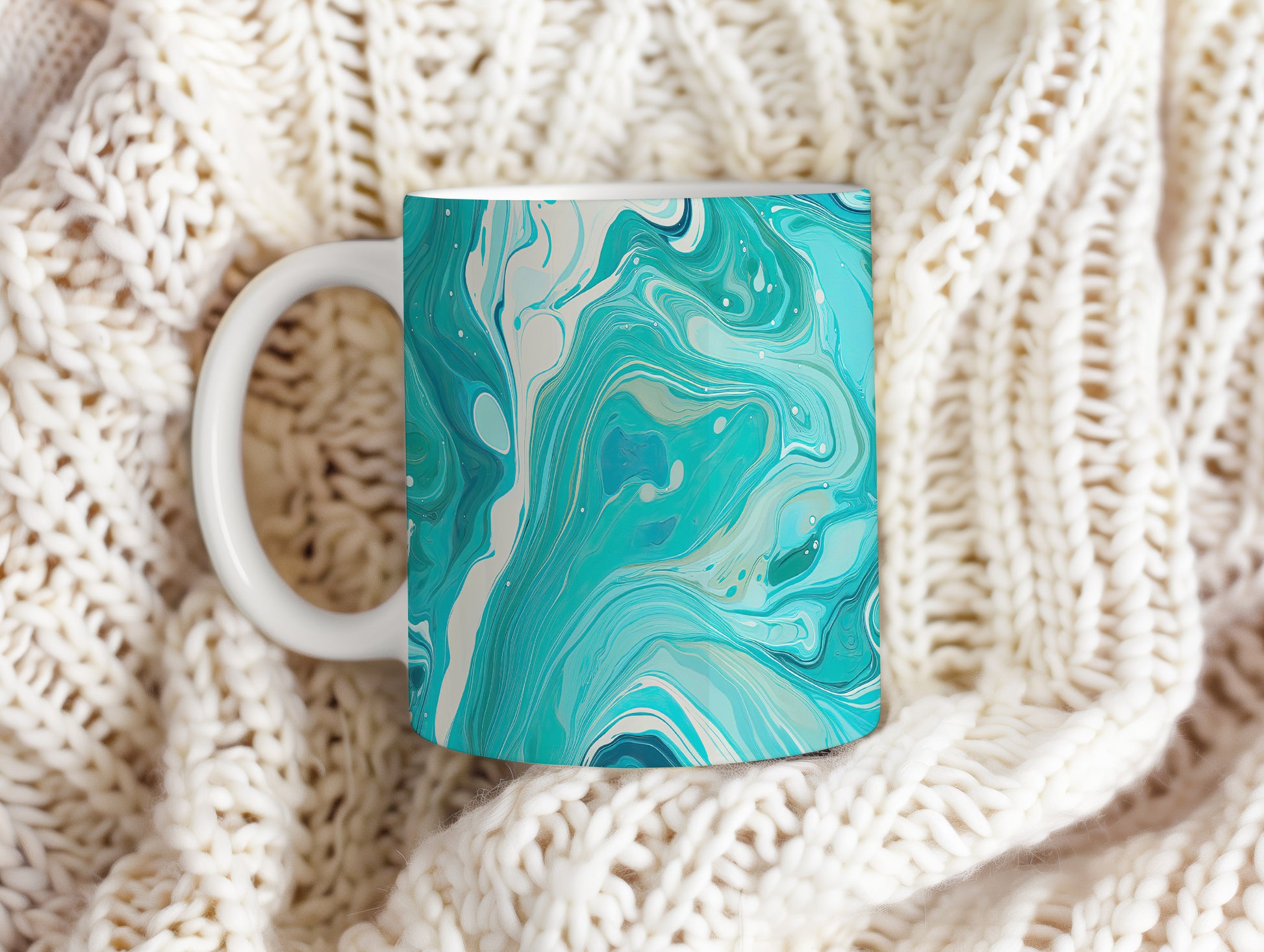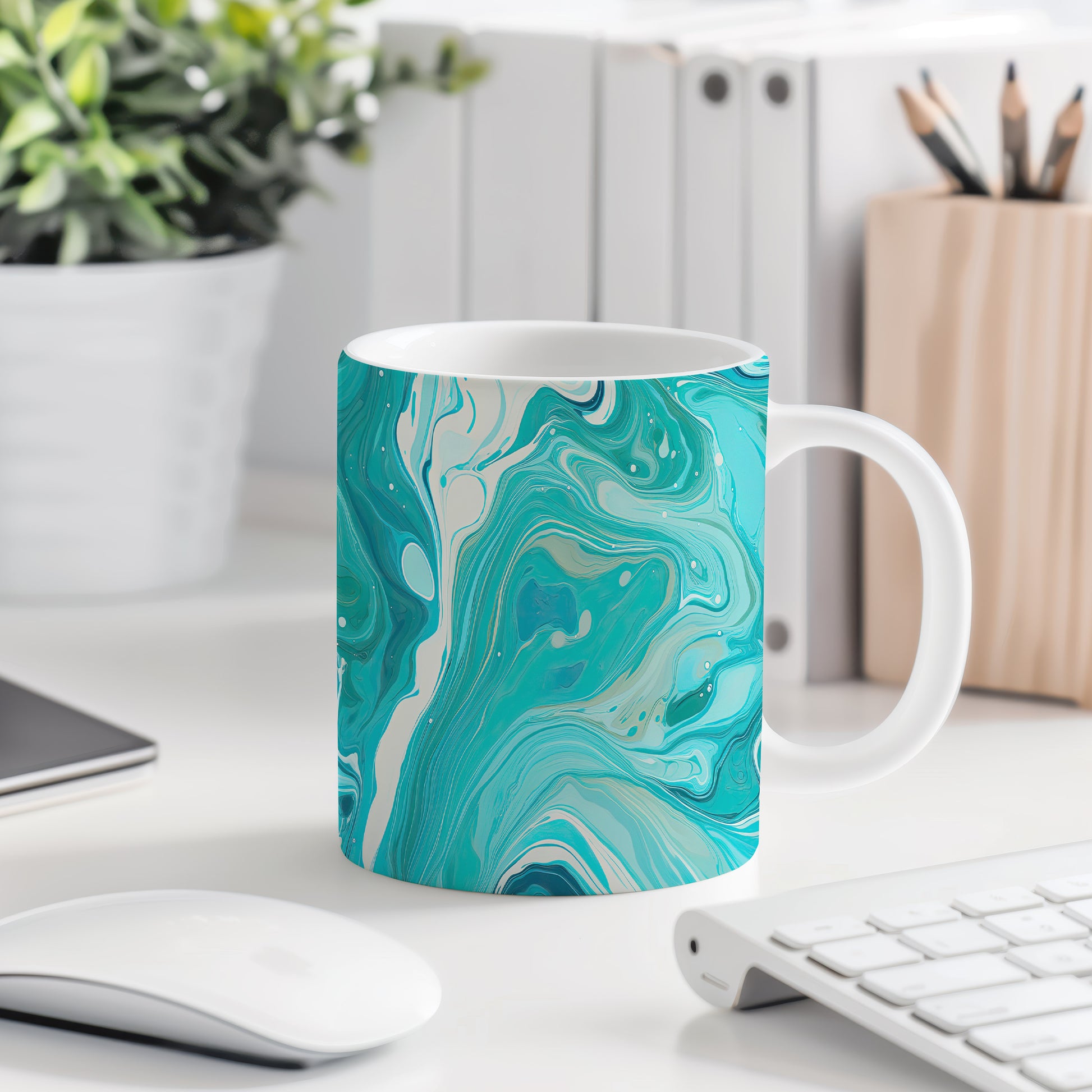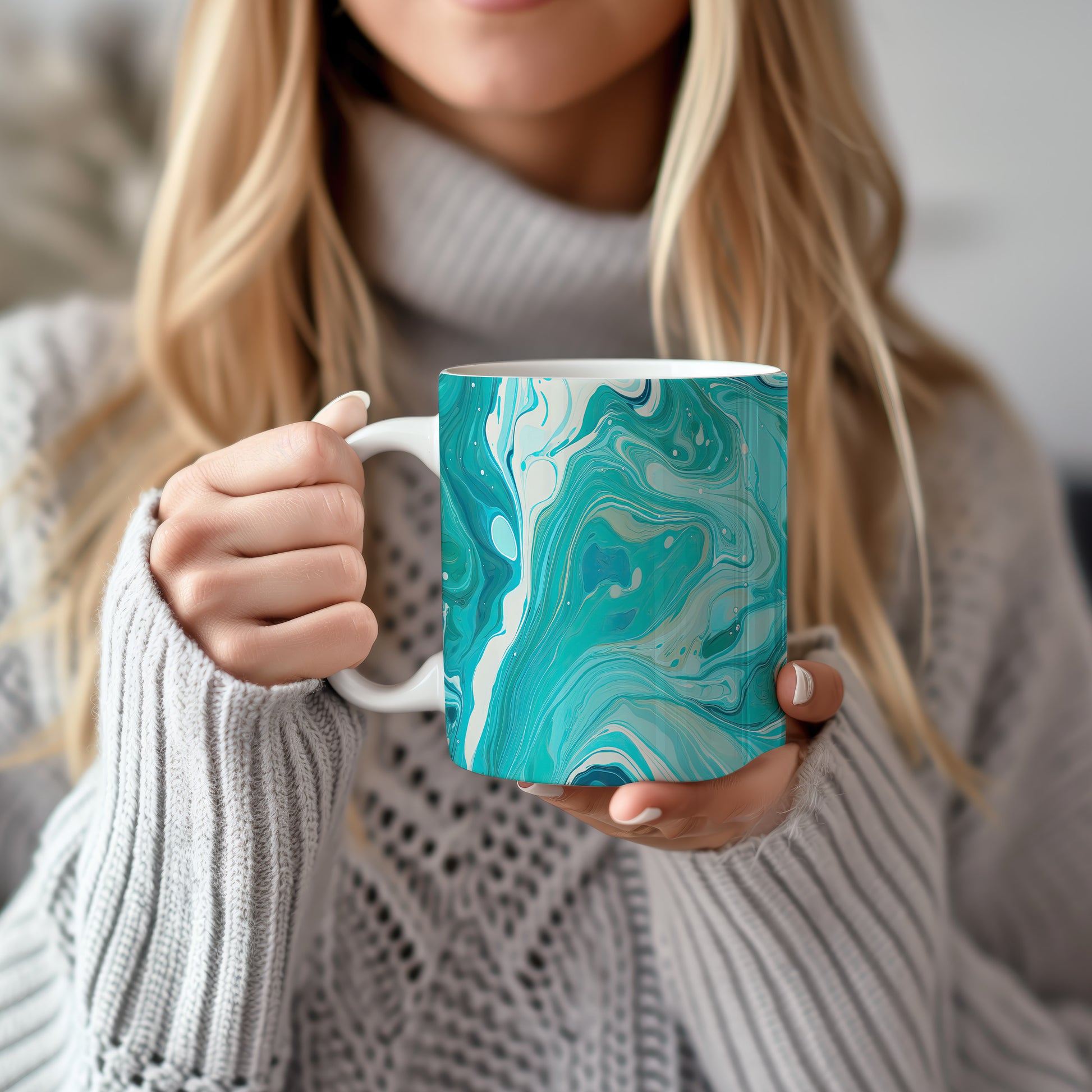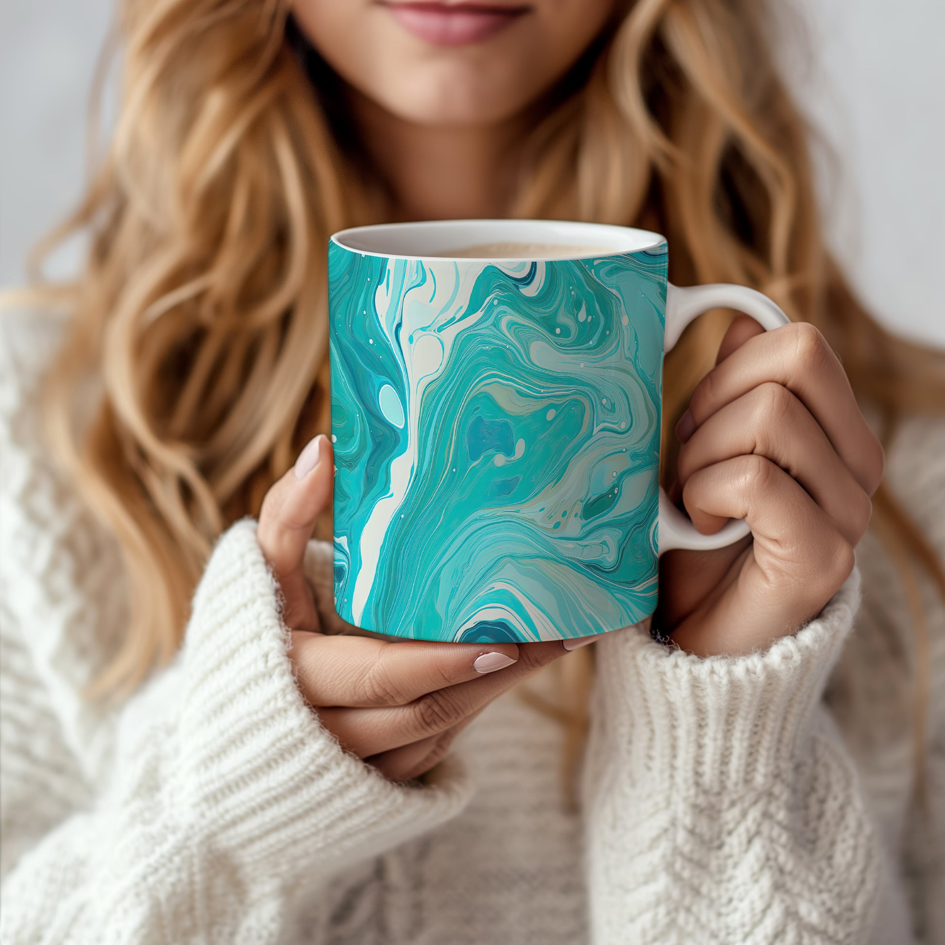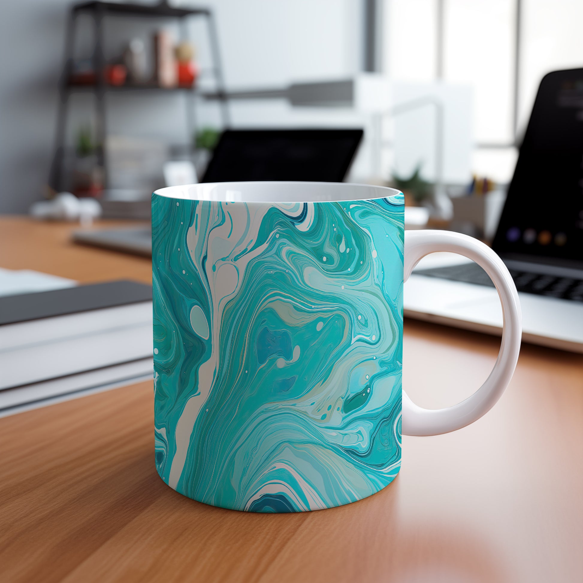 Unikátní hrnek s abstraktním mozaikovým vzorem v modrých tónech
